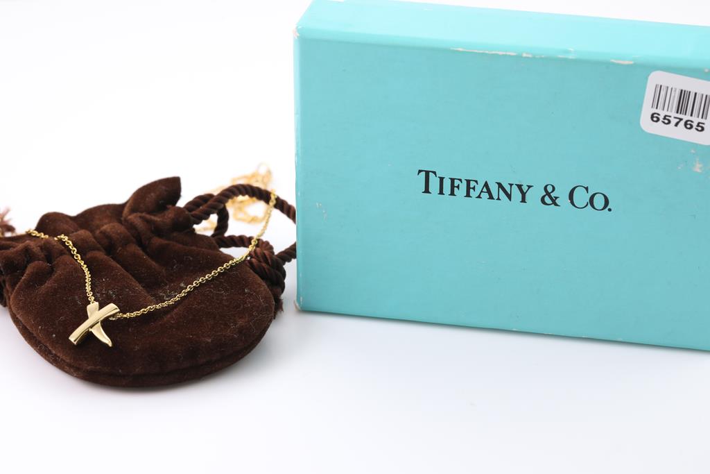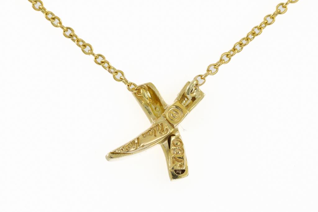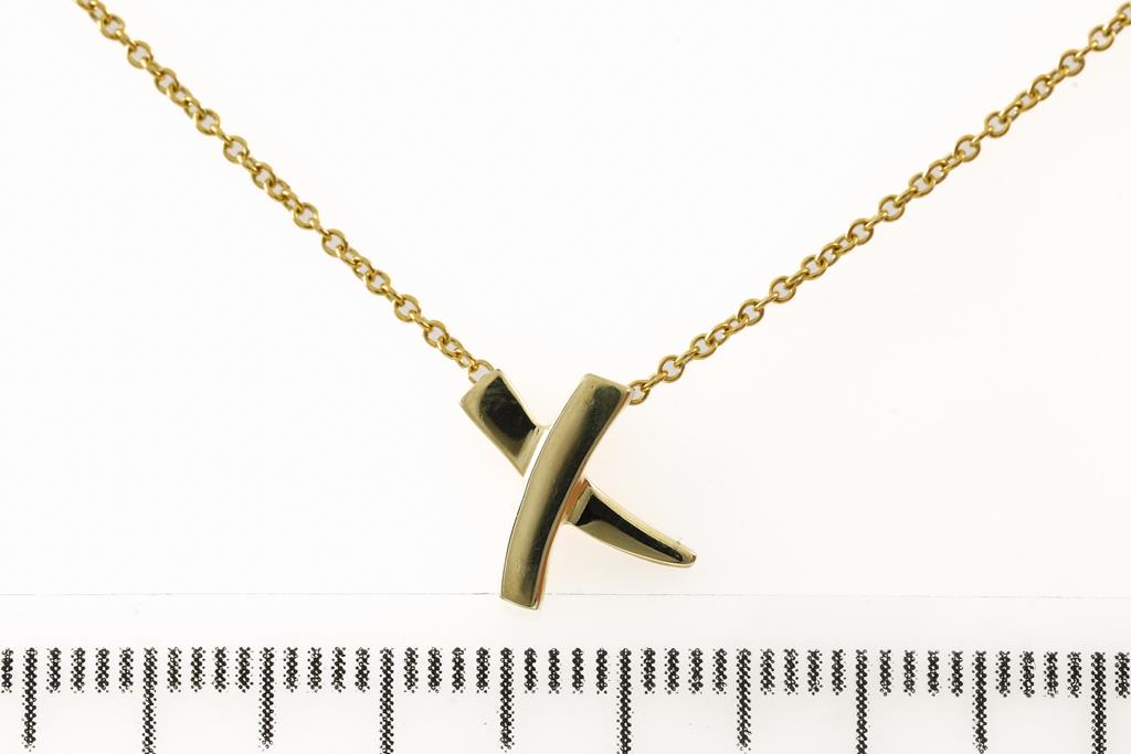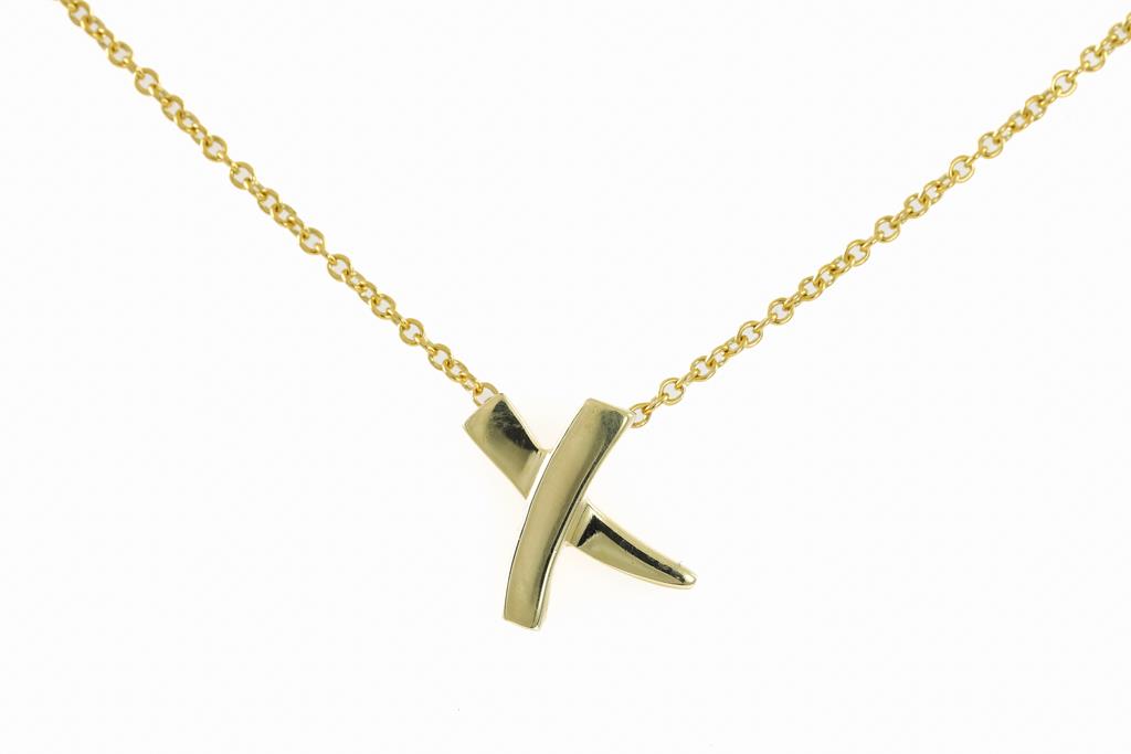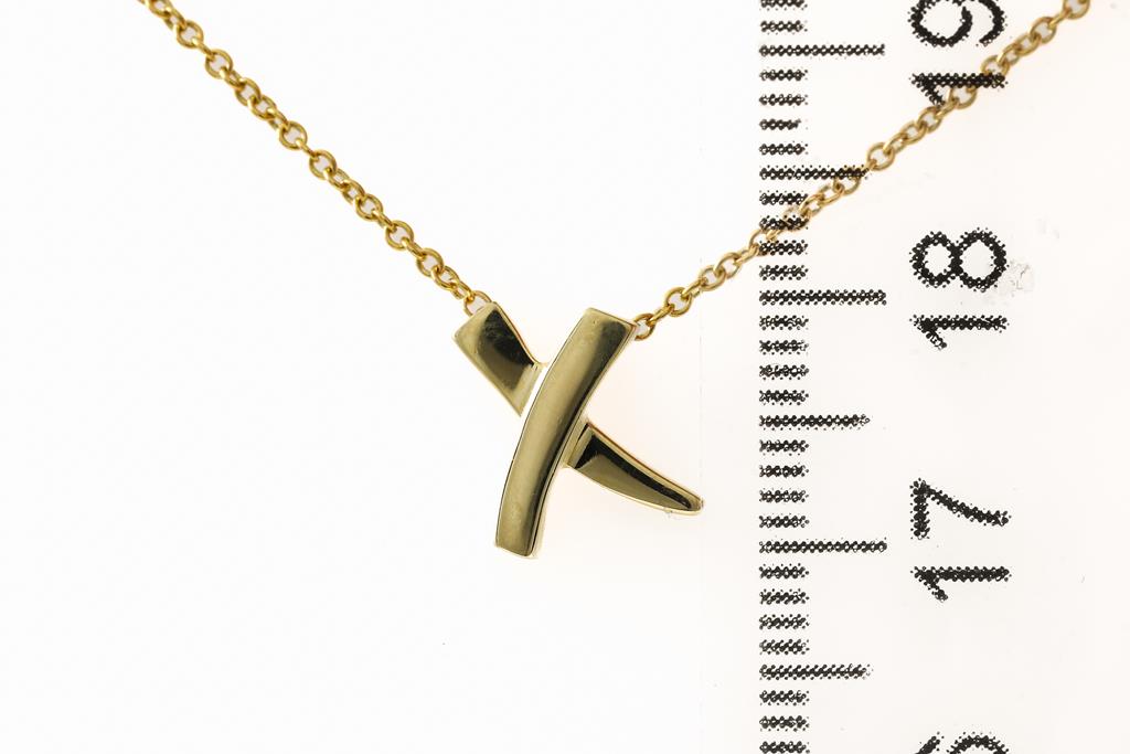 Tiffany & Co Paloma Picasso Grafiti X pendant. 18ct yellow gold with attached 41cm chain. Weight: 2.4g. With Tiffany & Co box and pouch. (Pre-owned)