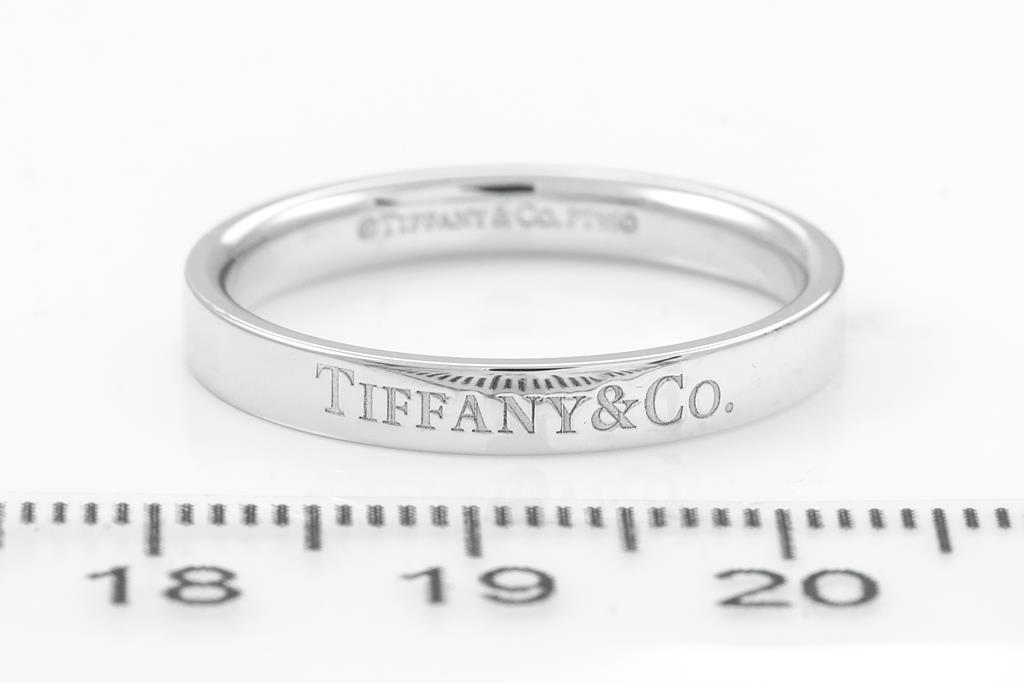 Tiffany & Co Platinum band. Width 3mm. Ring size: R - ring resizing is not recommended. Weight: 5.7g (Pre-owned)