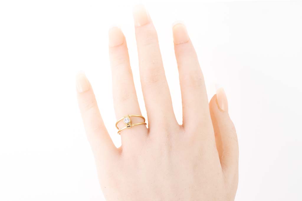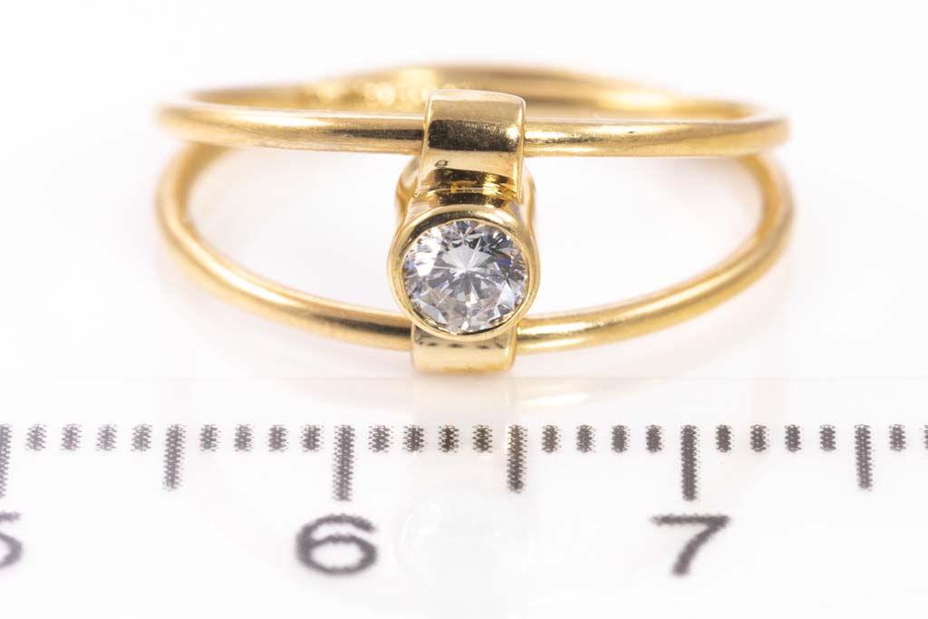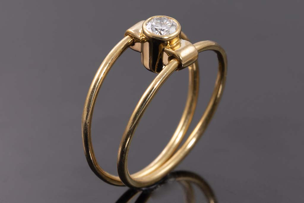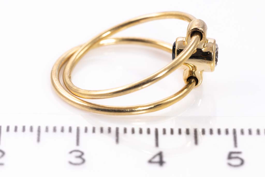 Tiffany & Co. Elsa Peretti Reversible Sapphire and Diamond ring with round blue Sapphire of approximately 0.22ct and round Diamond of approximately 0.20ct. 18ct yellow gold. Ring size L1/2 - ring resizing is not recommended. Weight: 3.0g. (Pre-owned)