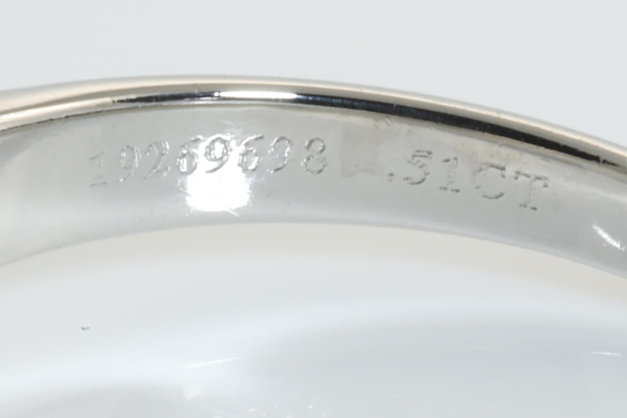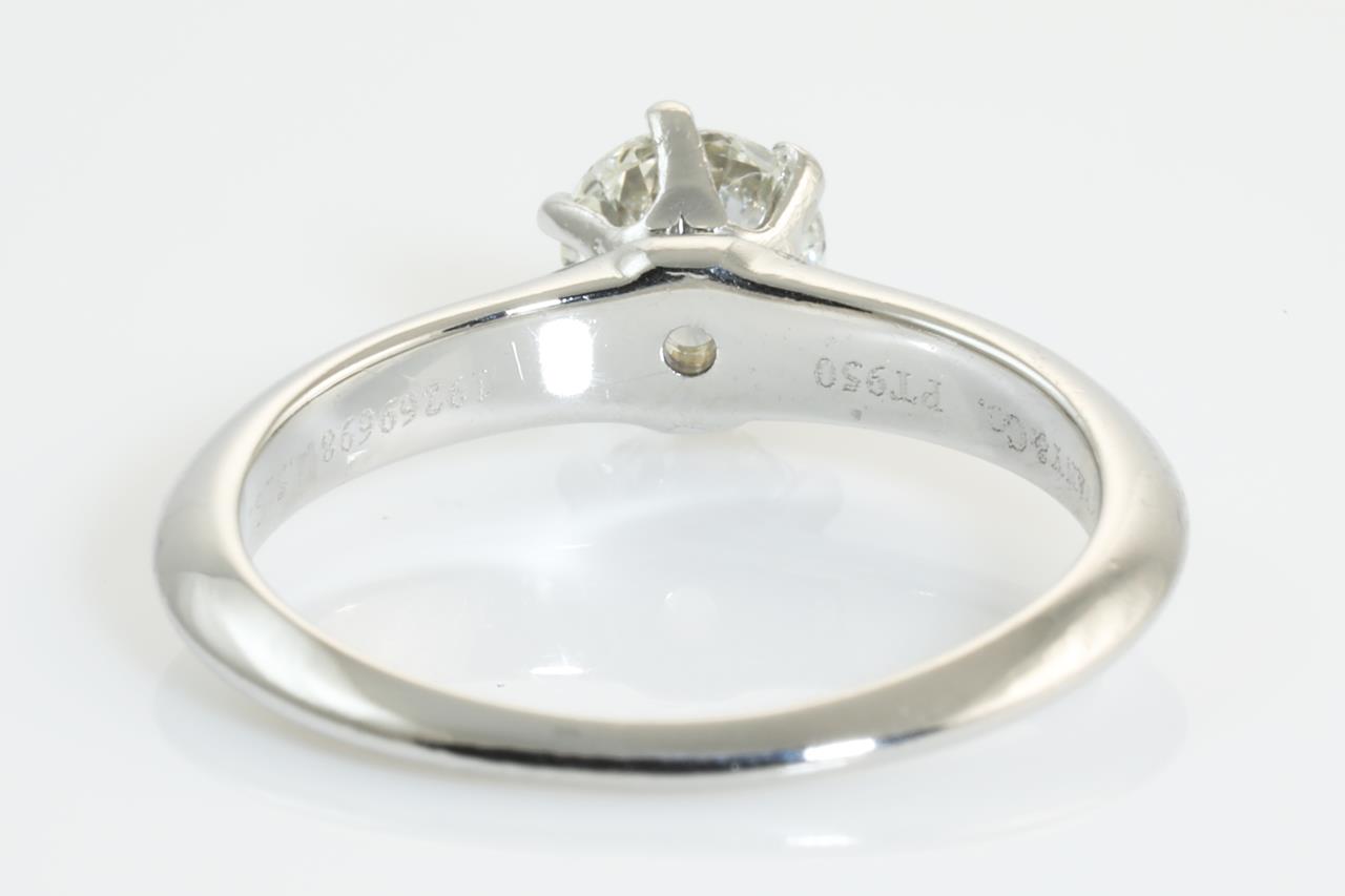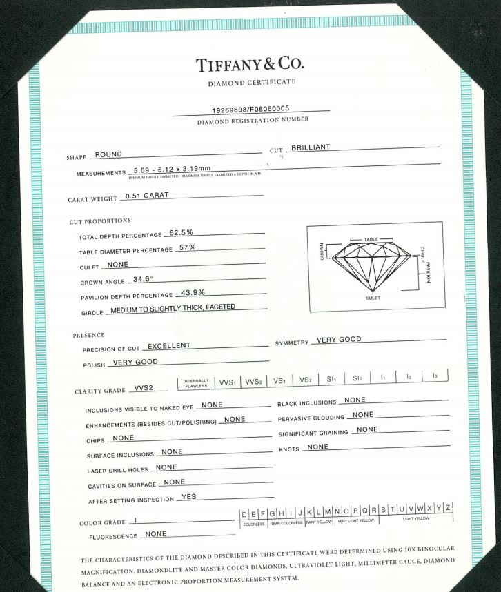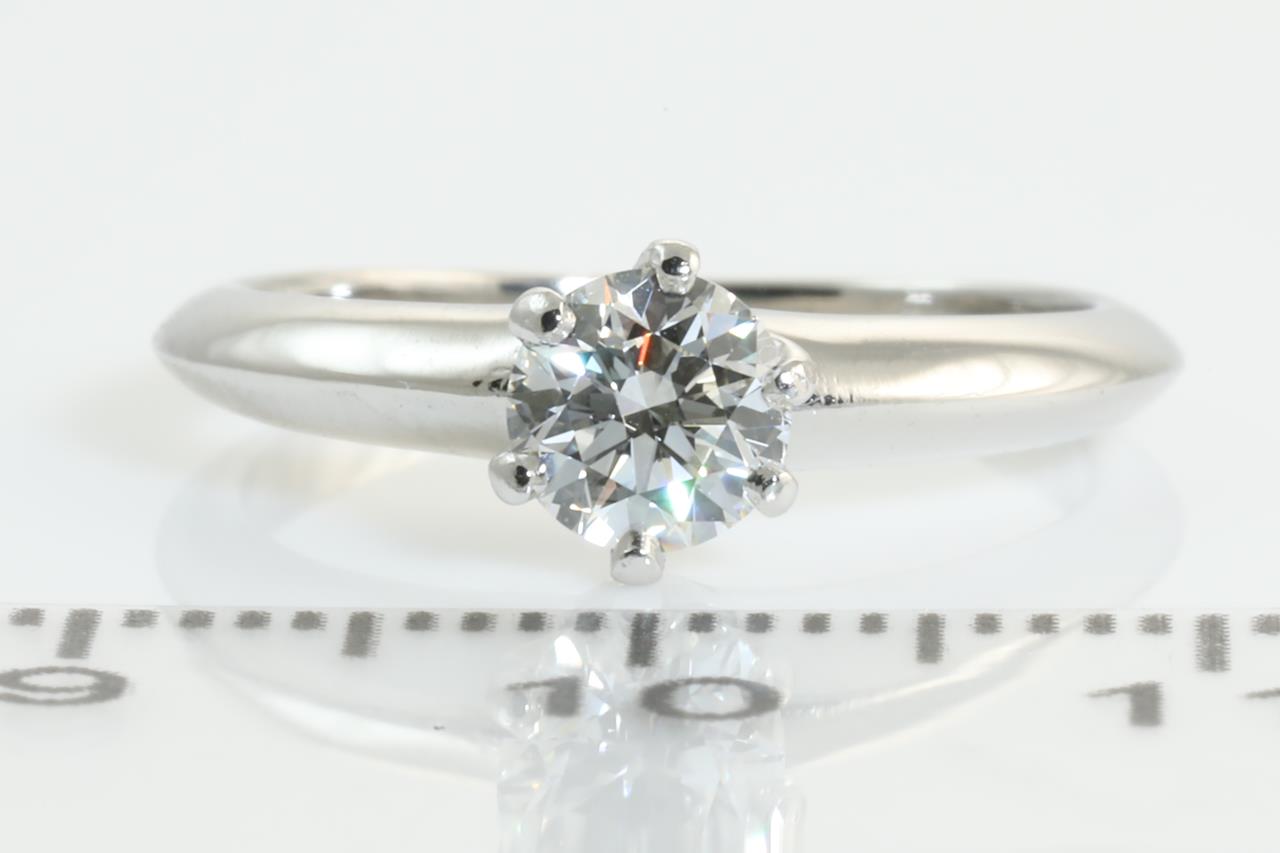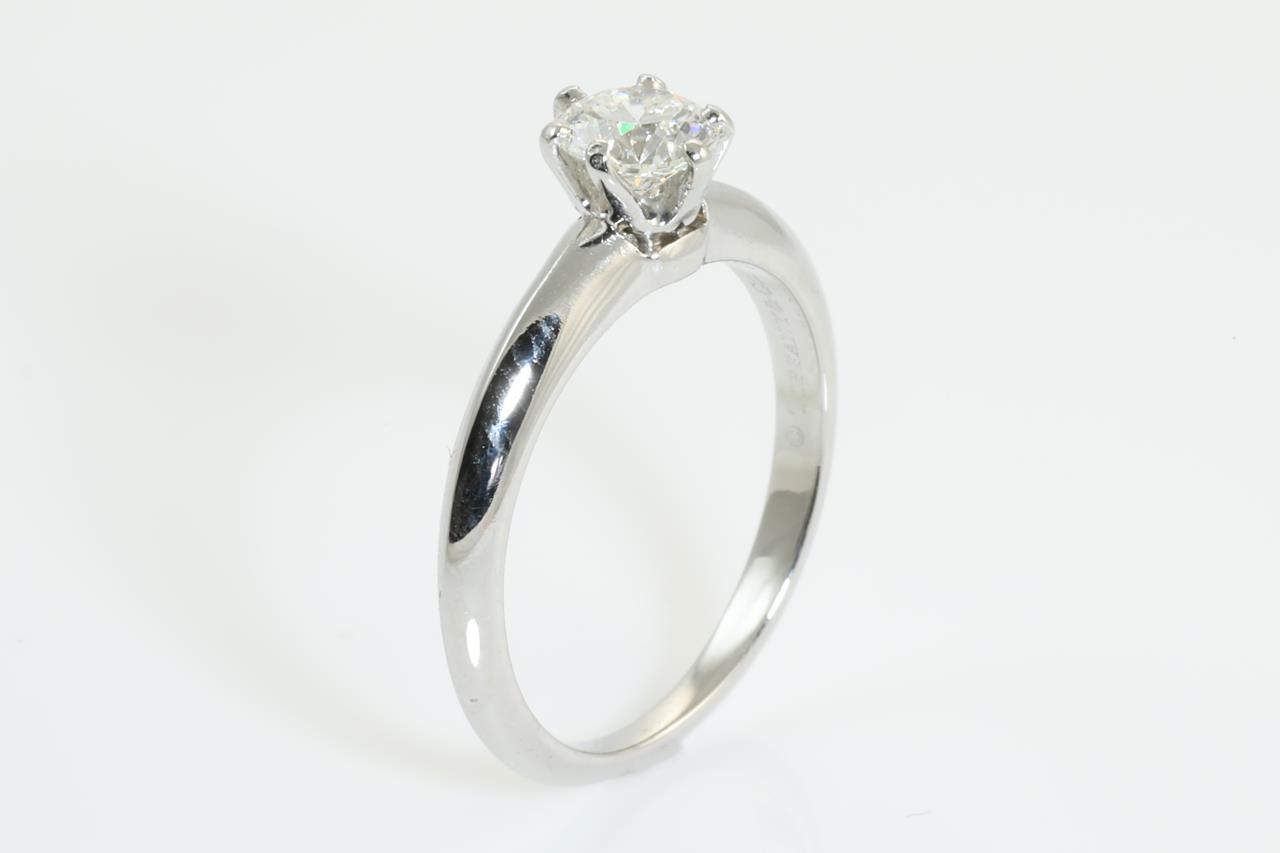 Tiffany & Co Diamond solitaire ring with a round brilliant cut Diamond of 0.51ct (With Tiffany & Co Diamond certificate graded as I VVS2 #19269698/F08060005). Platinum. Ring size J. Weight: 3.9g. (Pre-owned)