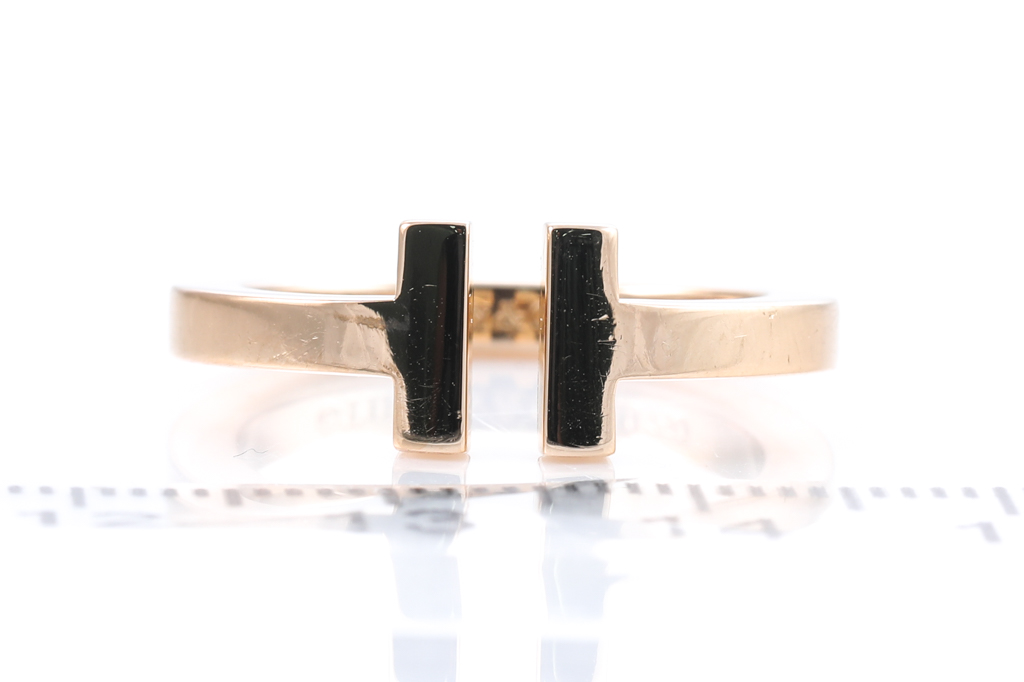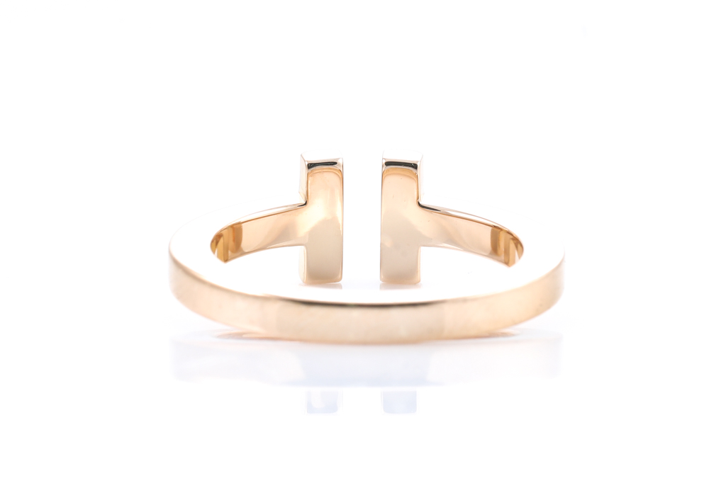Tiffany & Co Square Ring. 18ct rose gold. Ring size O - ring resize is not recommended. Width: 2.58mm. Weight 6.7g. With original box. (Pre-owned)