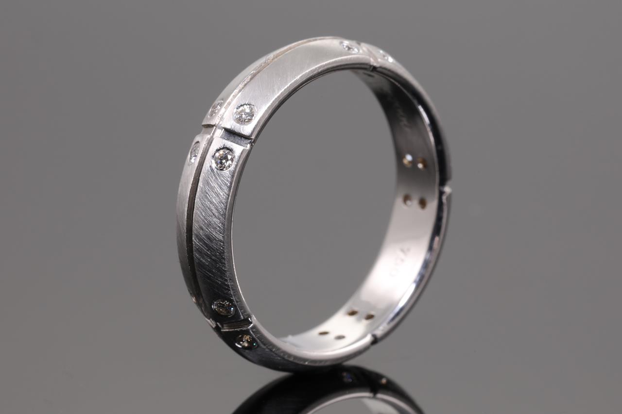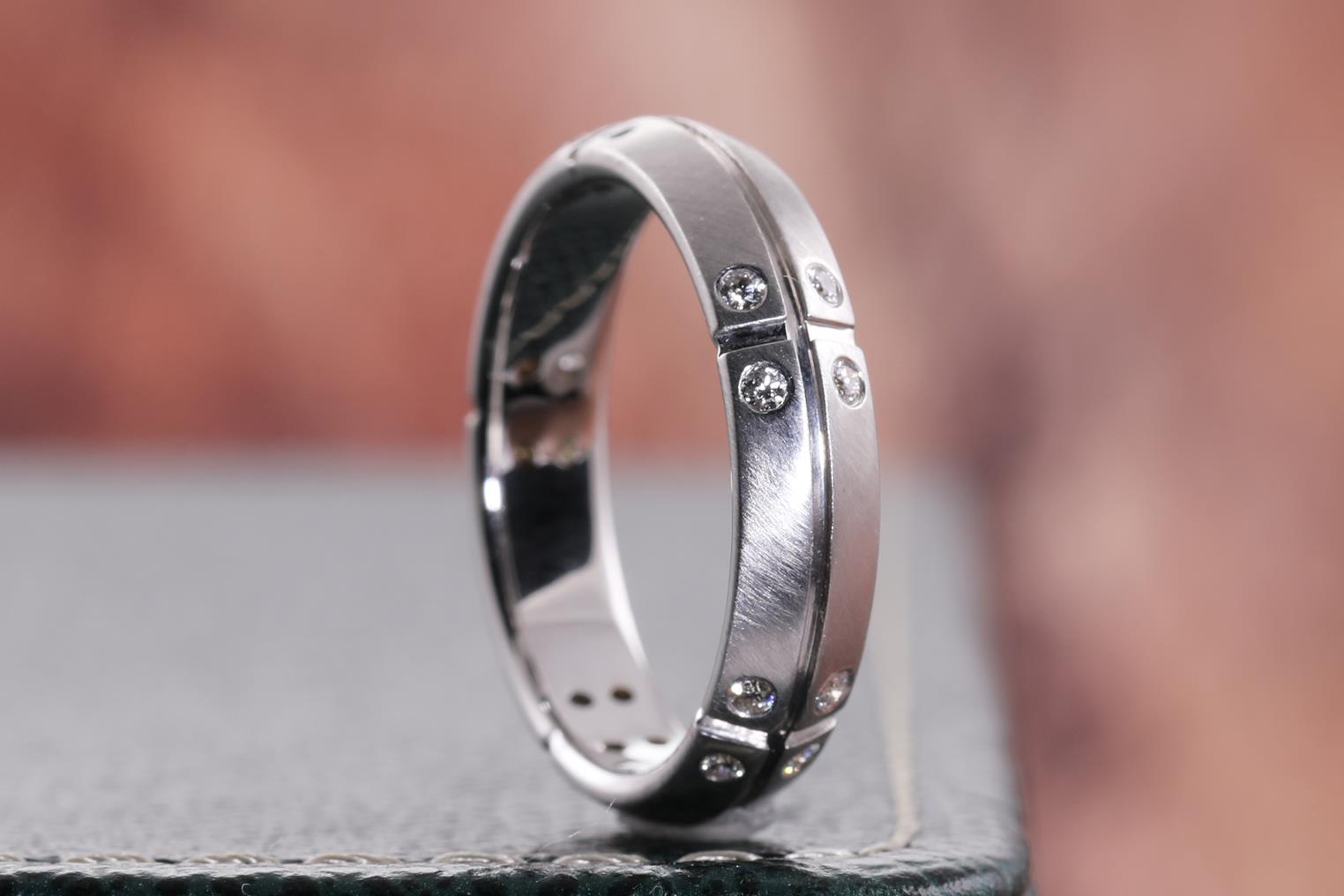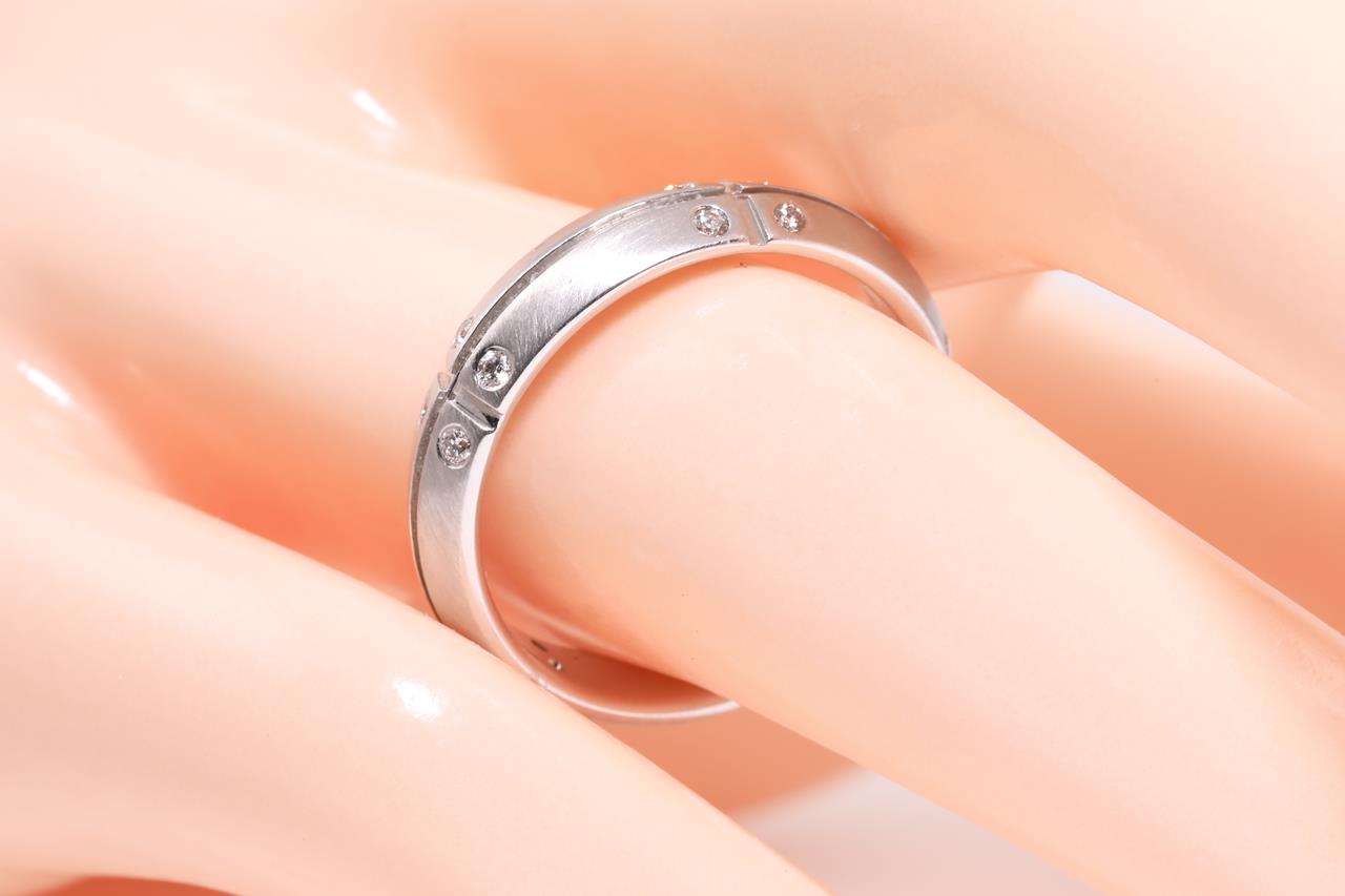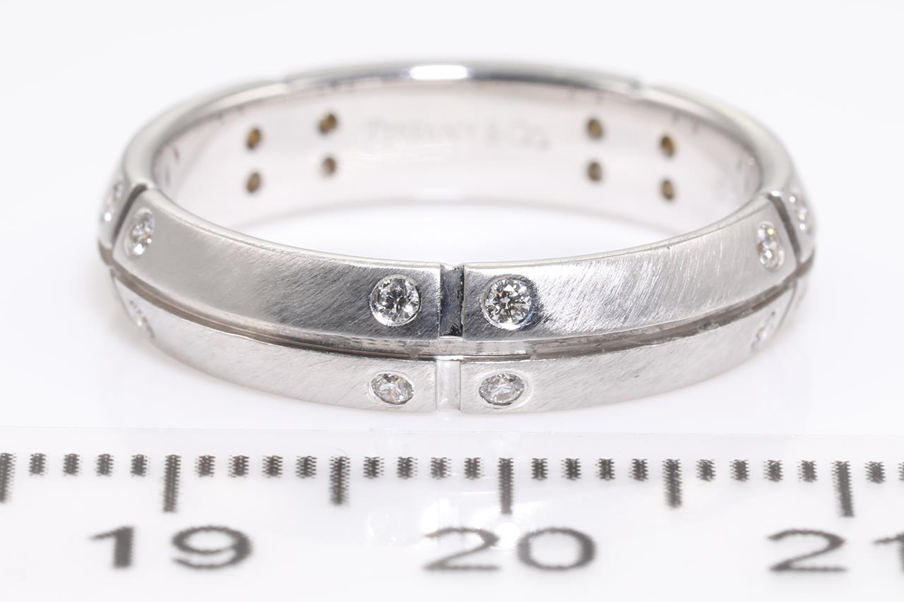 Tiffany & Co Streamerica ring with 20 round Diamonds totalling 0.20cts. Circa 2000. 18ct white gold. Ring size Q - ring resizing is not recommended. Weight: 6.3g. With Tiffany & Co box. (Pre-owned)