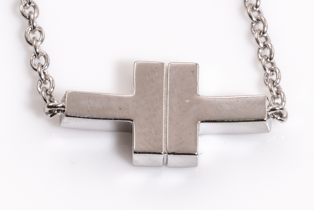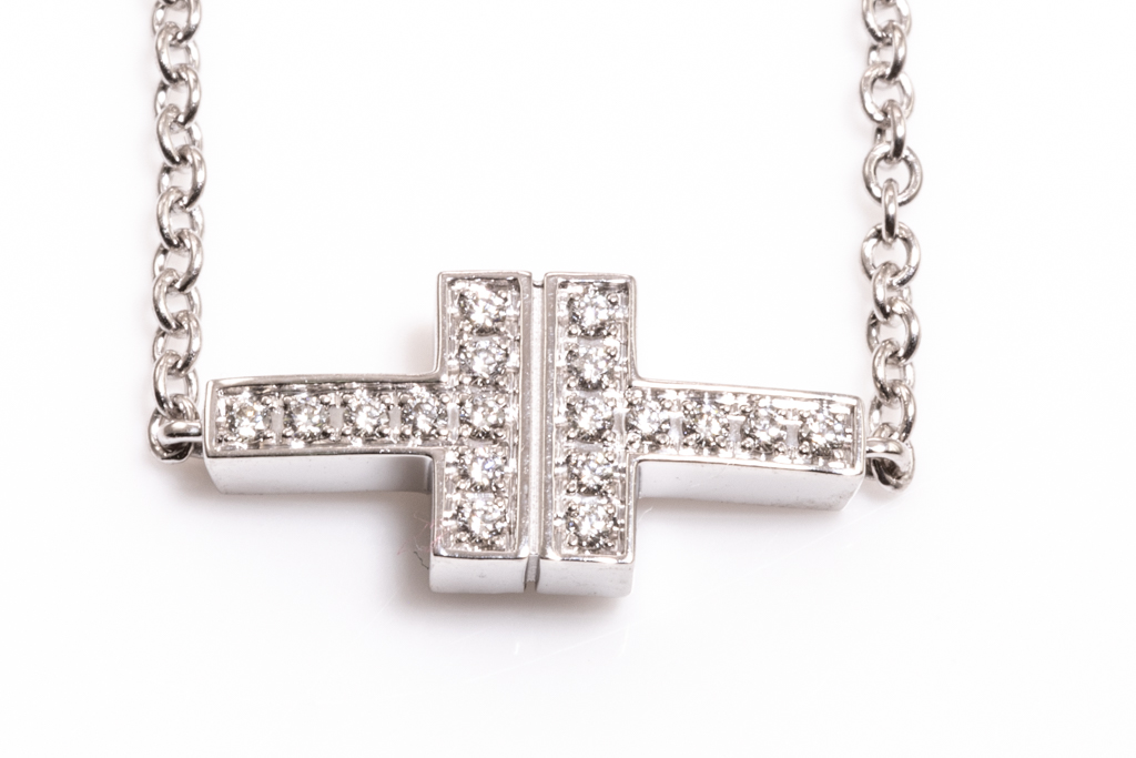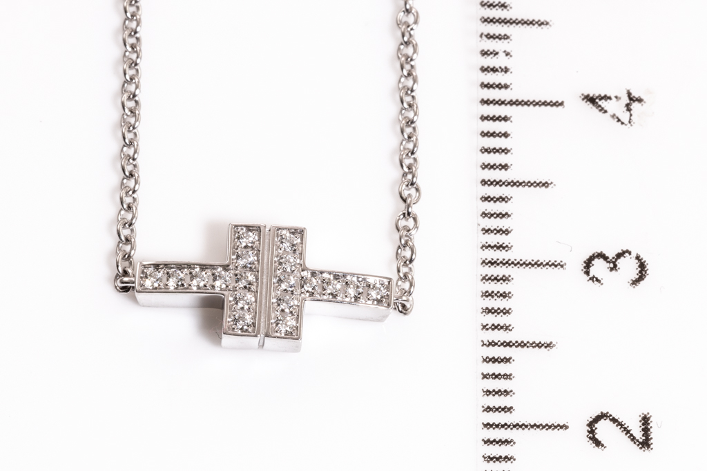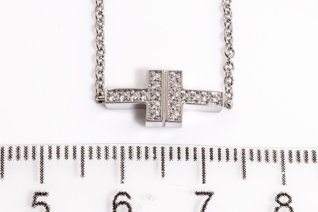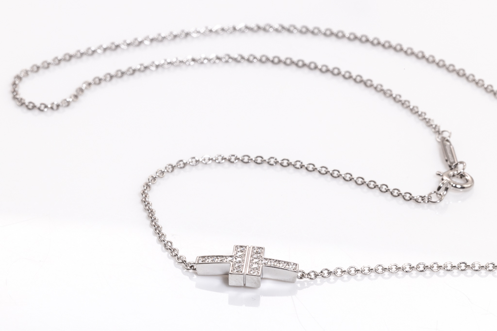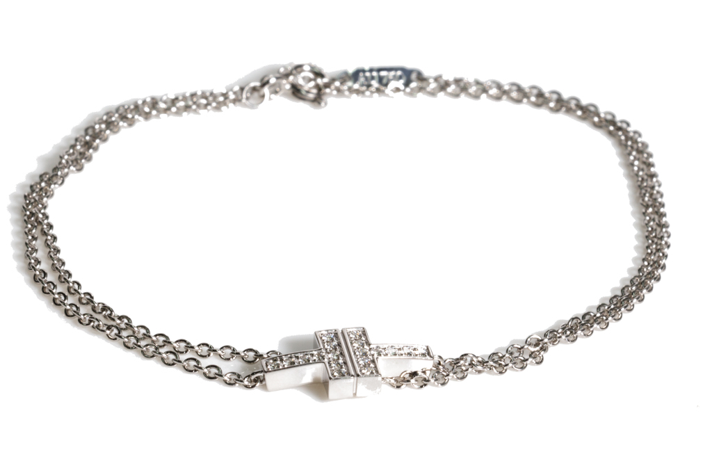 Tiffany & Co Tiffany T Diamond Double Chain Bracelet with round Diamonds totalling 0.06cts. 18ct white gold. Length: 36cm. Weight: 4.2g. (Pre-owned)
