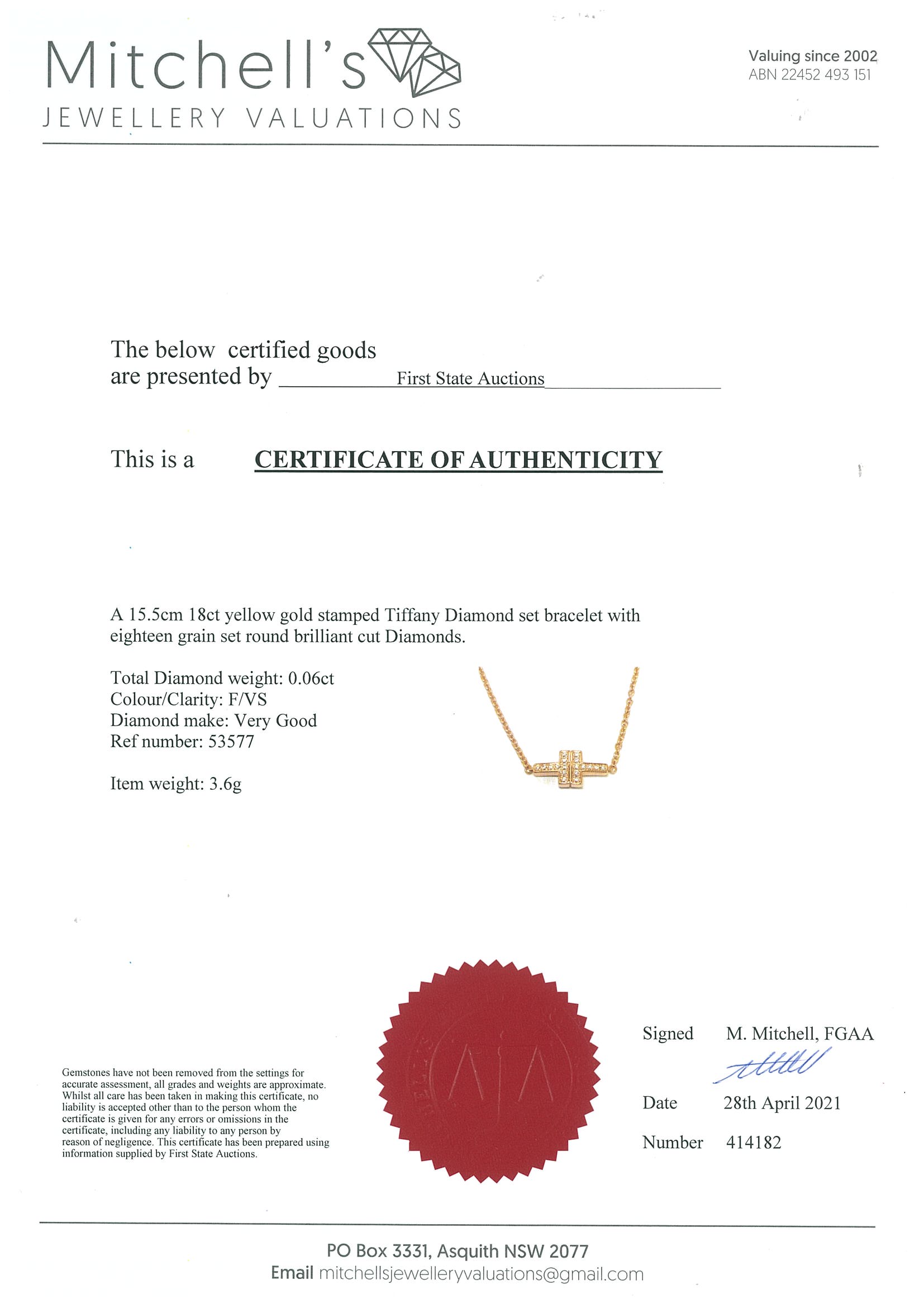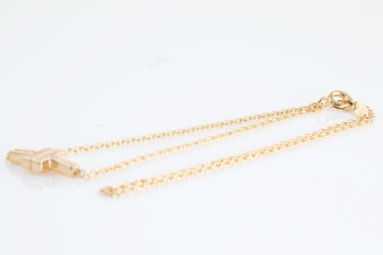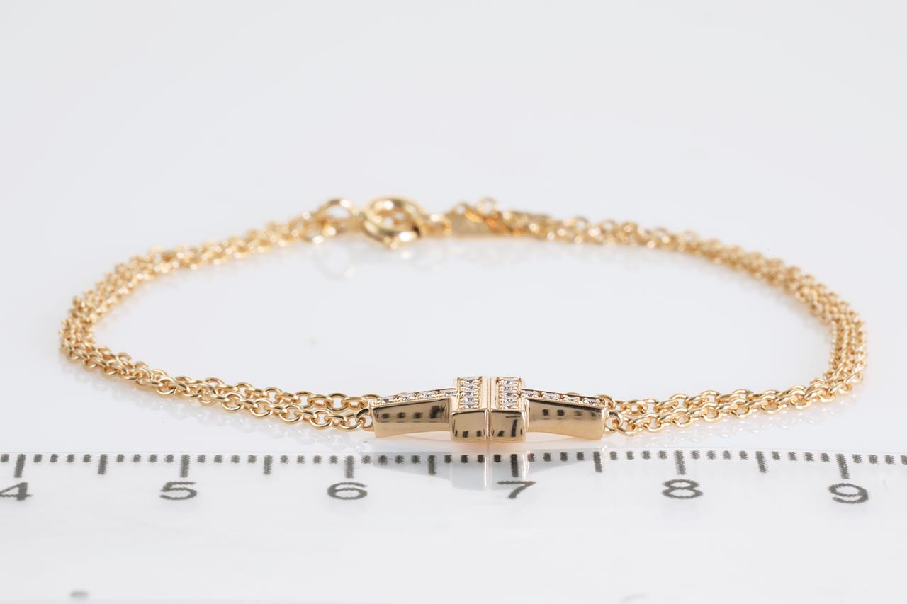 Tiffany & Co T double chain bracelet with Diamonds totalling 0.06cts. 18ct yellow gold. Length: 15.5cm. Weight: 3.6g. With certificate #414182. With Tiffany & Co box. (Pre-owned)