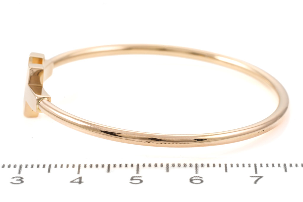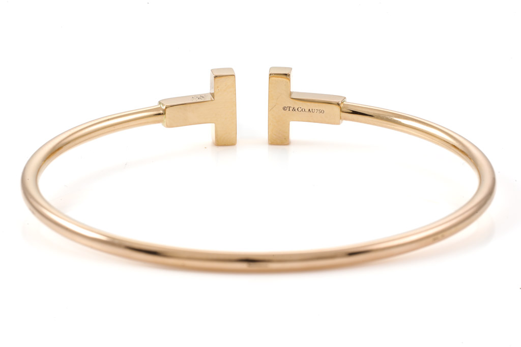 Tiffany & Co T Narrow Wire bracelet. 18ct yellow gold. Circumference: 14cm. Made in Italy. Weight: 8.1g. With Tiffany and Co box. (Pre-owned)