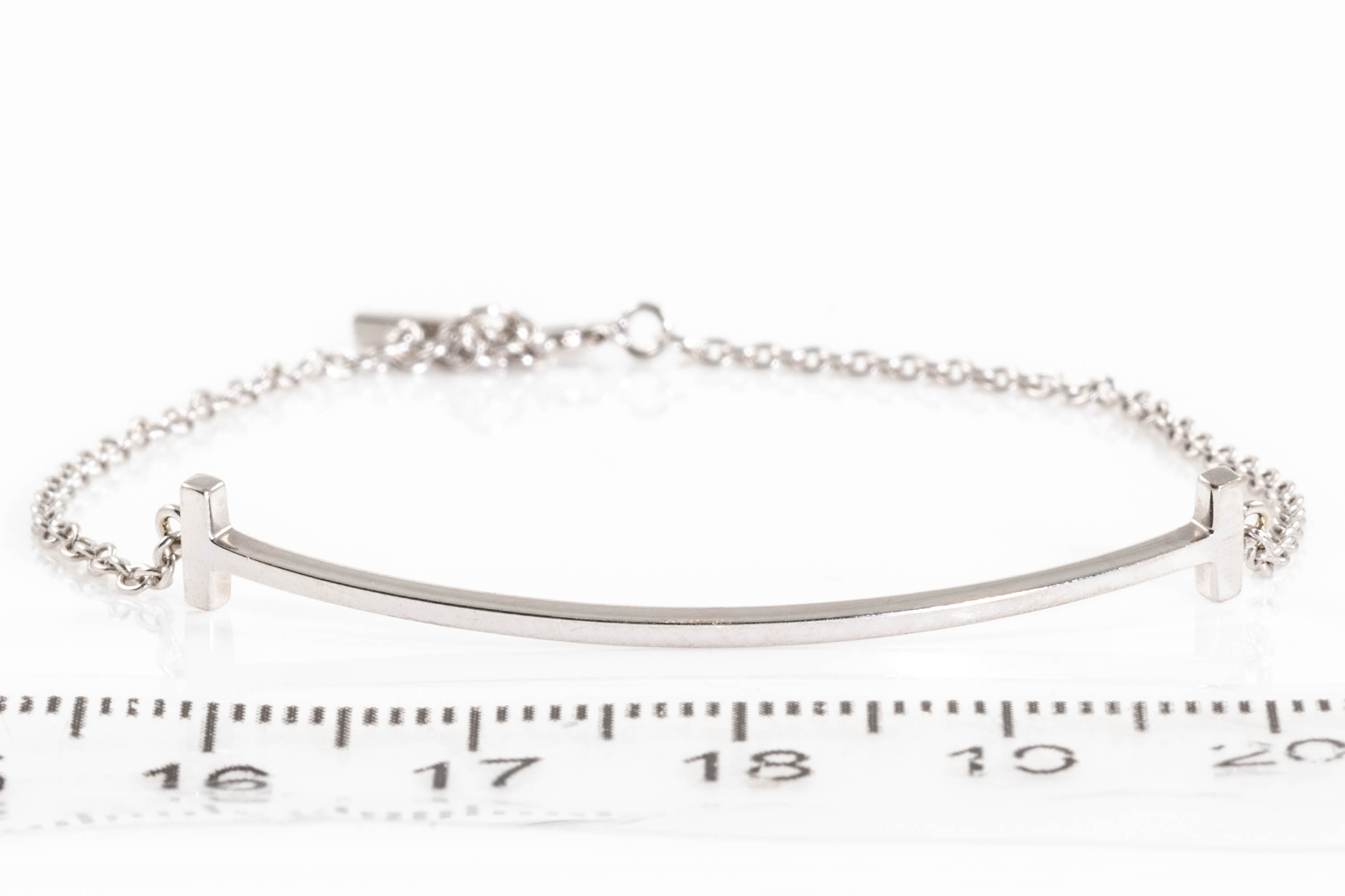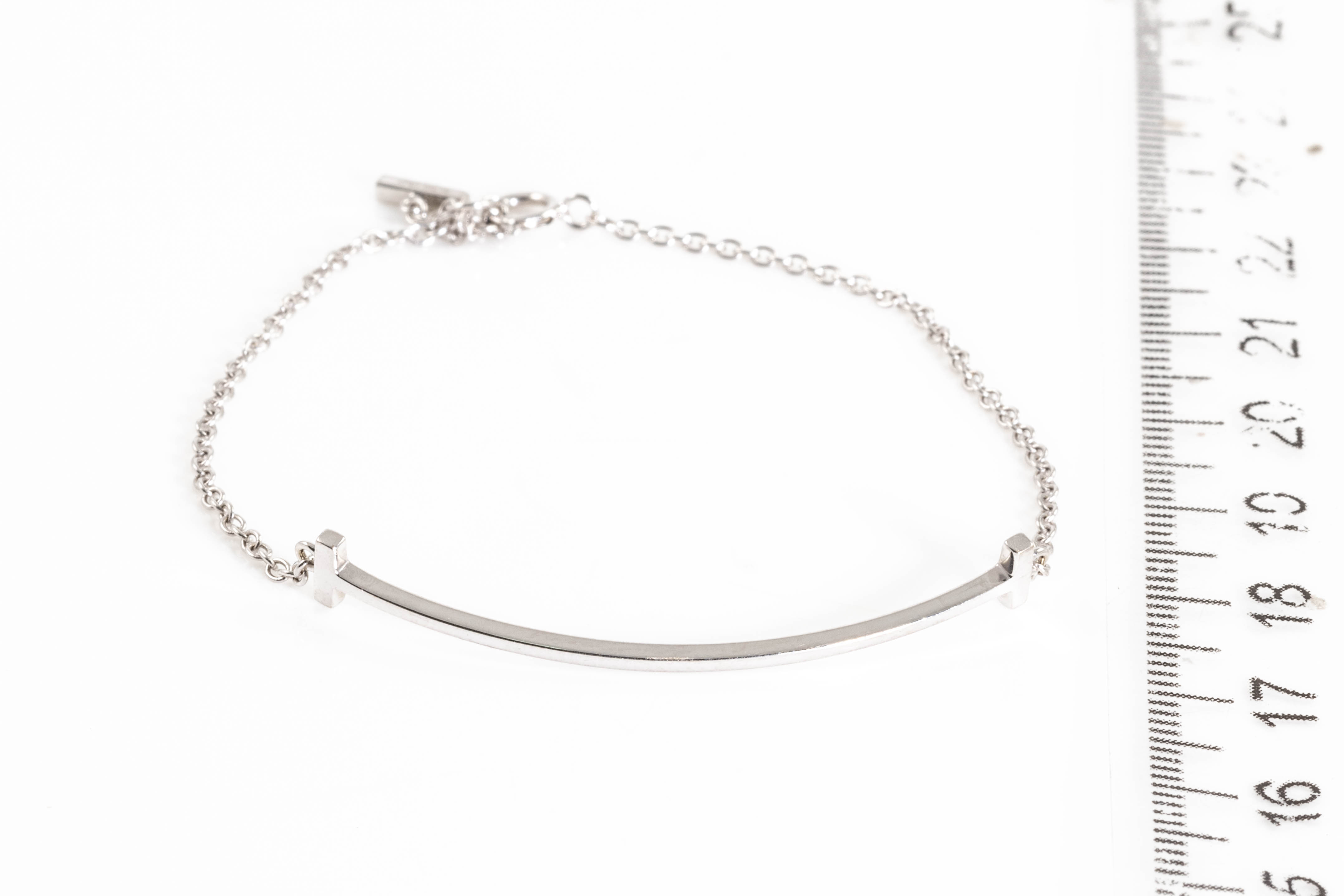 Tiffany & Co. T Smile bracelet. 18ct white gold. Adjustable maximum length: 18cm. Weight: 2.5g. With Tiffany & Co box. (Pre-owned)