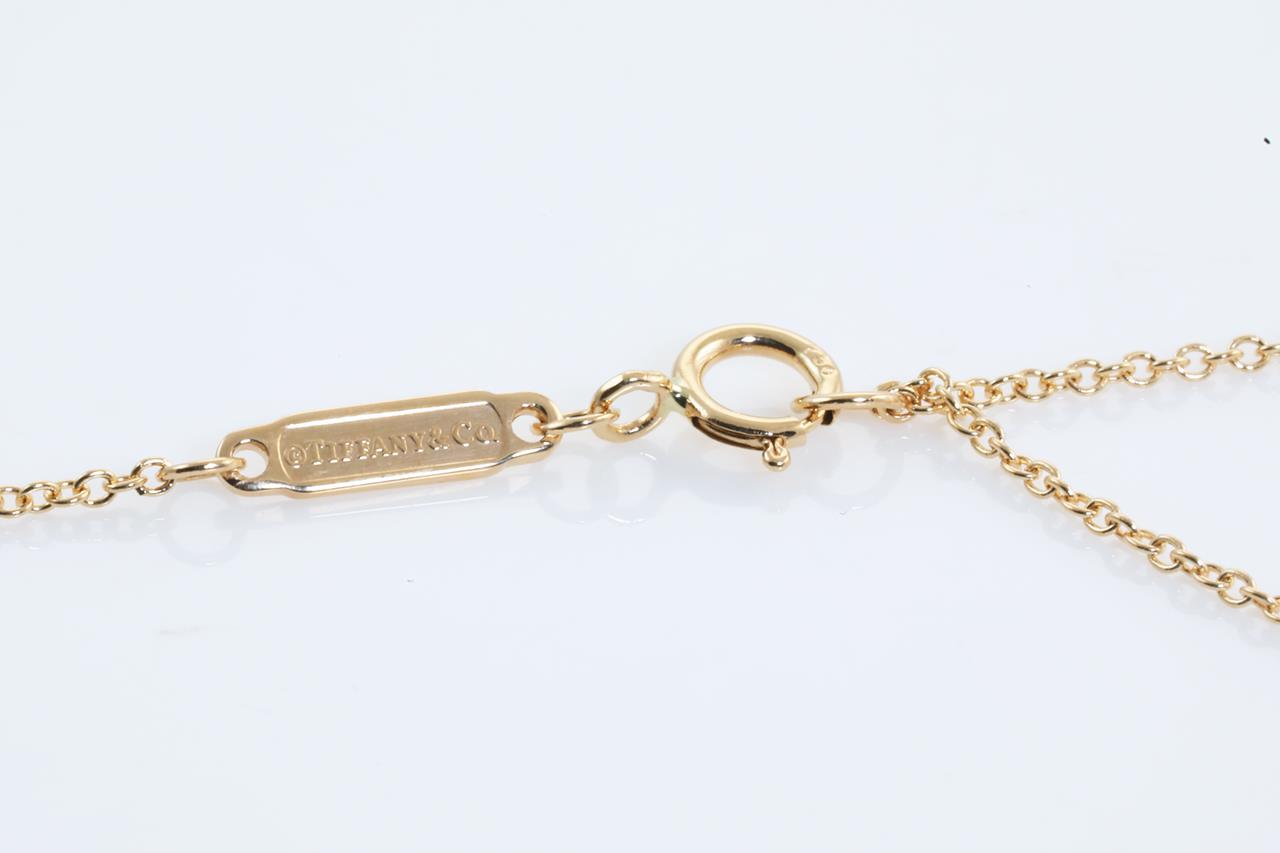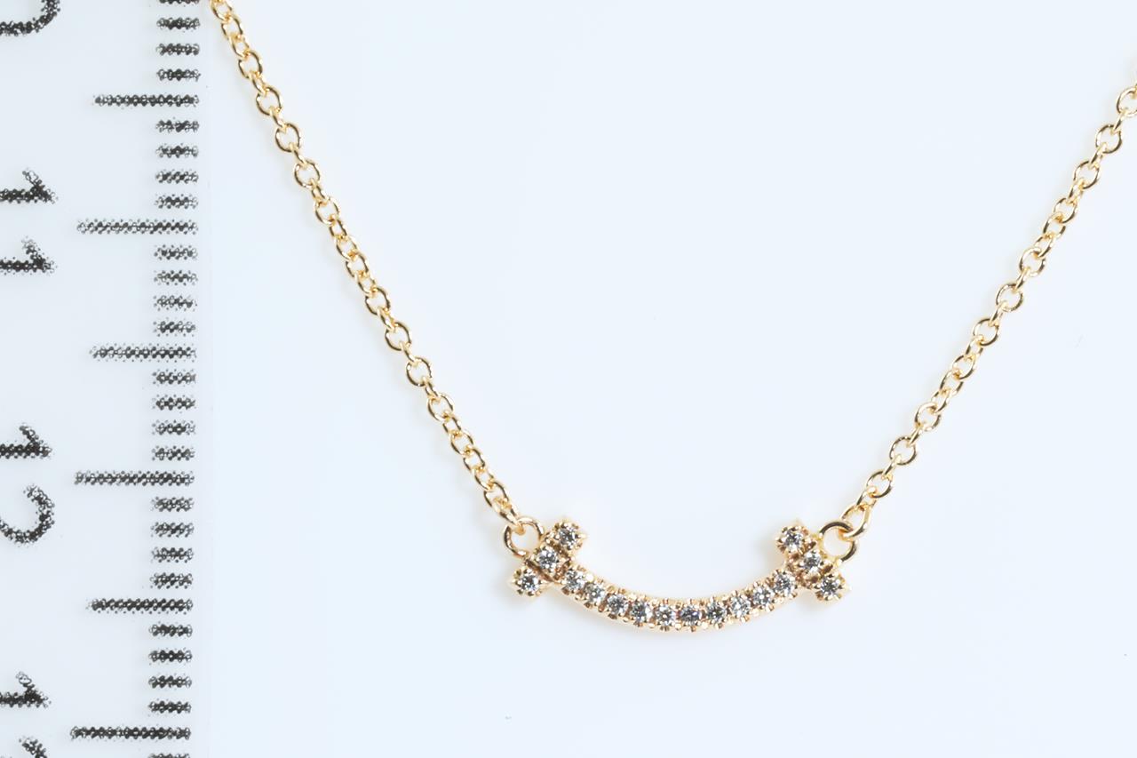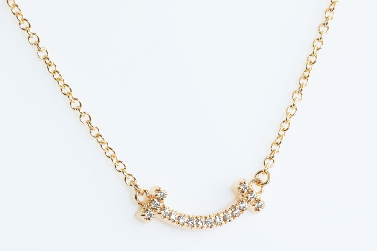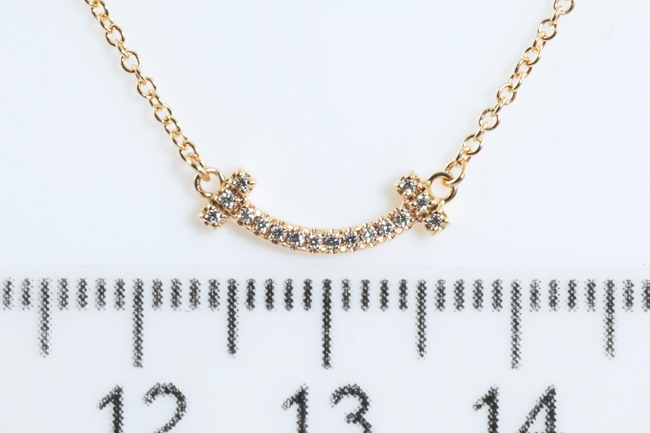 Tiffany & Co T smile necklace with round Diamonds totalling 0.06cts. 18ct rose gold with attached chain. Length: 45cm. Weight: 2.3g (Pre-owned)