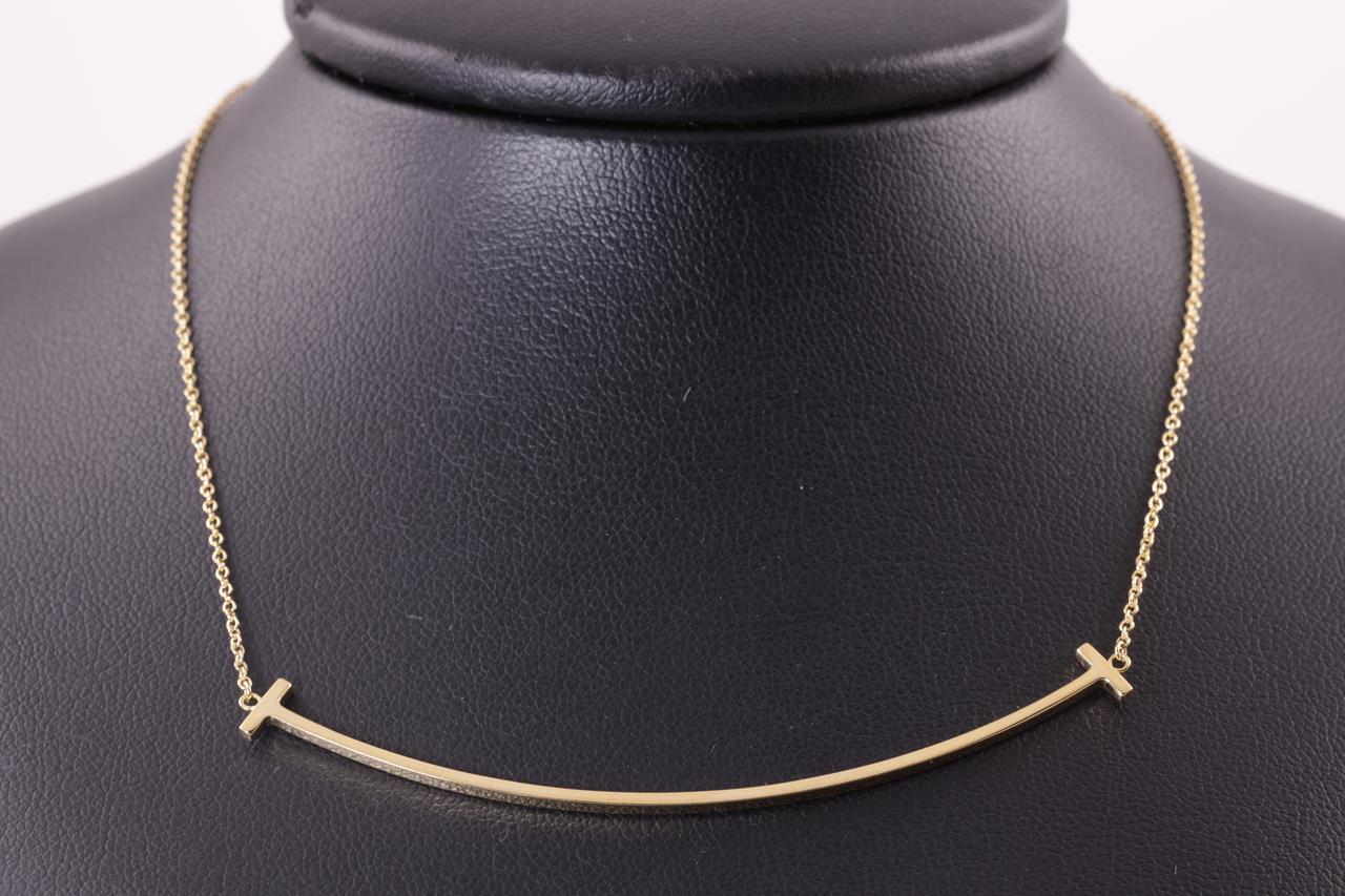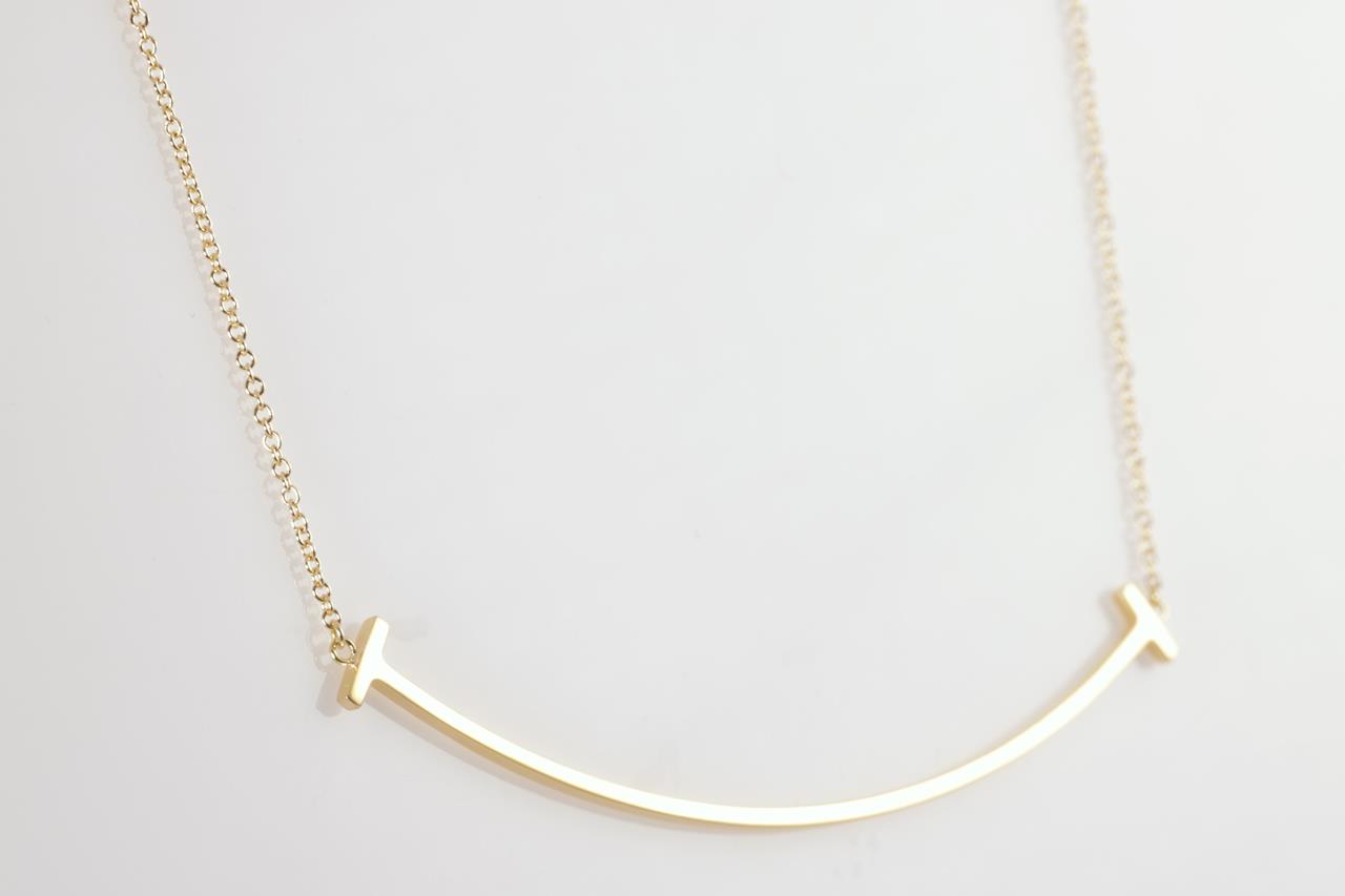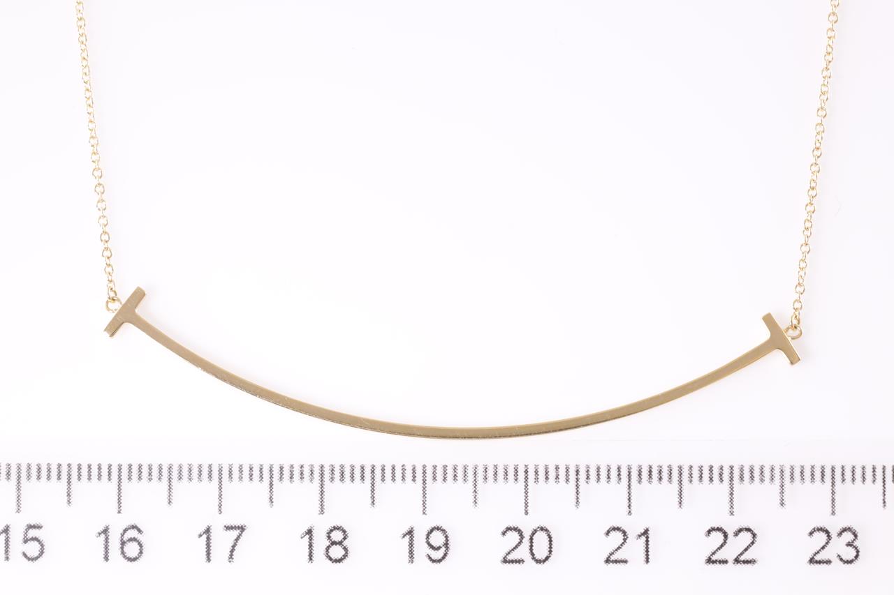 Tiffany & Co T Smile large pendant. 18ct yellow gold with attached chain. Adjustable max length 45cm. Made in Italy. Weight: 3.6g (Pre-owned)
