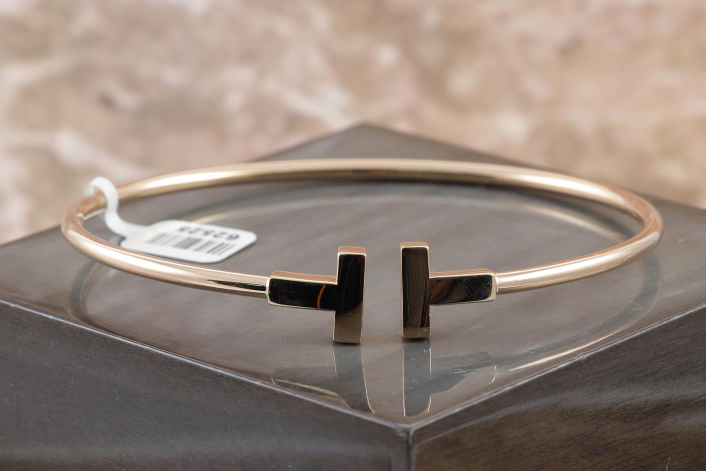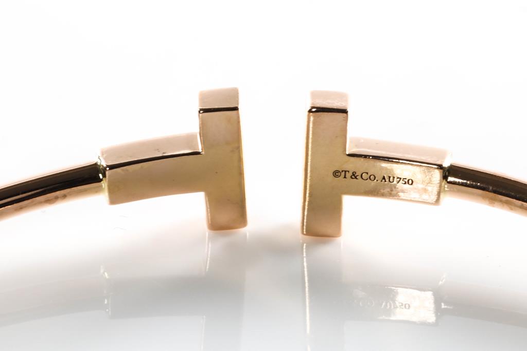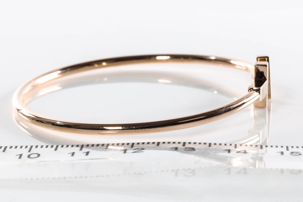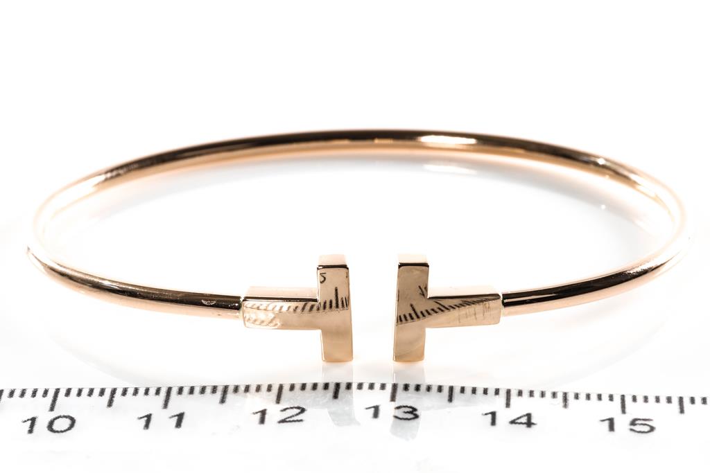 Tiffany & Co T narrow wire medium bracelet. 18ct yellow gold. Circumference: 17cm. Weight 9.1g. (Pre-owned)