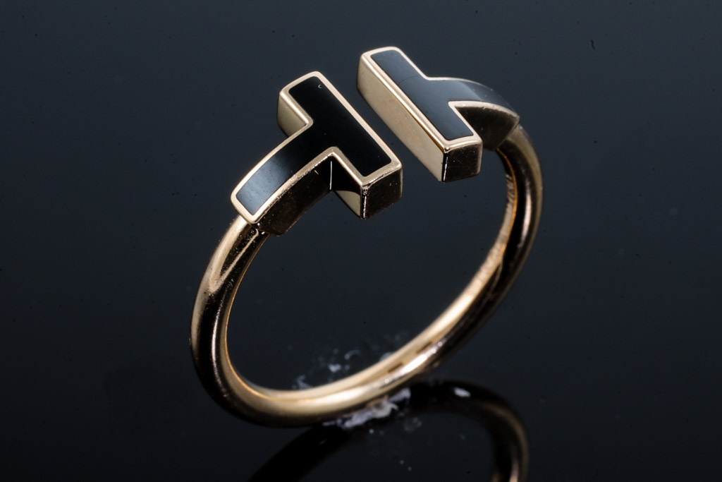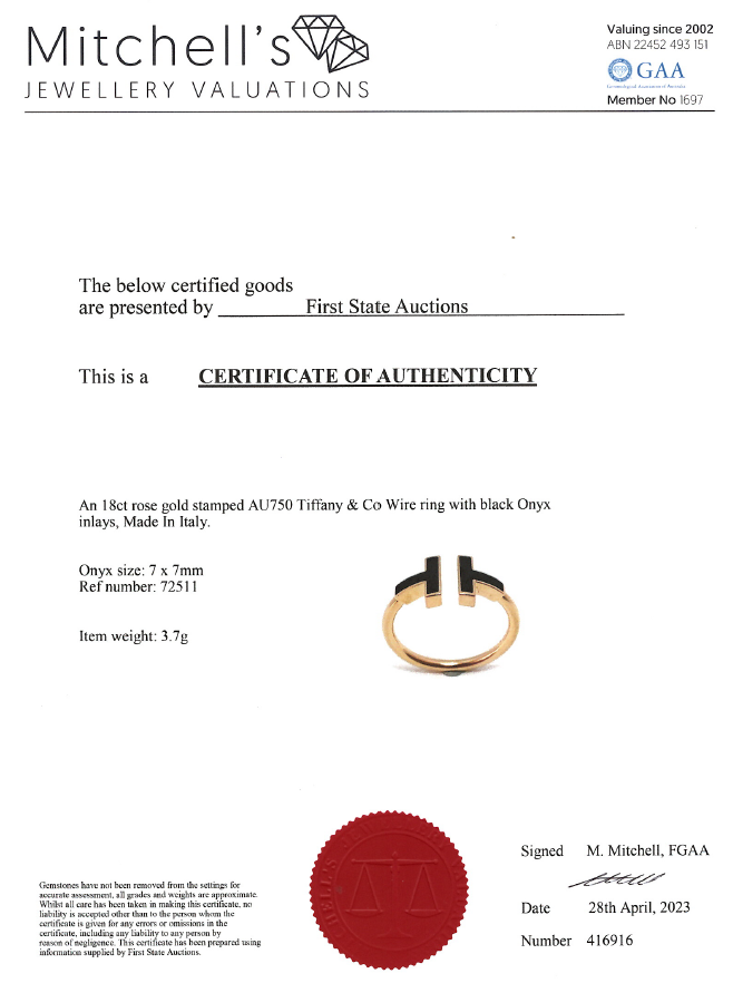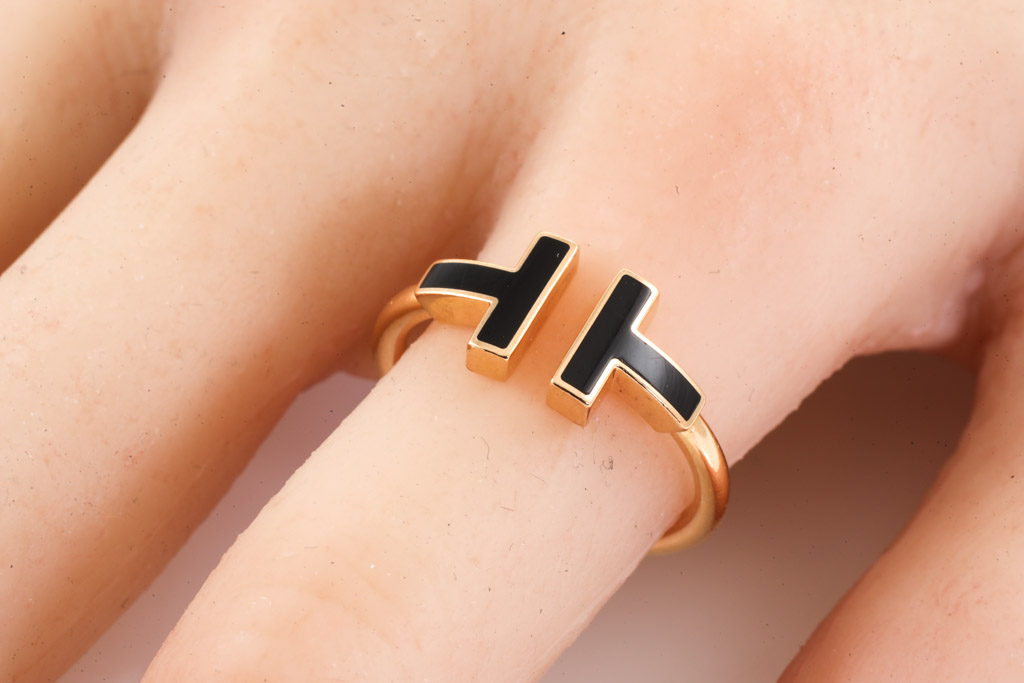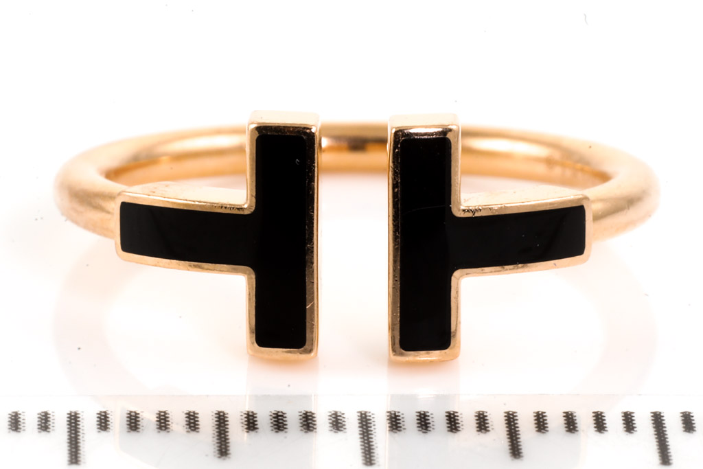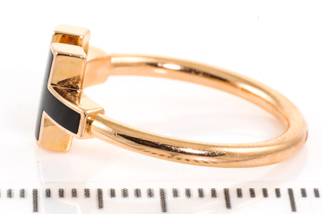 Tiffany & Co T Wire ring with Onyx. 18ct rose gold. Ring size N1/2 - ring resizing is not recommended. Made in Italy. Weight: 3.7g. With Tiffany & Co box. With Valuation Certificate (Pre-owned)