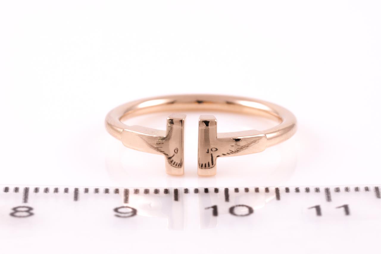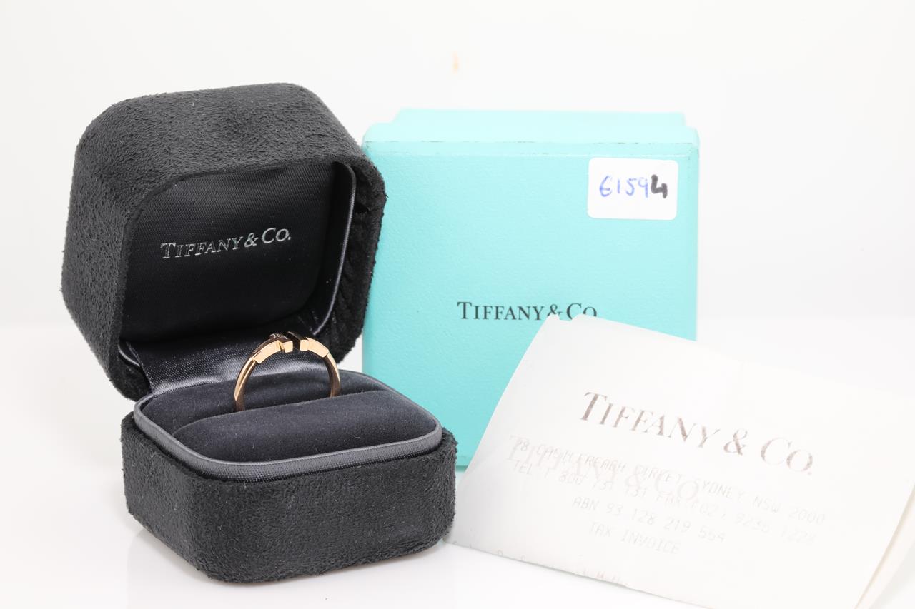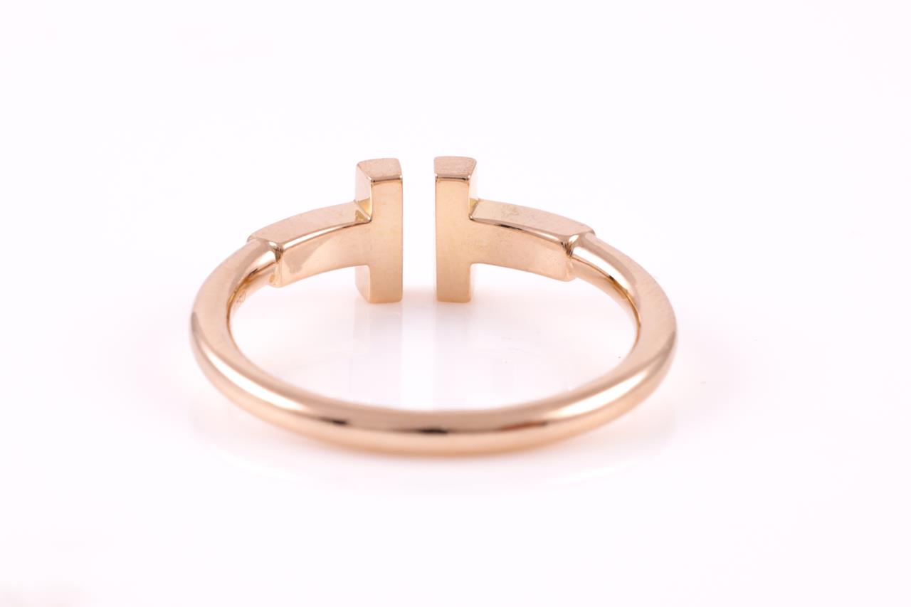 Tiffany & Co T wire ring. 18ct rose gold. Ring size L - ring resizing is not recommended. Weight 3g. With Tiffany & Co box. (Pre-owned)