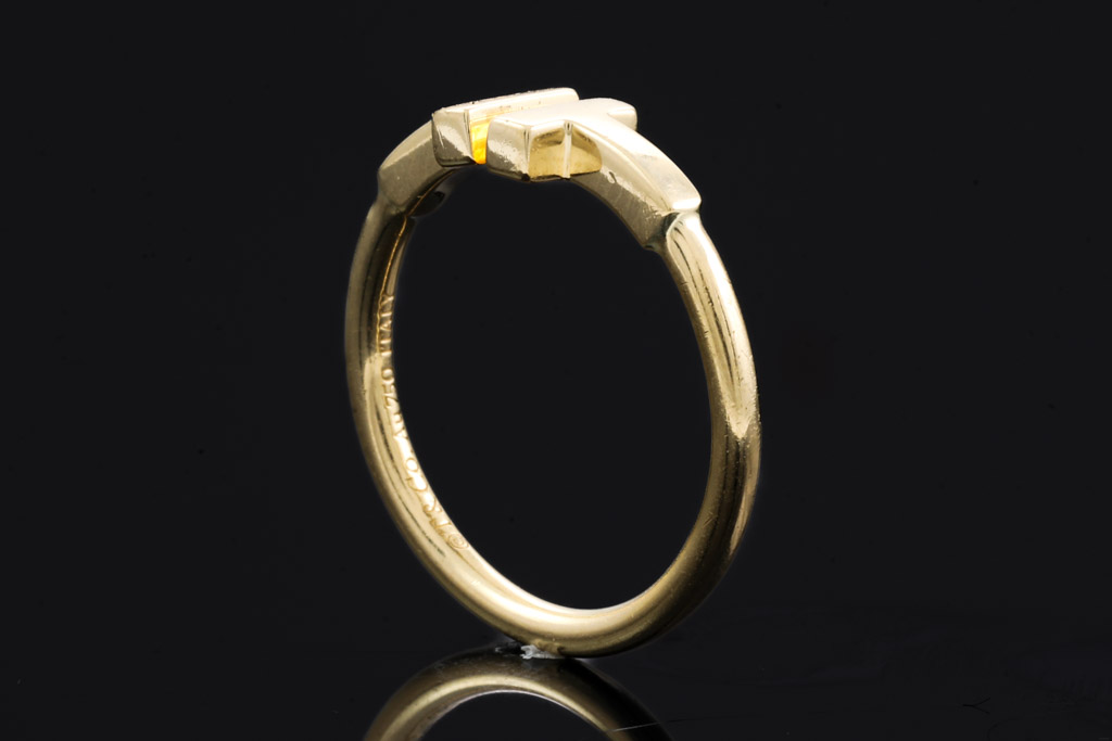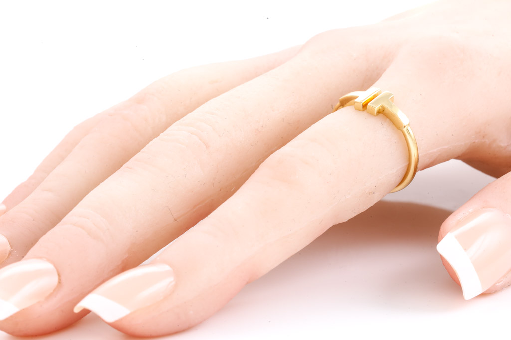 Tiffany & Co T wire ring. 18ct yellow gold. Ring size K - ring resizing is not recommended. Made in Italy. Weight 2.9g. (Pre-owned)