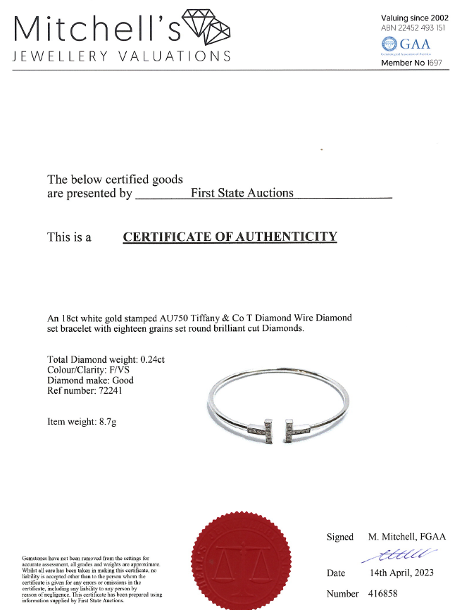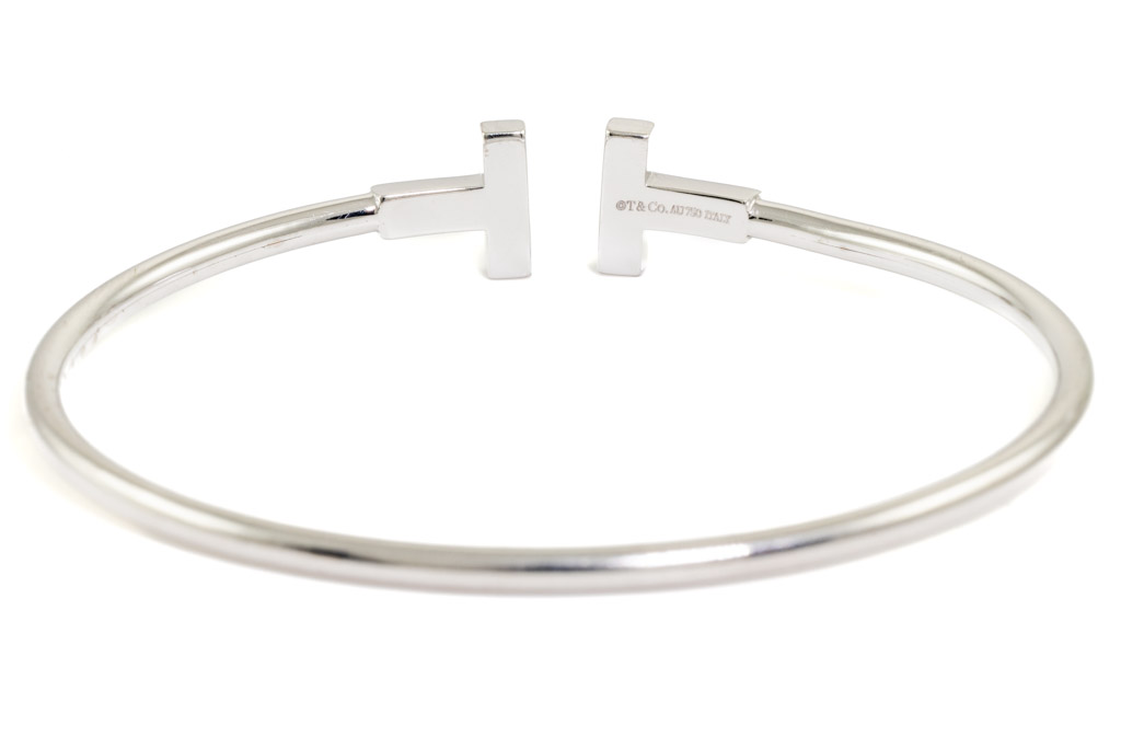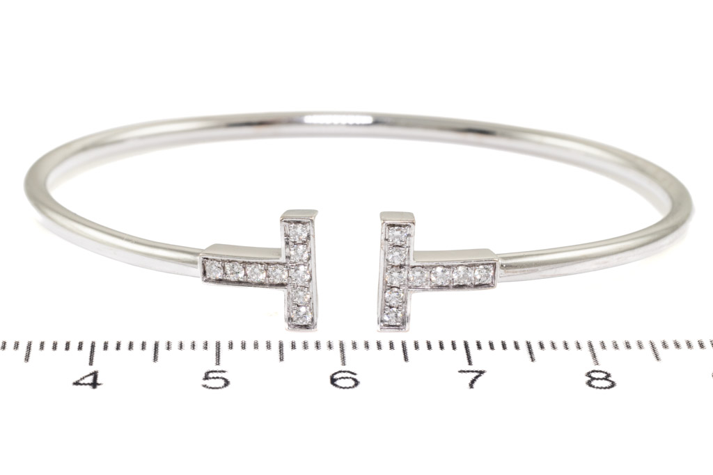 Tiffany & Co Tiffany T Diamond Wire bracelet with round Diamonds totalling 0.24cts. 18ct white gold. Inner circumference: 16cm. Weight: 8.7g. With Certificate #416858. (Pre-owned)