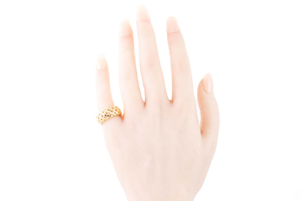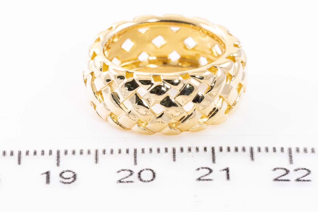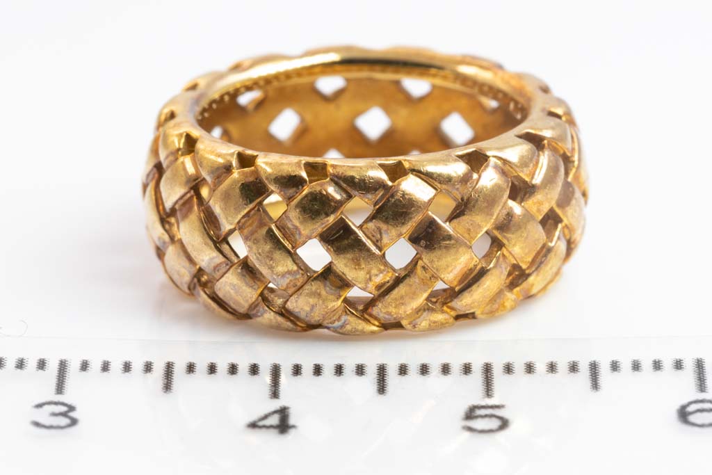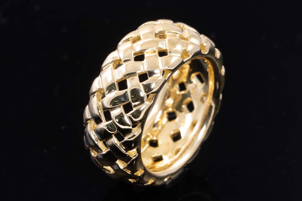Tiffany & Co. Vannerie ring. 18ct yellow gold. Width; 9mm. Ring size I 1/2, - ring resizing is not recommended. Weight: 9g. (Pre-owned)