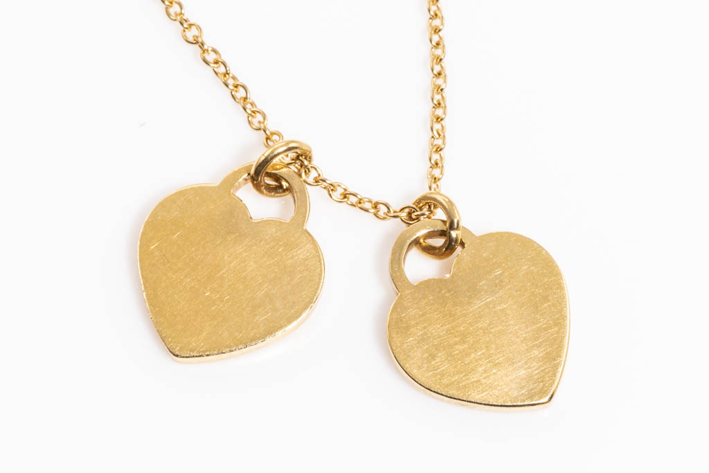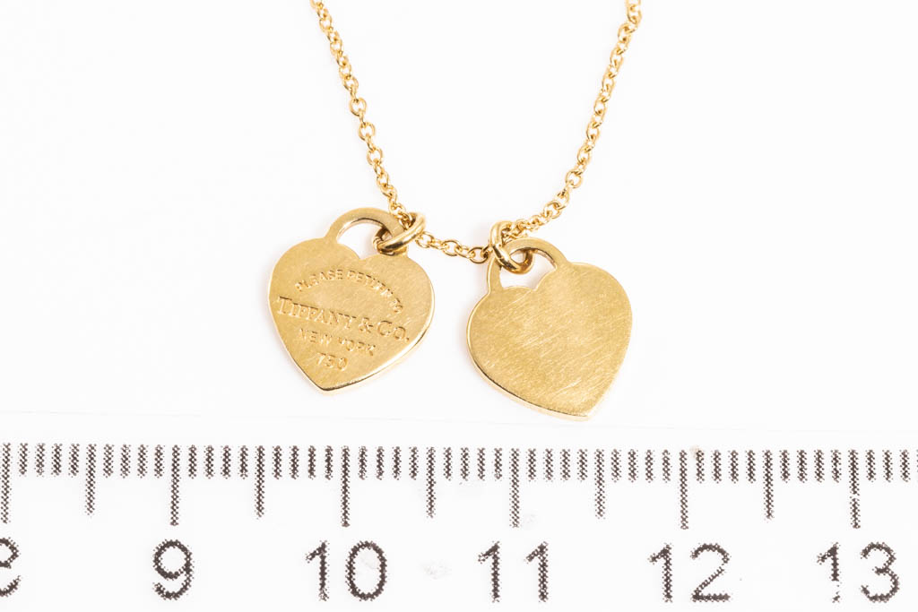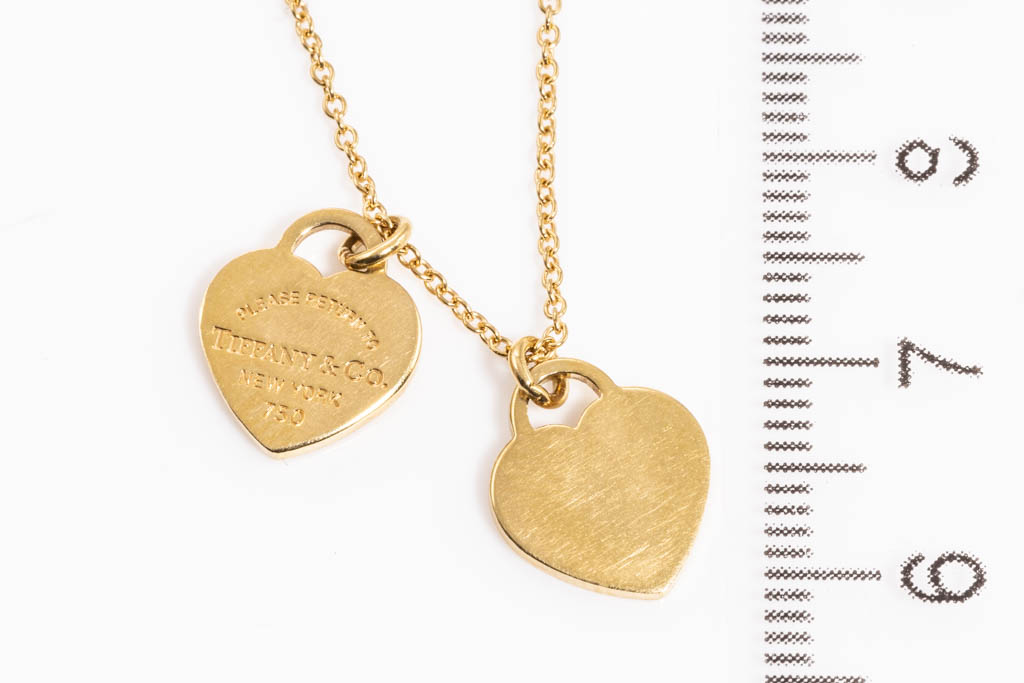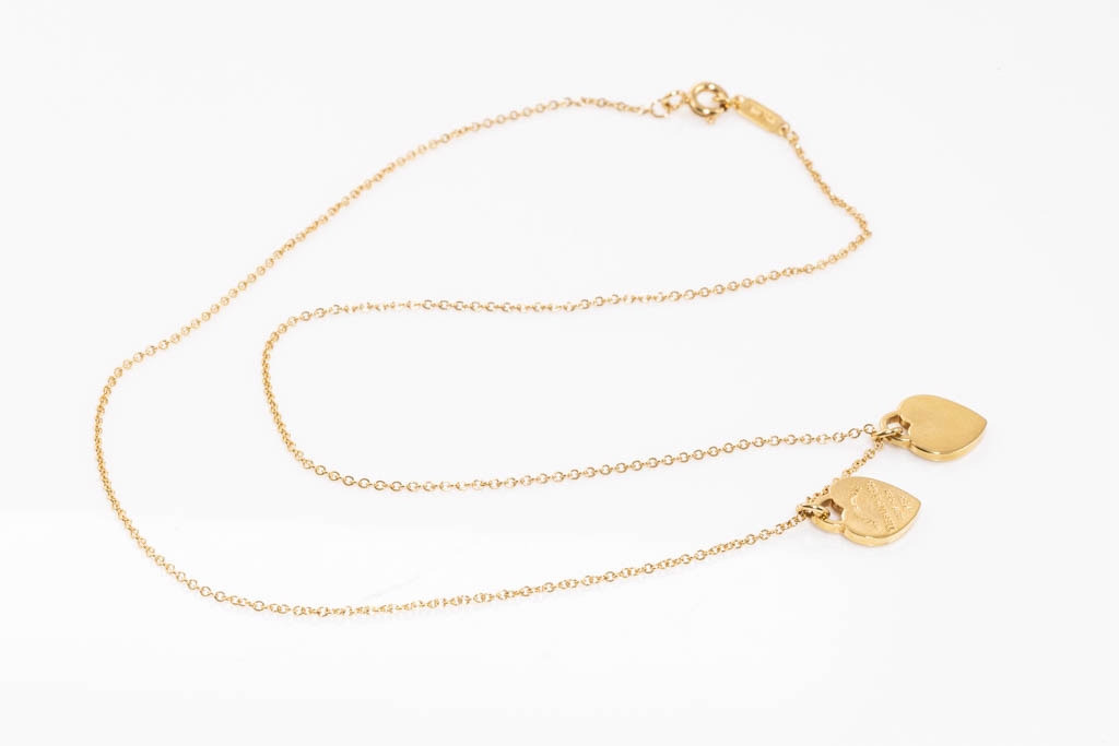 Tiffany Return To Tiffany Mini Double Heart Tag pendant. 18ct yellow gold with Tiffany & Co. 18ct yellow gold 40cm chain. Weight: 4.3g. (Pre-owned)