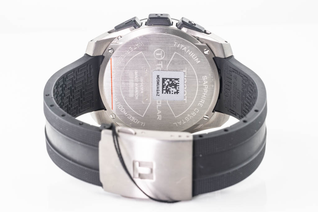 Tissot T-Touch Expert Solar Titanium mens watch. Black analog-digital dial, case, case diameter: 45mm, wrist size: 21cm, Swiss made. Ref# T0914204705100. With Tissot black rubber strap and clasp. With Tissot 2-Year International Warranty Card - to be registered online and details will be provided. With Tissot box. Tissot warranty applies. (As New, Note: minor scratches on case due to being display stock )