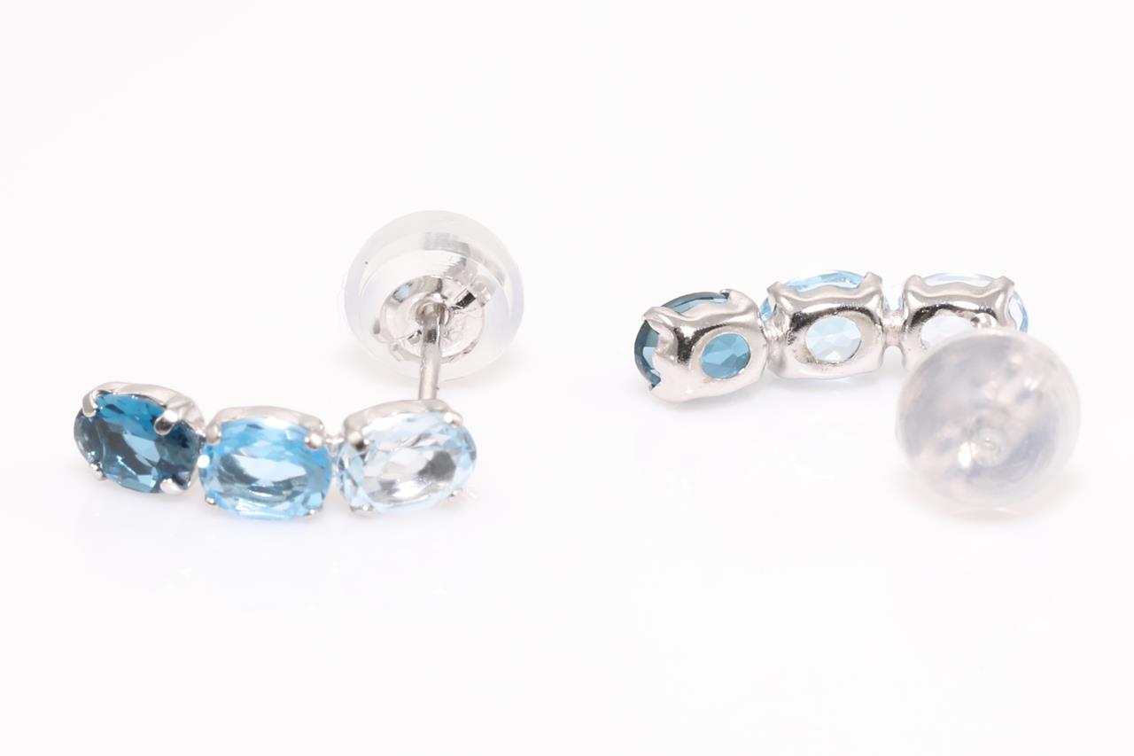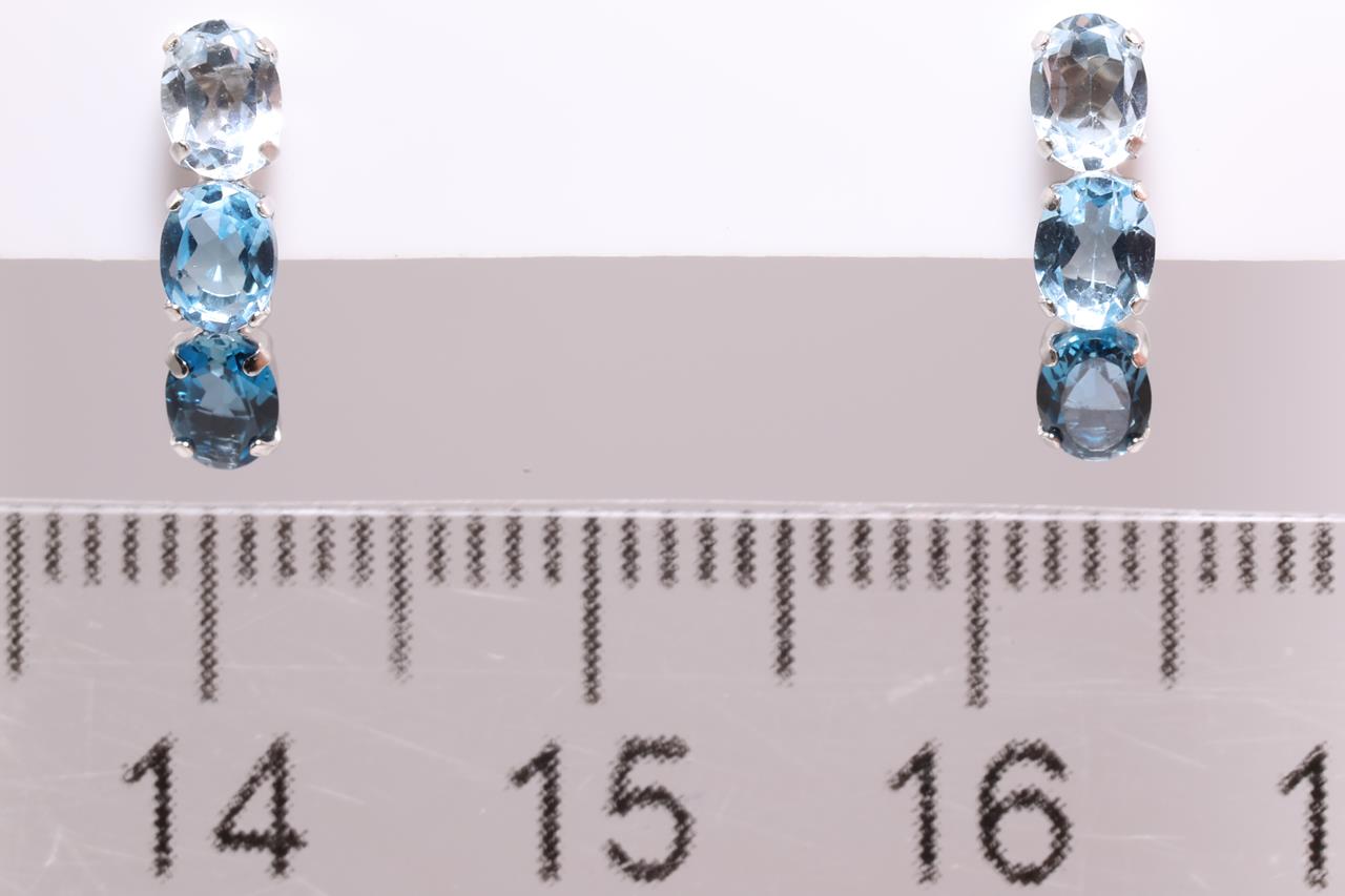 Drop Earrings with oval Topaz and Aquamarine totalling 1.00cts. 18ct white gold with gold & silicon backs. Weight: 0.8g. (As new)