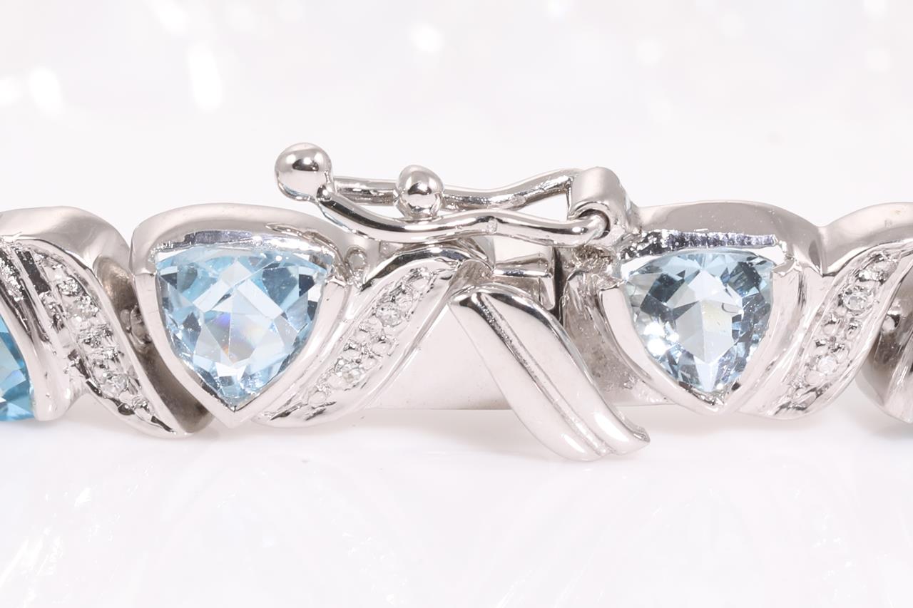 Topaz and Diamond bracelet with trilliant cut Topaz totalling 11.00cts and Diamonds totalling 0.22cts. 18ct white gold. Length: 18.5cm. Weight: 19.2g. (Pre-owned)