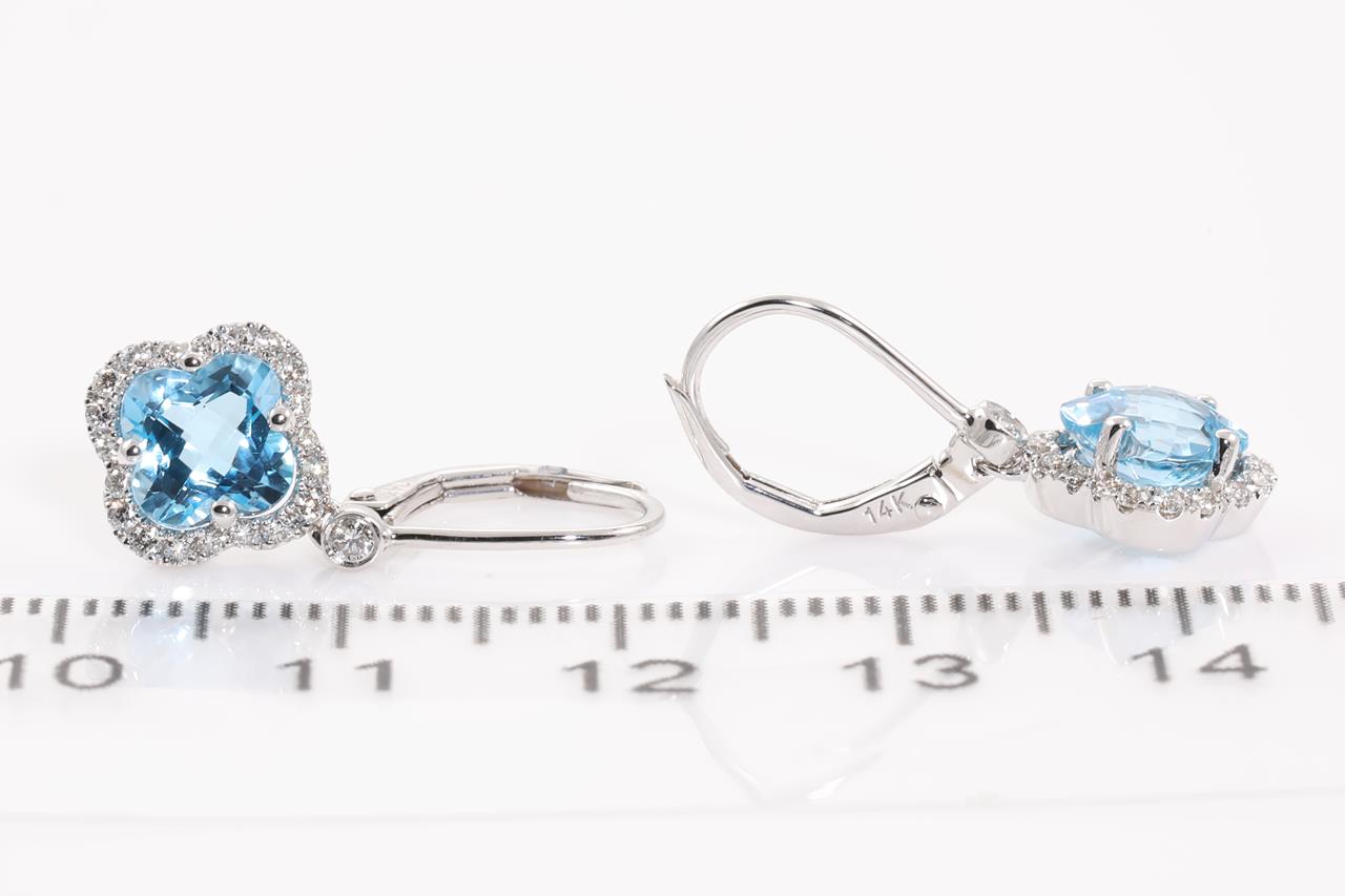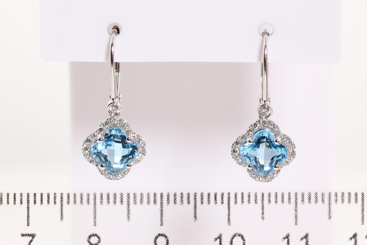 Topaz and Diamond leverback earrings with fancy cut Topaz totalling 2.41cts and Diamonds totalling 0.31cts (Estimated grading: H SI). 14ct white gold. Weight: 2.7g. (New)