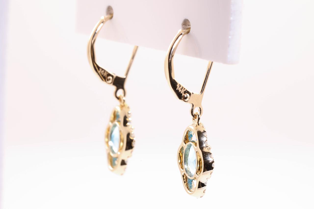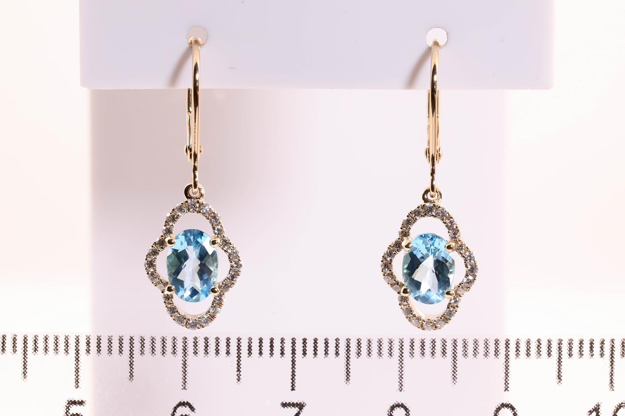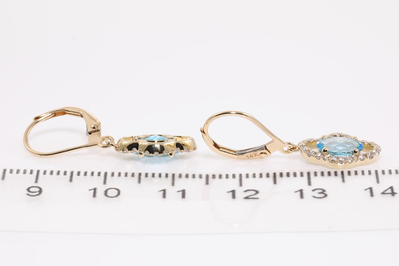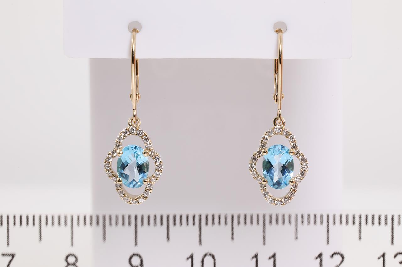 Topaz and Diamond leverback earrings with oval shape Topaz totalling 1.63cts and Diamonds totalling 0.31cts (Estimated grading: H SI). 14ct yellow gold. Weight: 2.2g. (New)