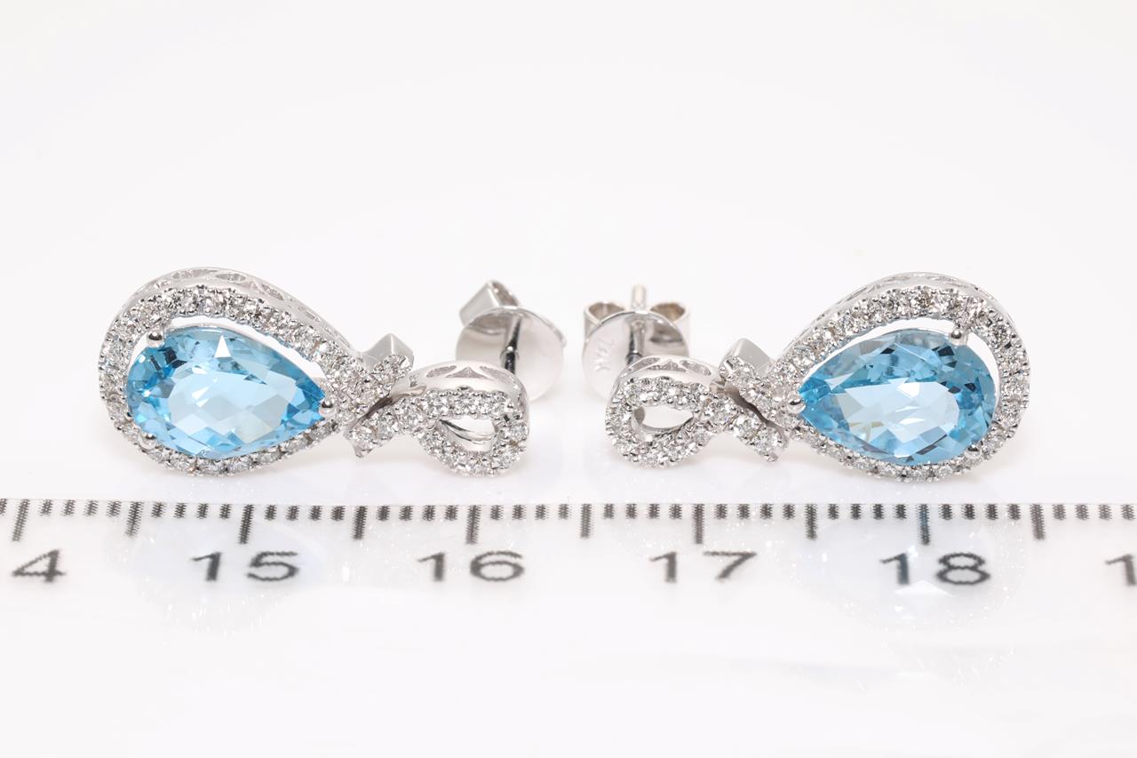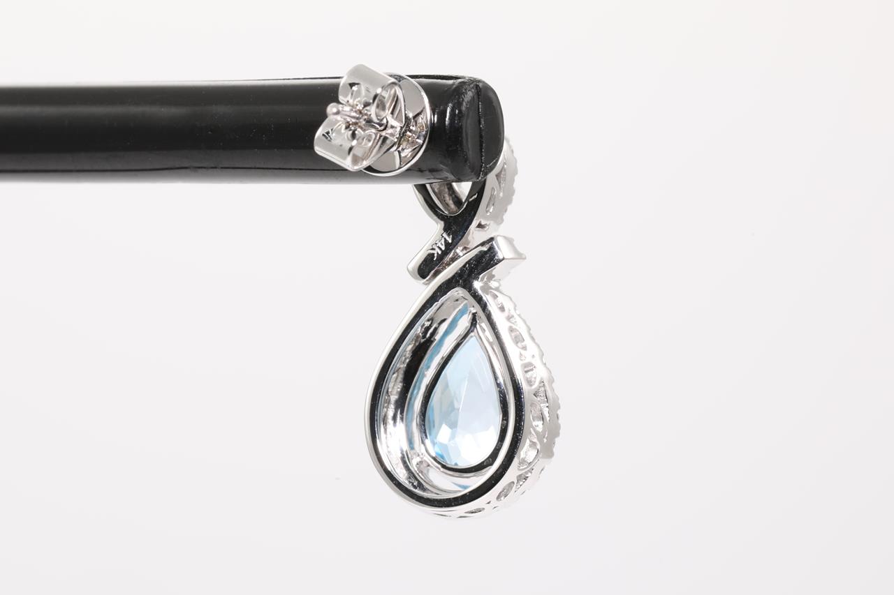 Topaz and Diamond earrings with pear shape Topaz totalling 3.03cts and Diamonds totalling 0.41cts (Estimated grading: H SI). 14ct white gold. Weight: 4.6g. (New)