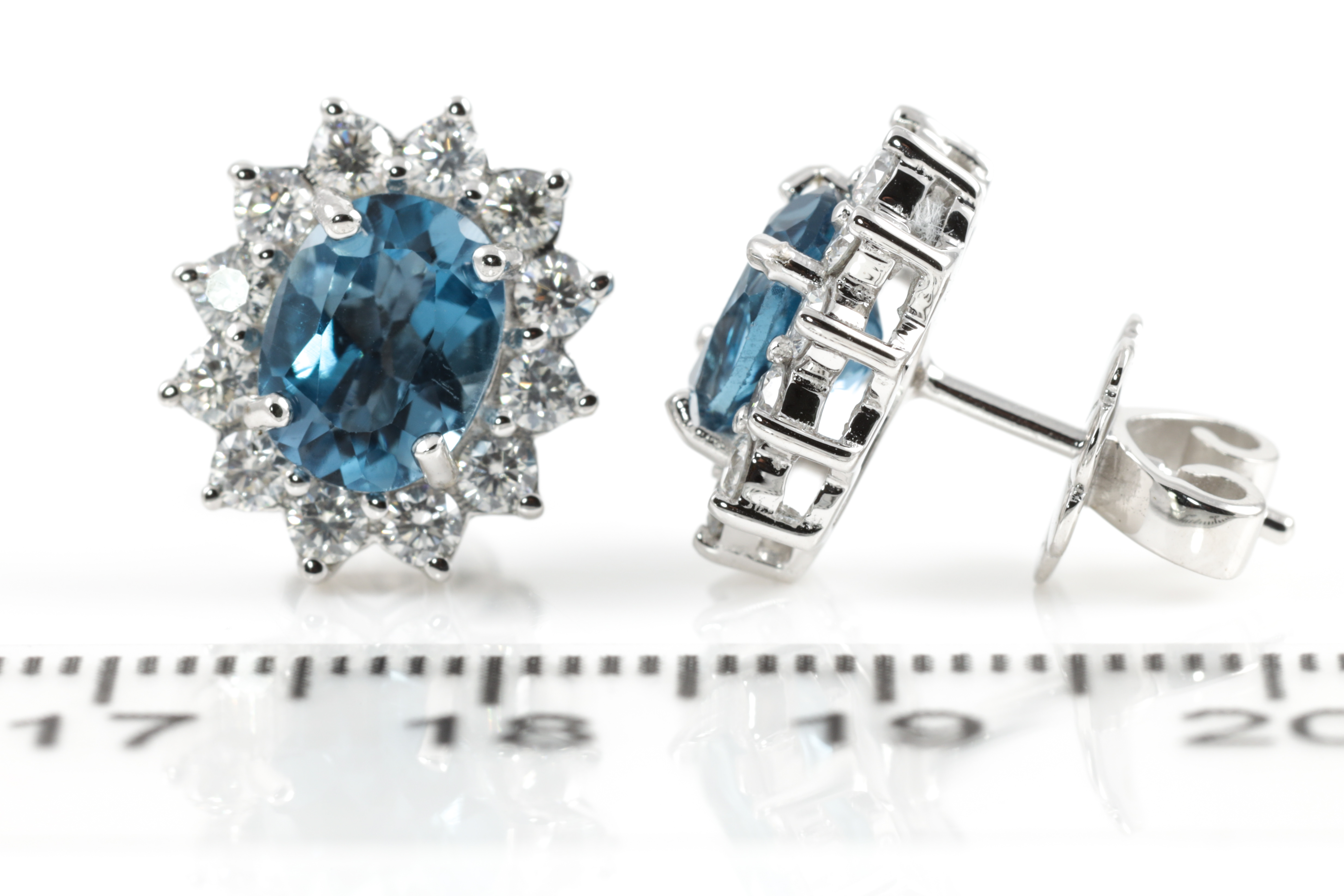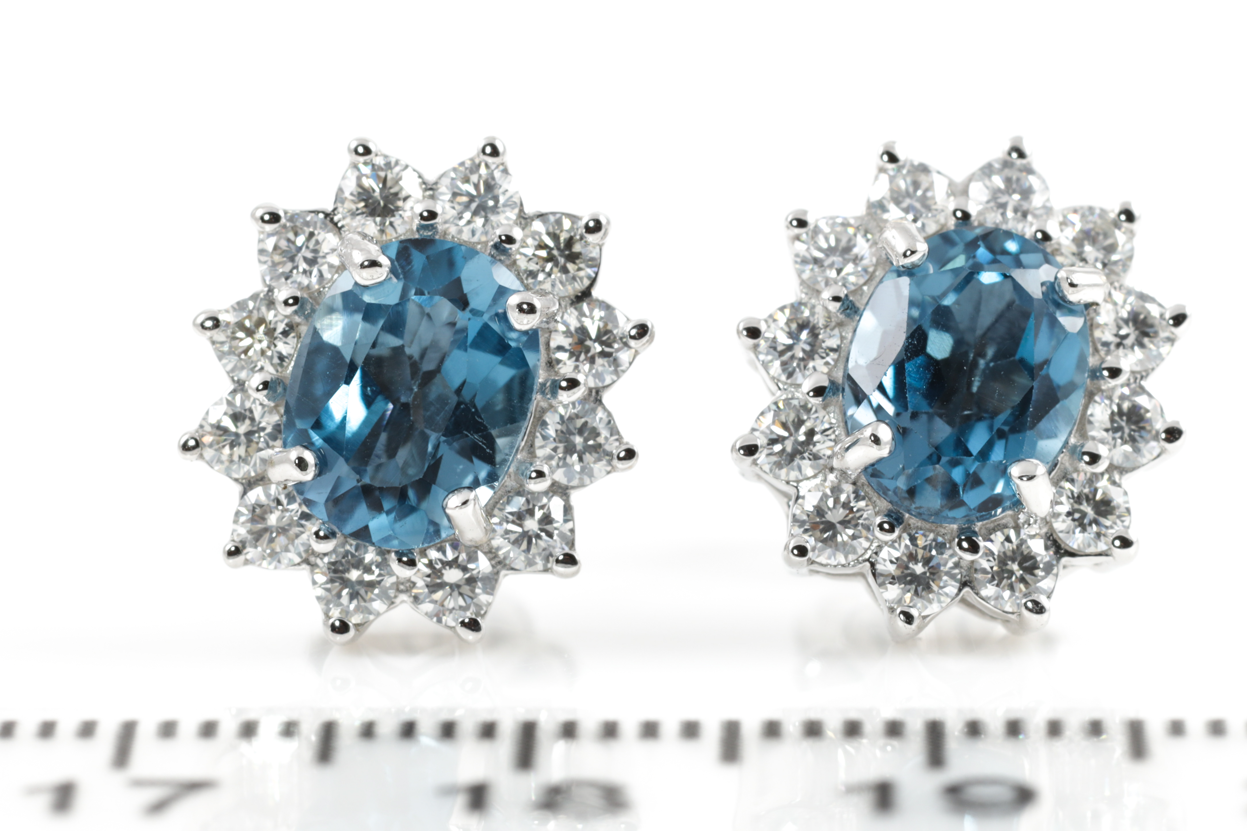 Topaz and Diamond Earrings with oval cut blue Topaz totalling 3.74cts and round cut Diamonds totalling 0.94cts (Estimated grading: H SI). 18ct white gold. Weight 6.1g. (Pre-owned)