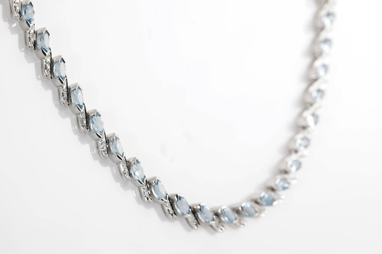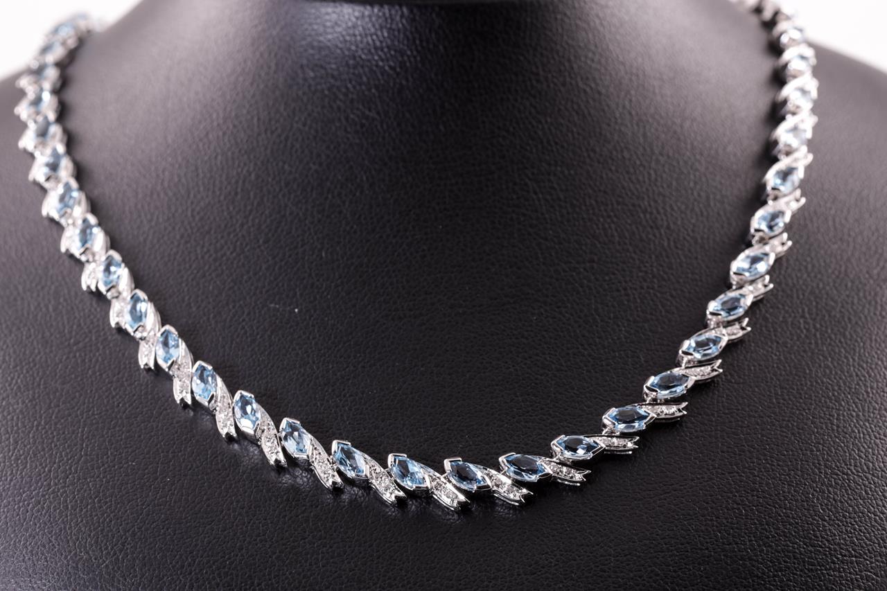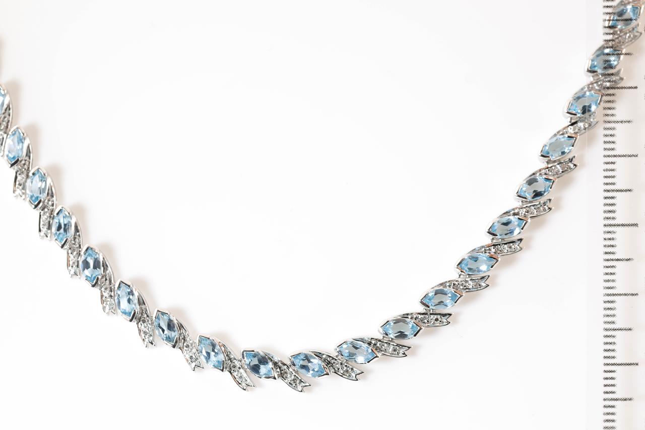 Topaz and Diamond necklace with marquise cut Topaz totalling 13.50cts and Diamonds totalling 0.70cts (Estimated grading: G-H SI). 18ct white gold. Length: 43cm. Weight: 24.7g. With certificate #414818. (Pre-owned)