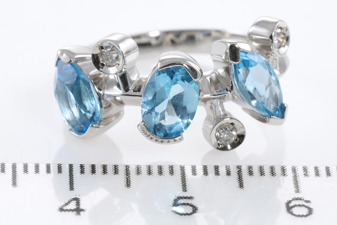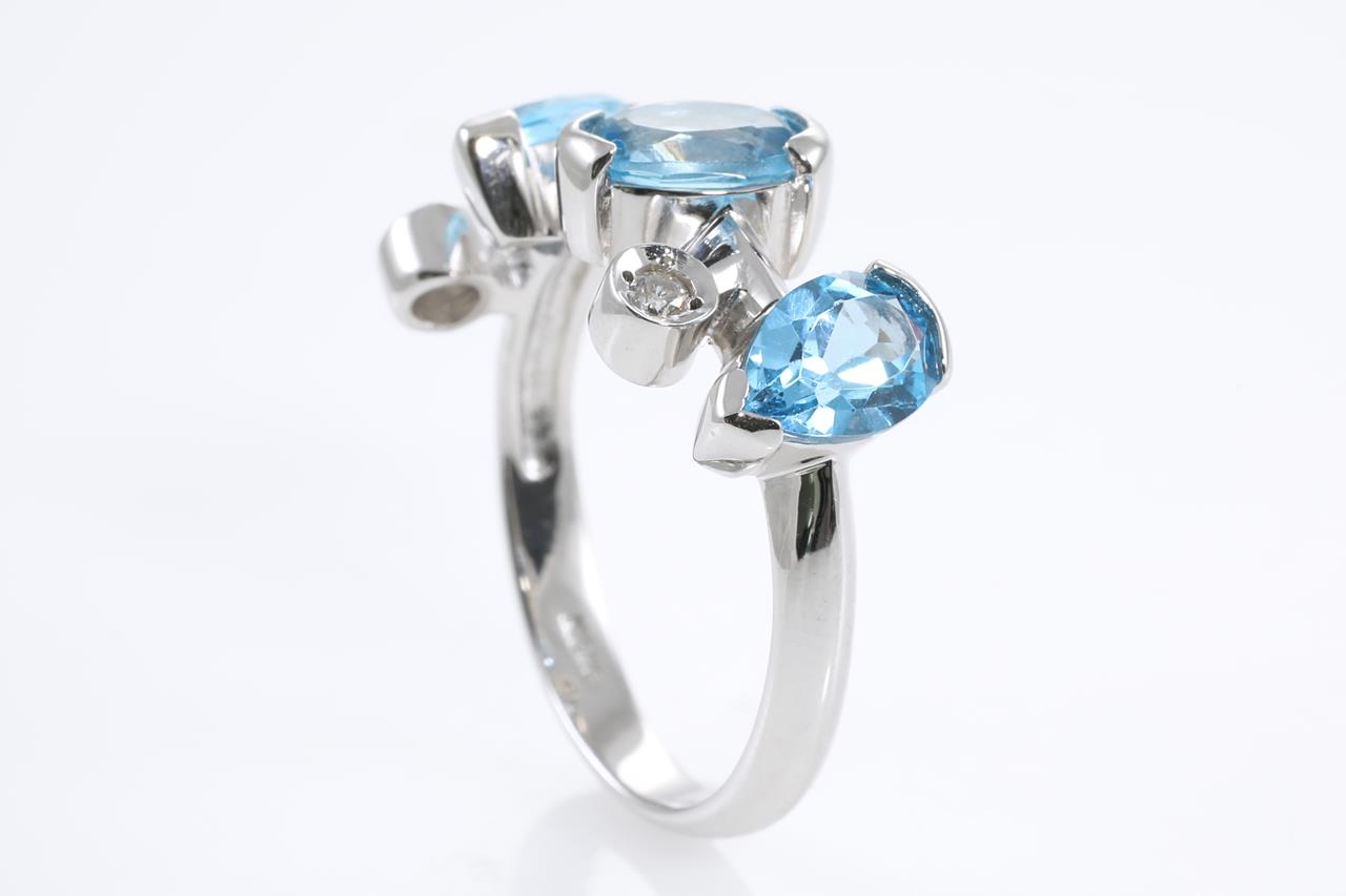 Topaz and Diamond ring with a pear, oval and marquise cut Topaz and Diamonds totalling 0.10cts. 18ct white gold. Weight: 5.7g. Ring size M 1/2. (Pre-owned)
