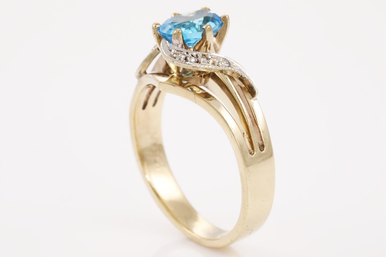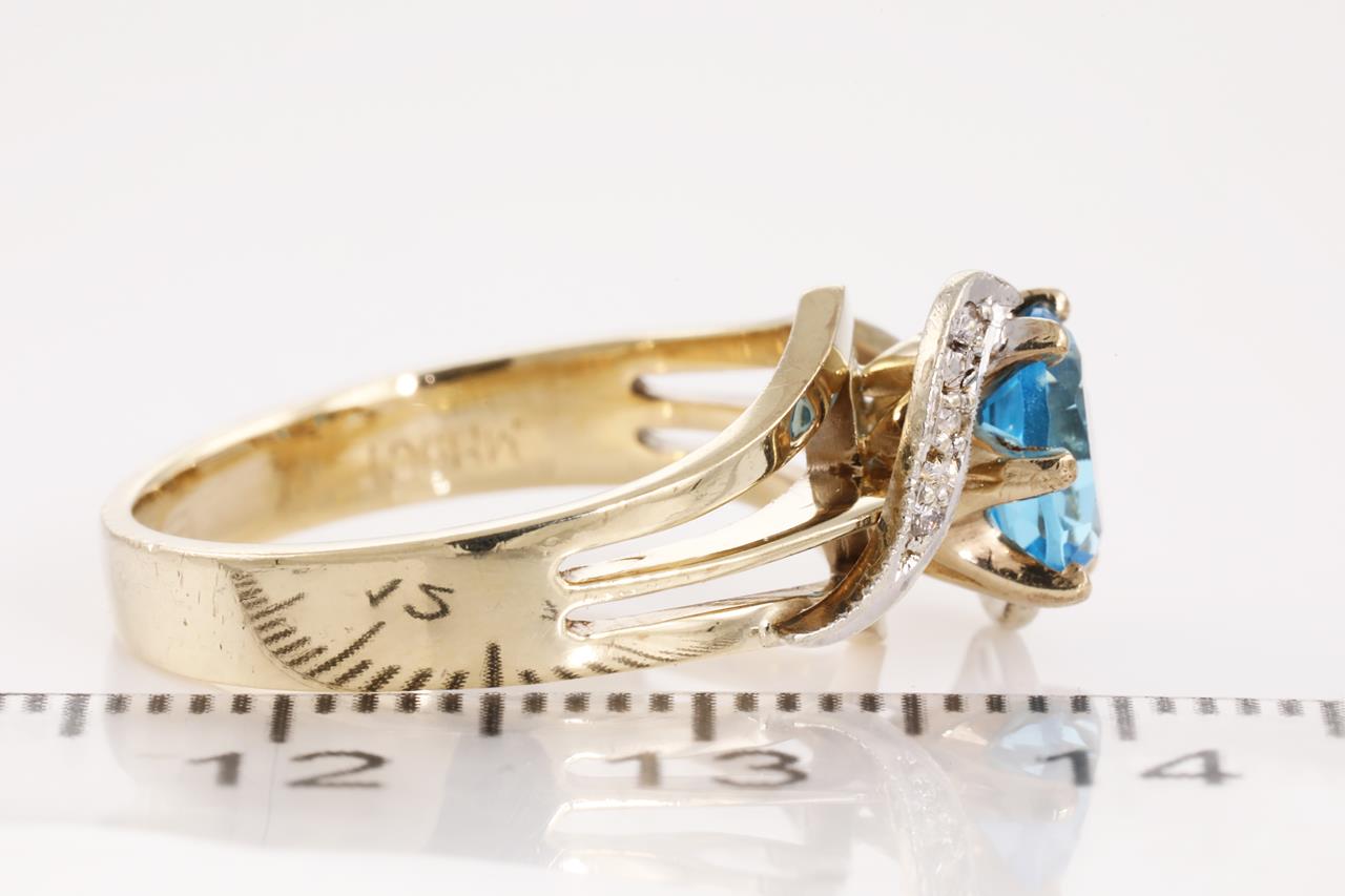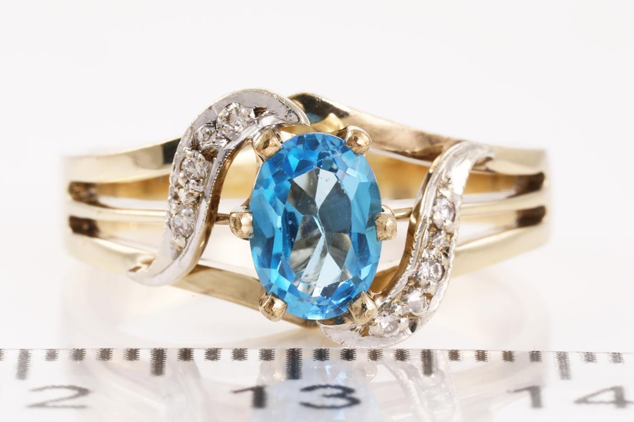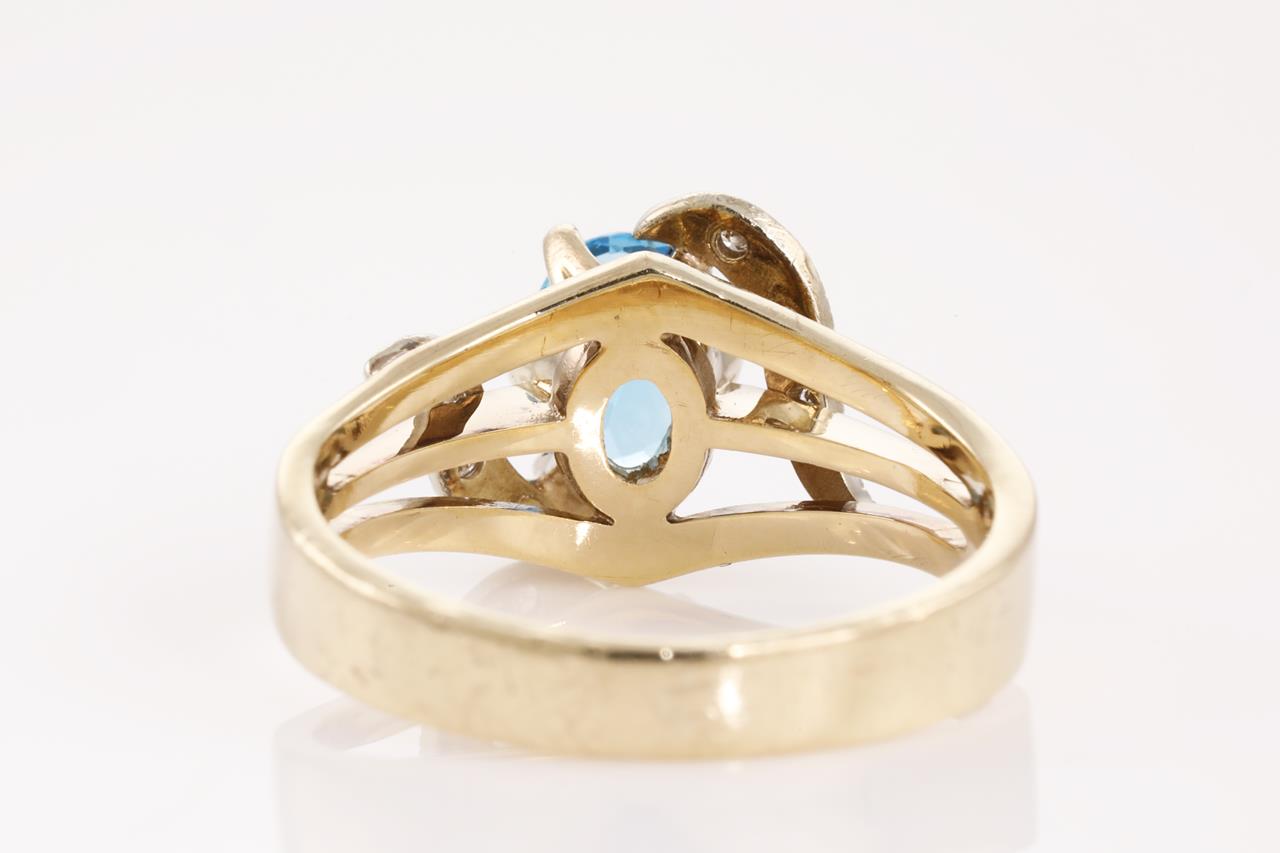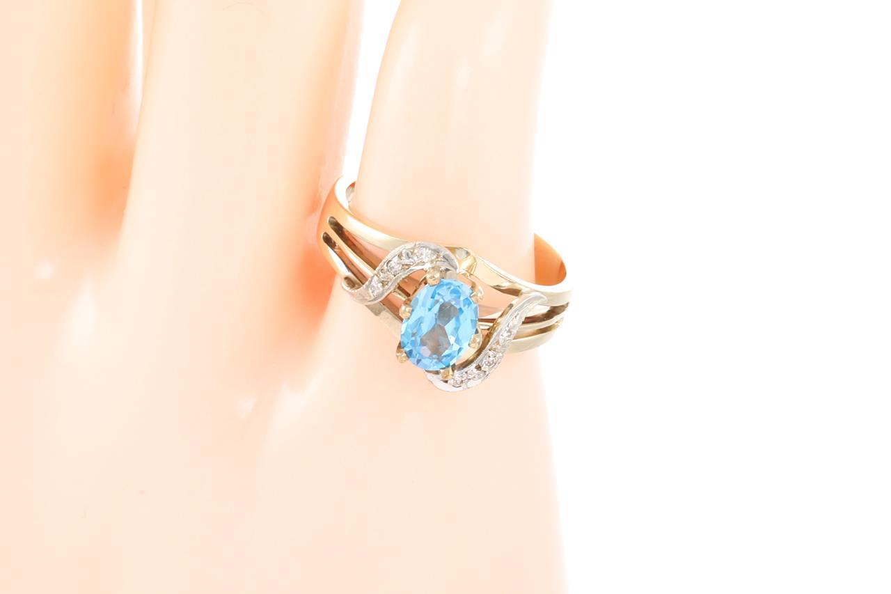 Topaz and Diamond Ring with centre oval blue Topaz of approximately 1.07cts and round Diamonds totalling approximately 0.06cts. 9ct yellow gold. Ring Size L1/2. Weight 3.7g. (Pre-owned)