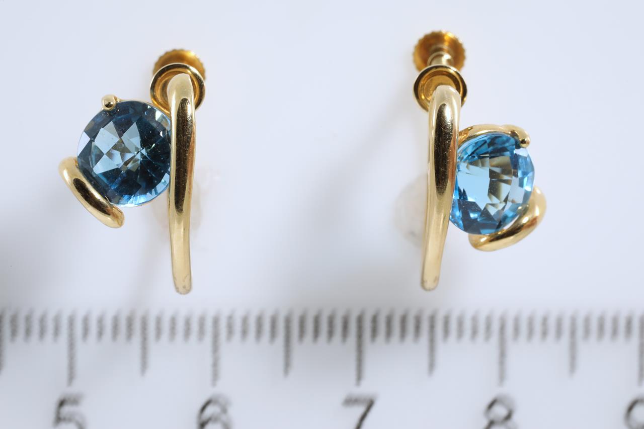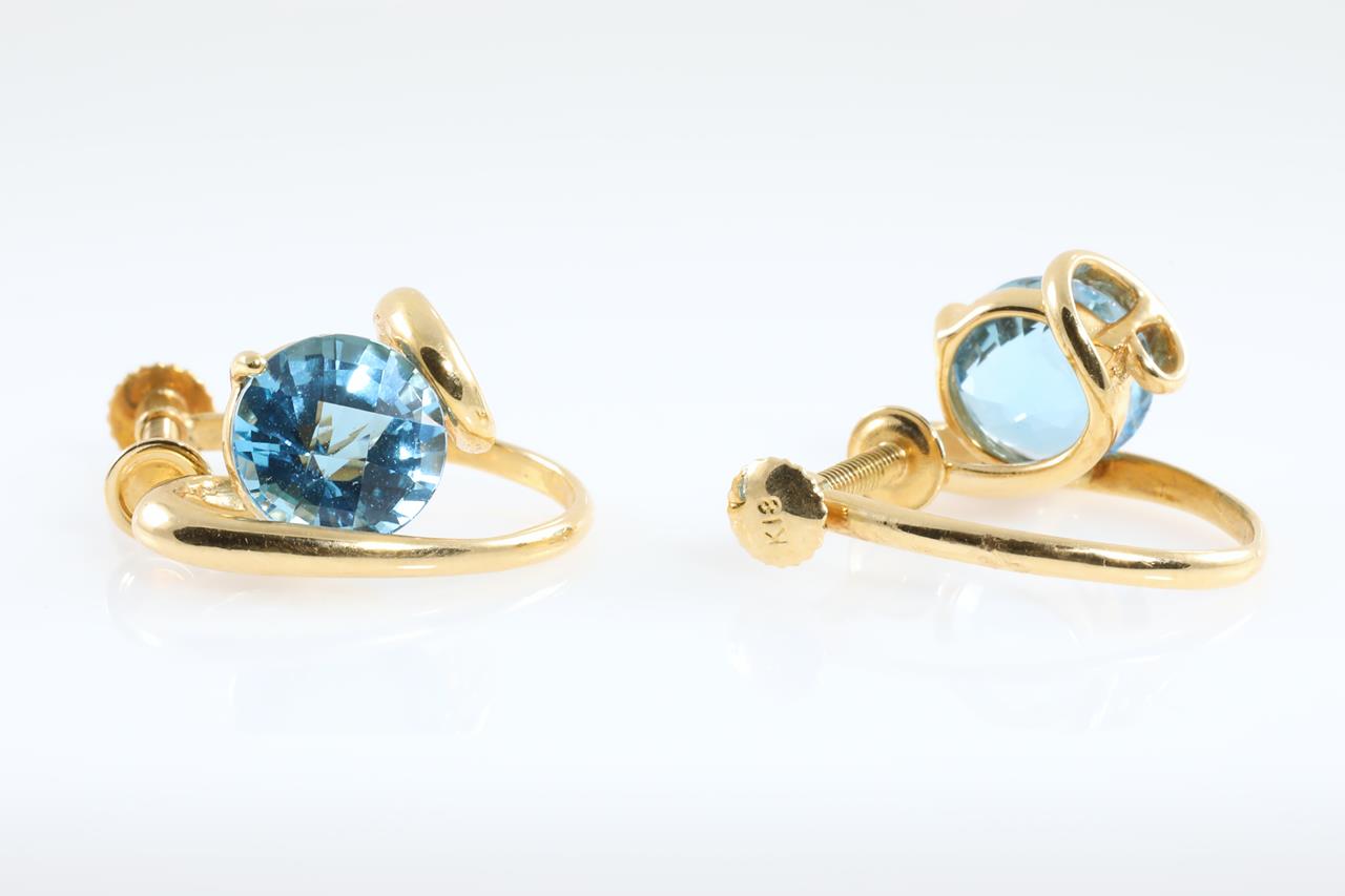 Topaz screwback earrings with round checkerboard cut Topaz totalling approximately 3.00cts. 18ct yellow gold. (Pre-owned)