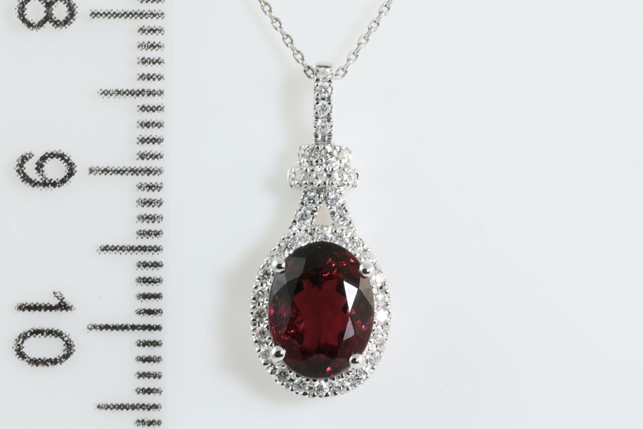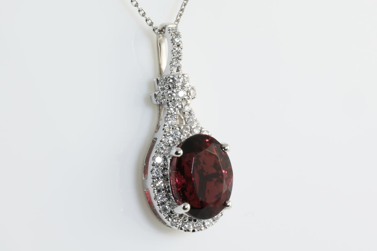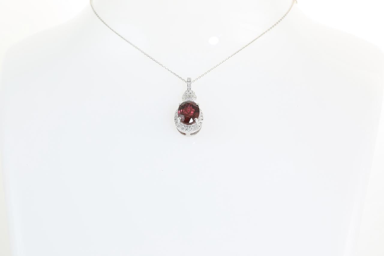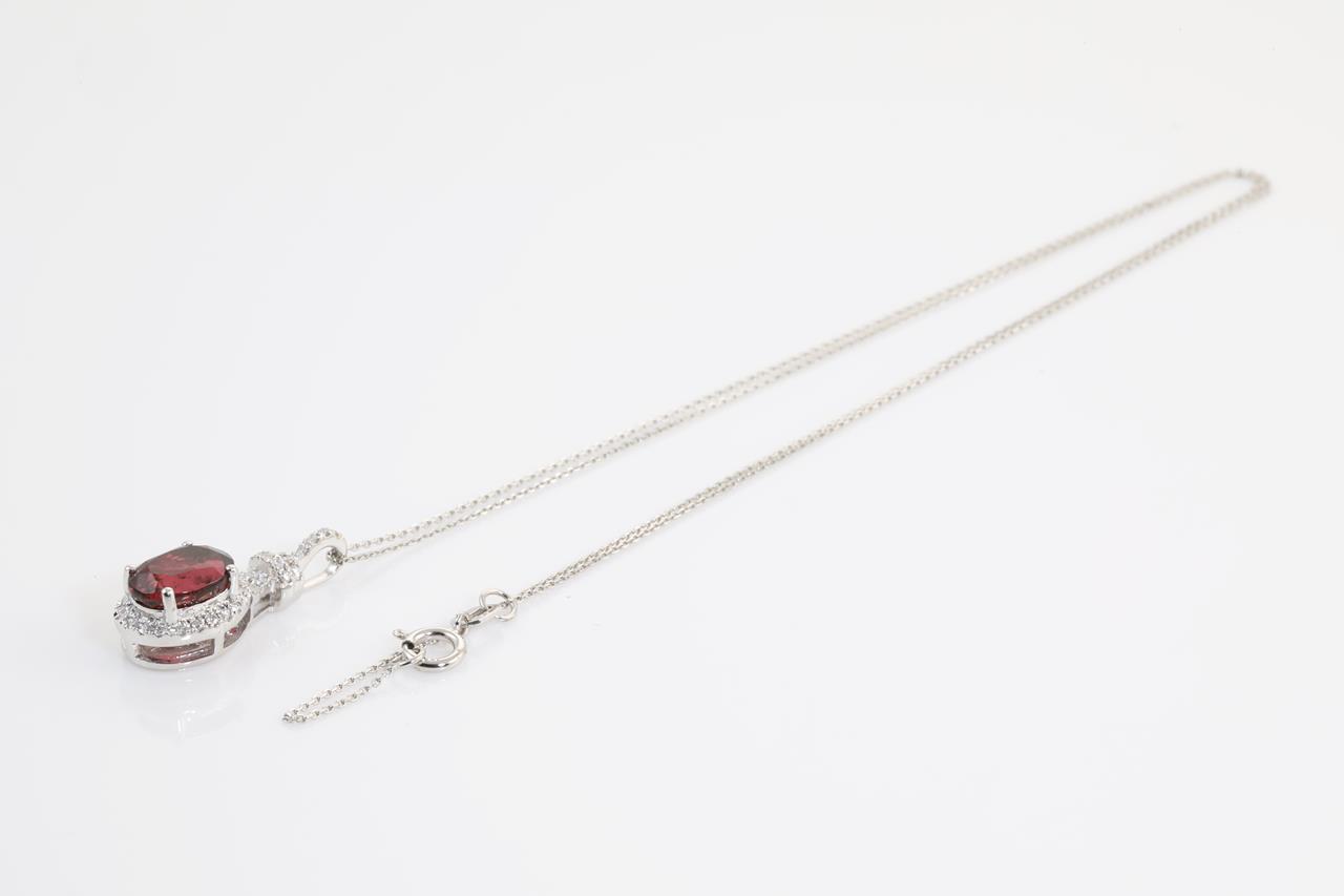 Tourmaline and Diamond pendant with oval shape Tourmaline of 2.04cts and round Diamonds totalling 0.16cts. 14ct white gold with 14ct gold, 45cm chain. Weight: 2.9g (New).