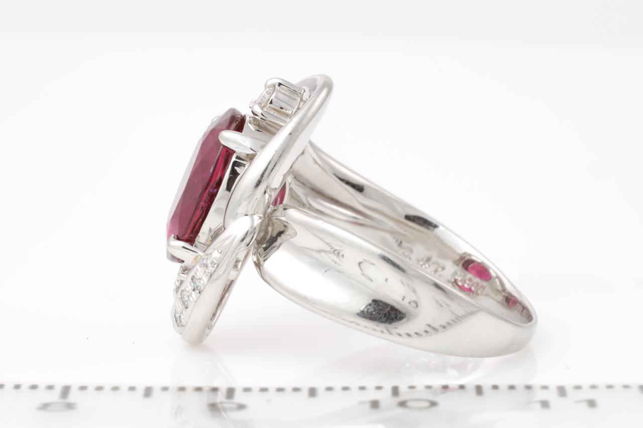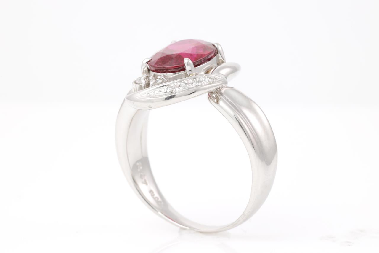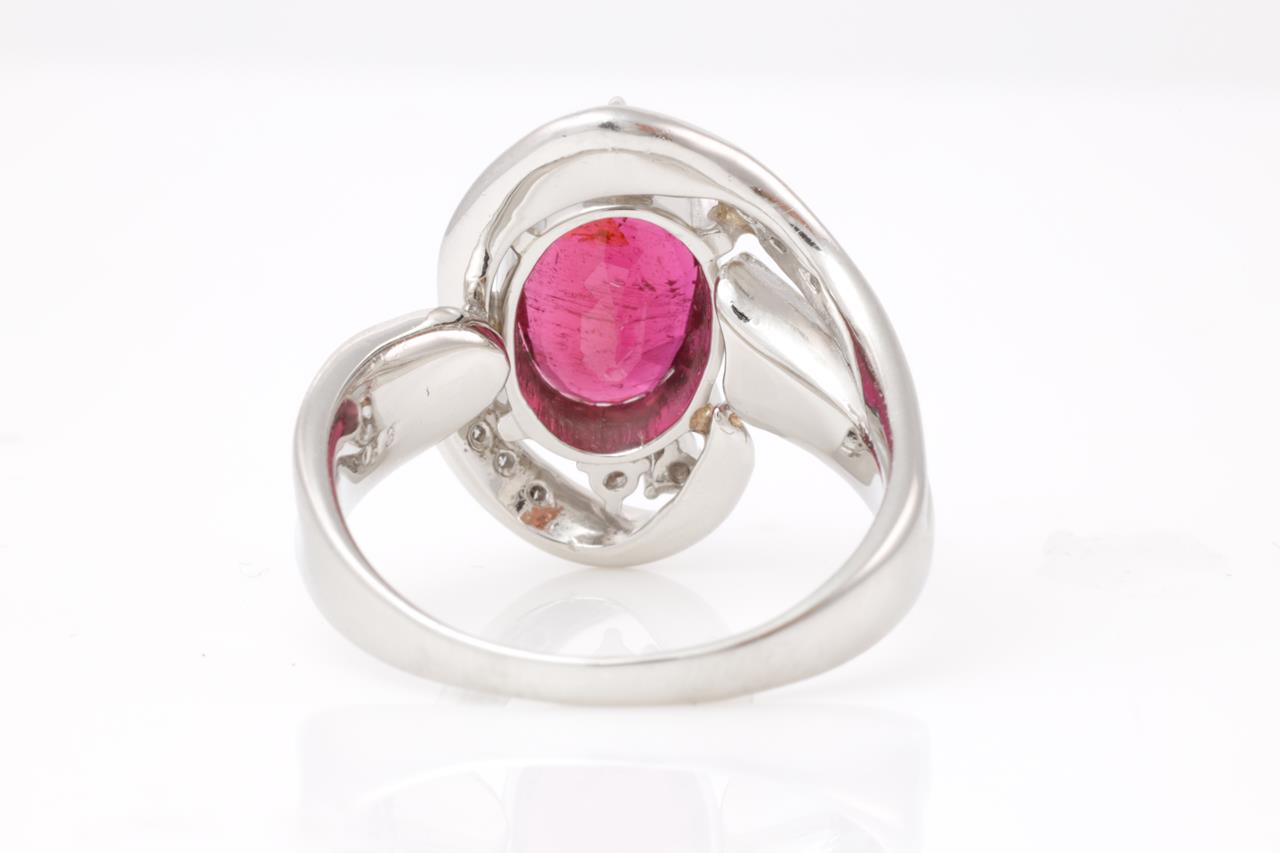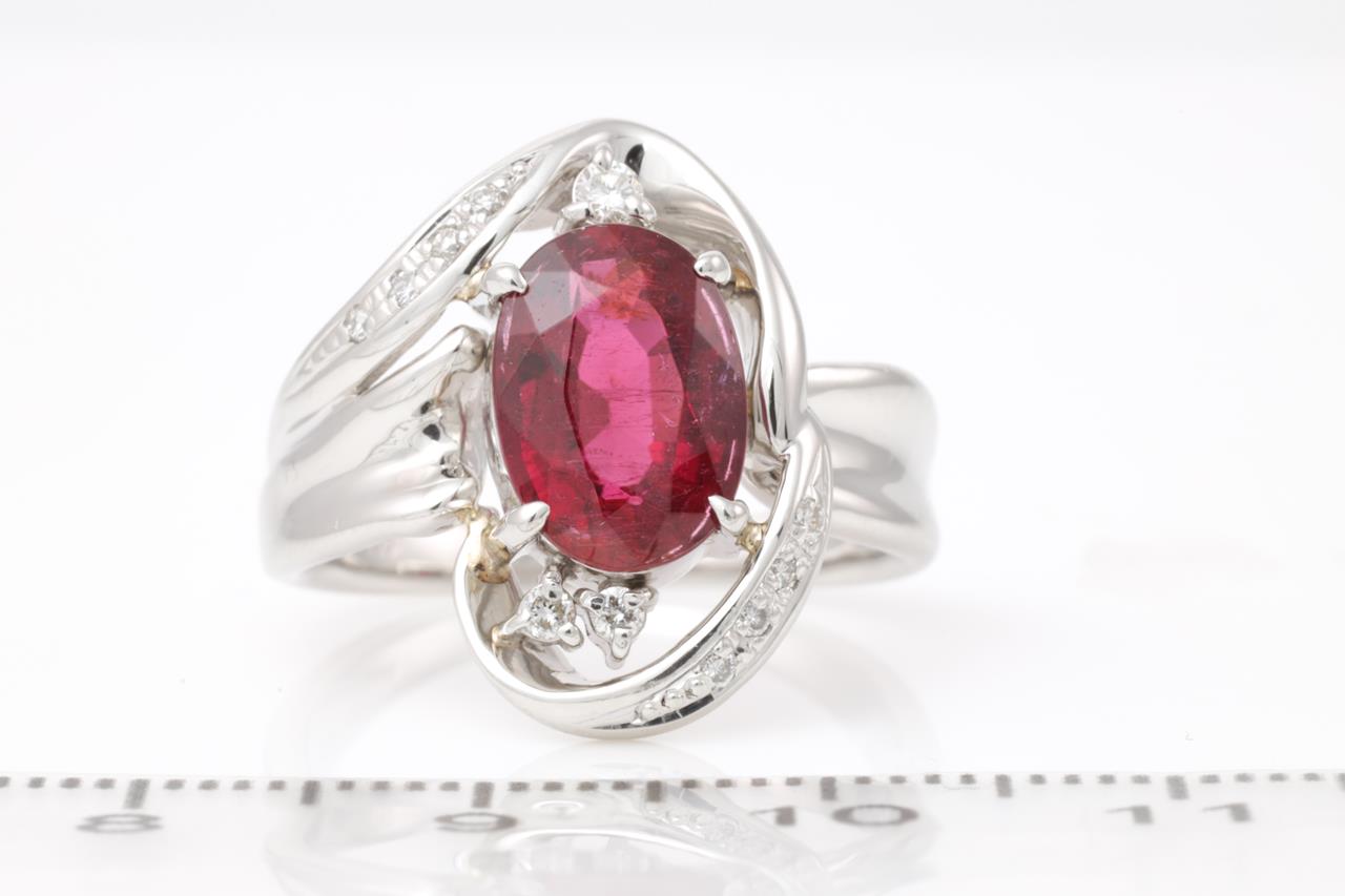 Tourmaline and Diamond Ring with centre oval pink Tourmaline of approximately 2.47ct and round Diamonds totalling approximately 0.10cts. Platinum. Ring Size N. Weight 10.1g. (Pre-owned)