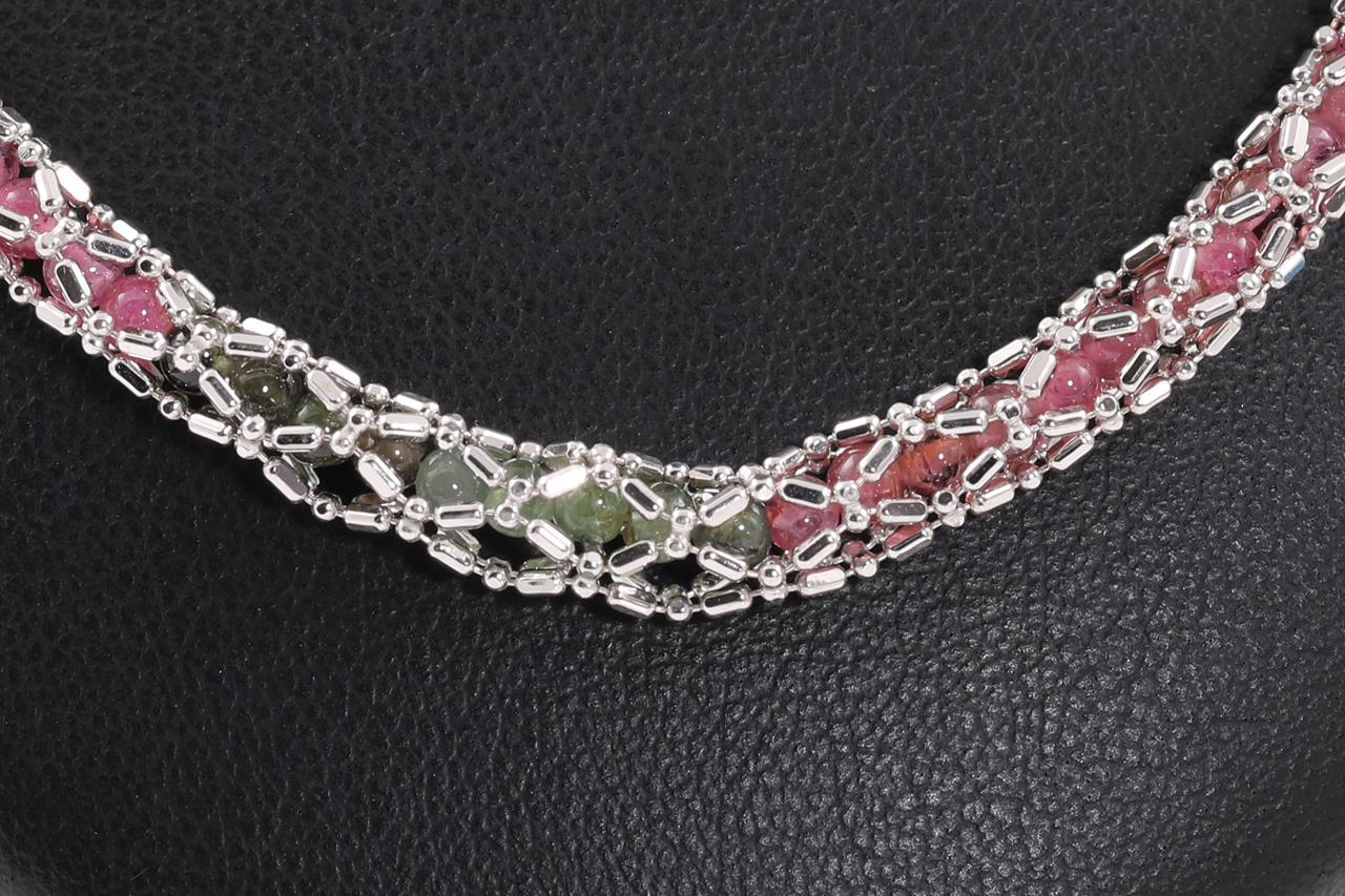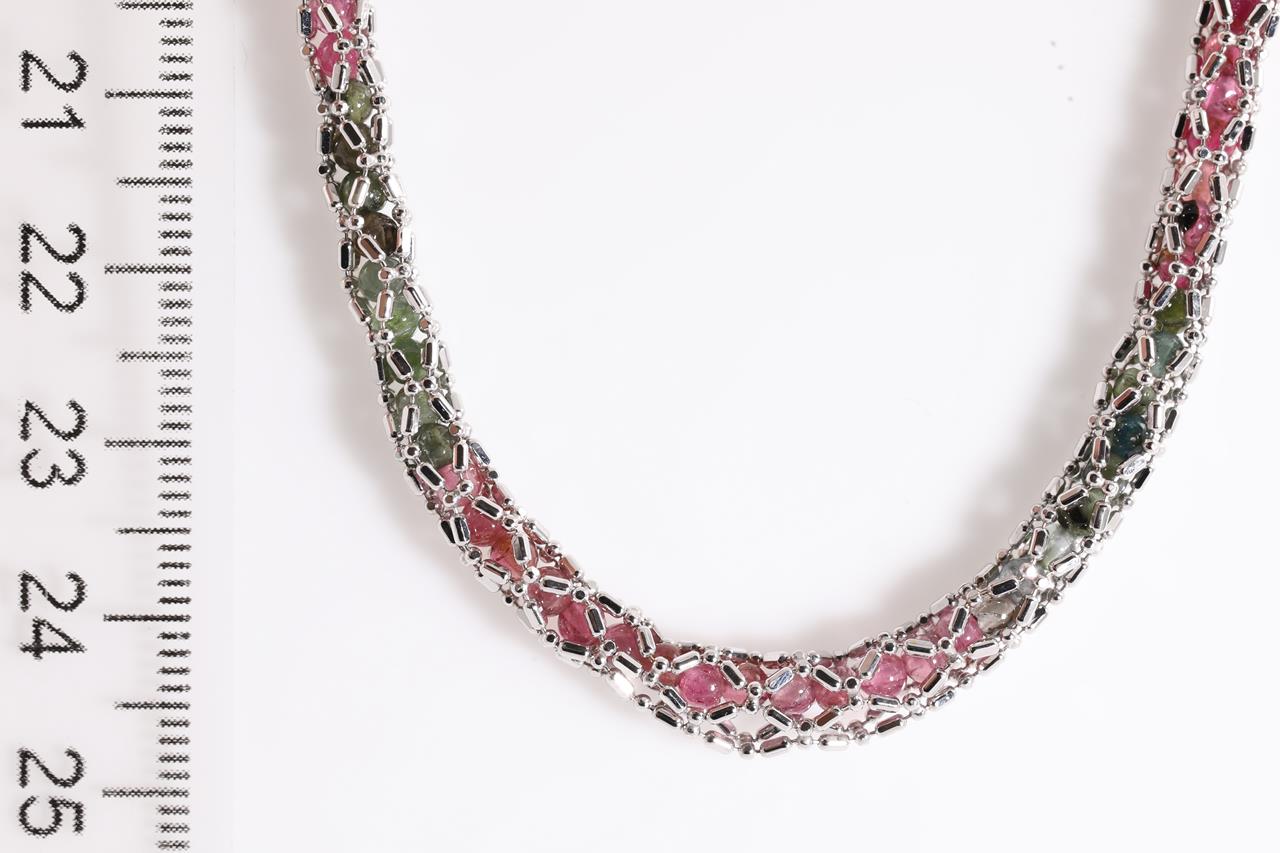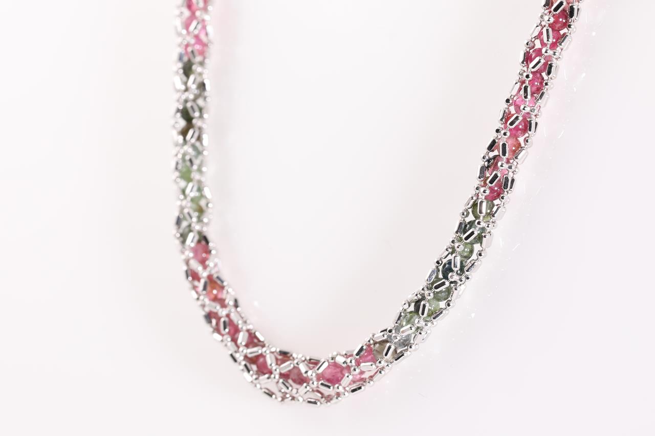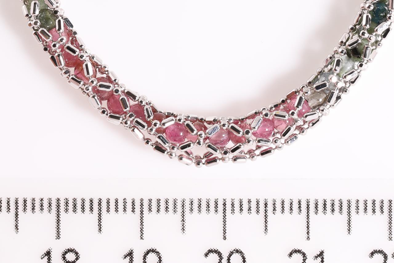Tourmaline necklace with mixed colour Tourmaline beads. 18ct white gold. Length: 40cm. Weight: 17g. (Pre-owned)