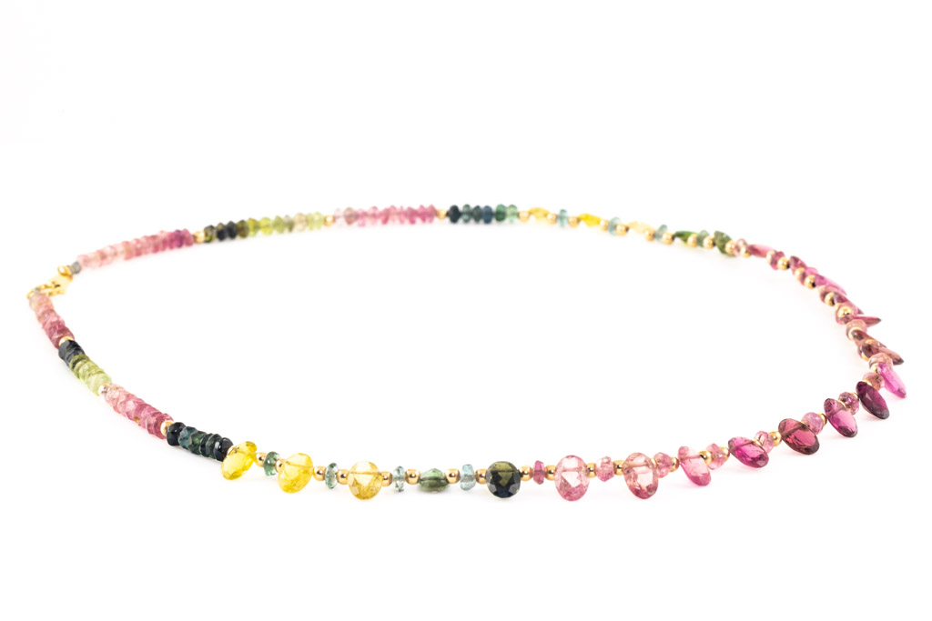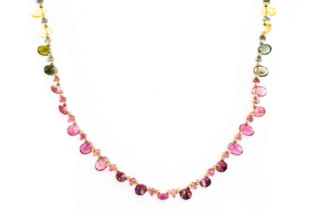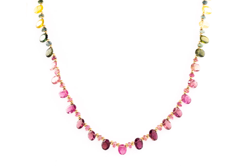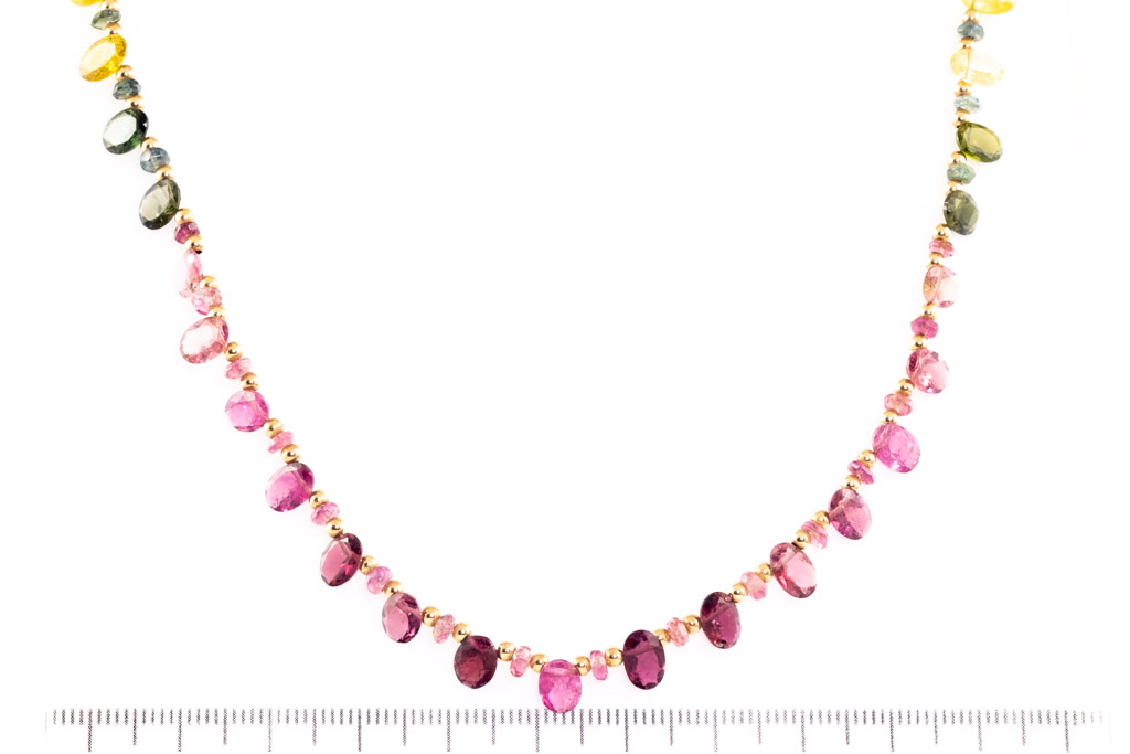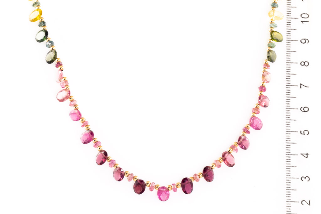 Tourmaline Beaded Necklace. 18ct yellow gold. Length 42cm. Weight: 8.2g. (Pre-owned)