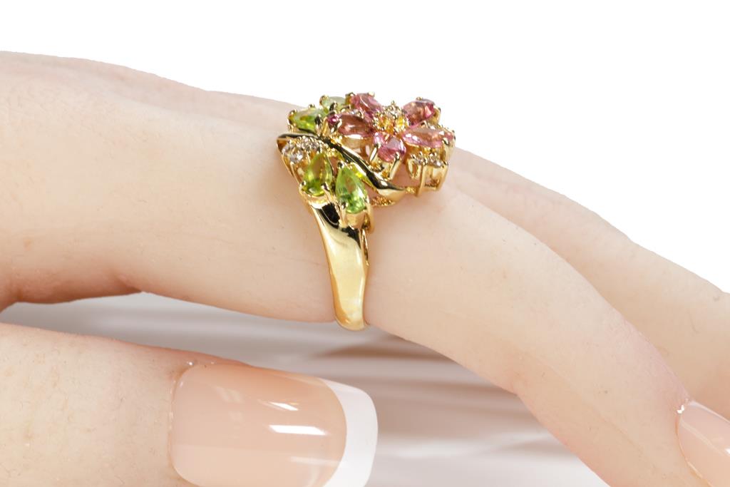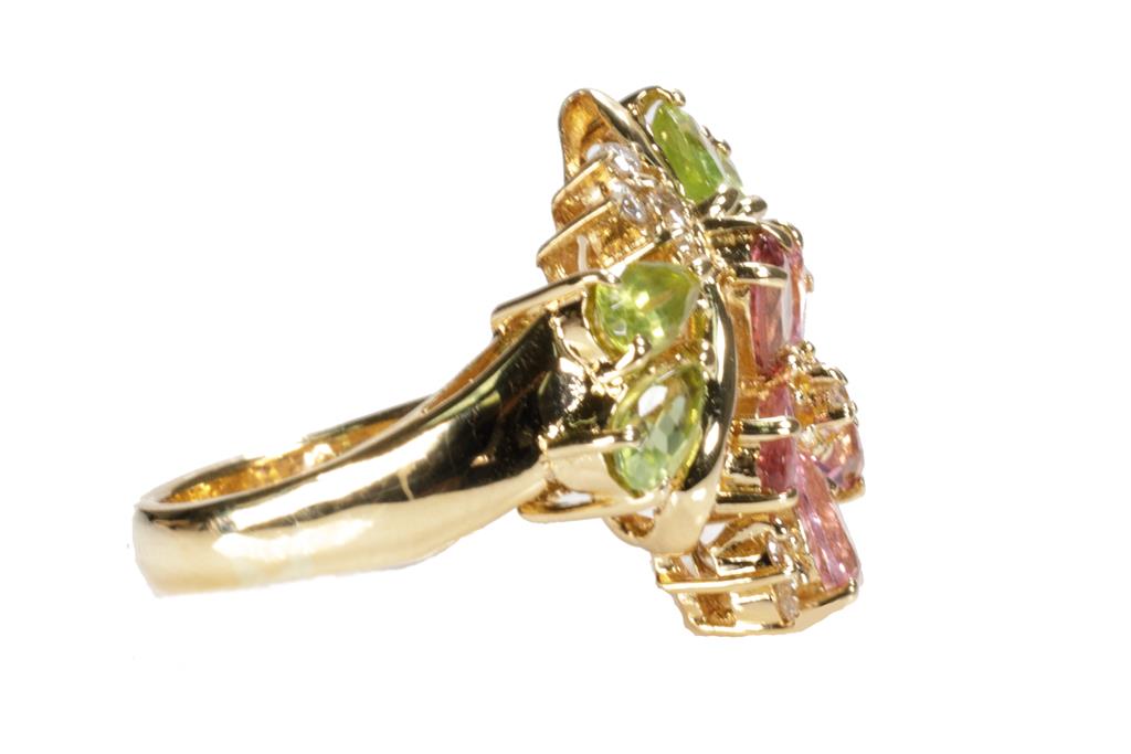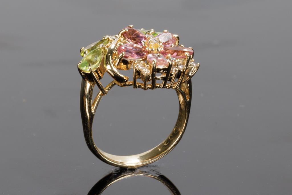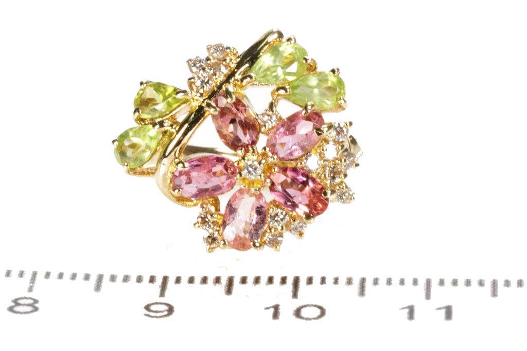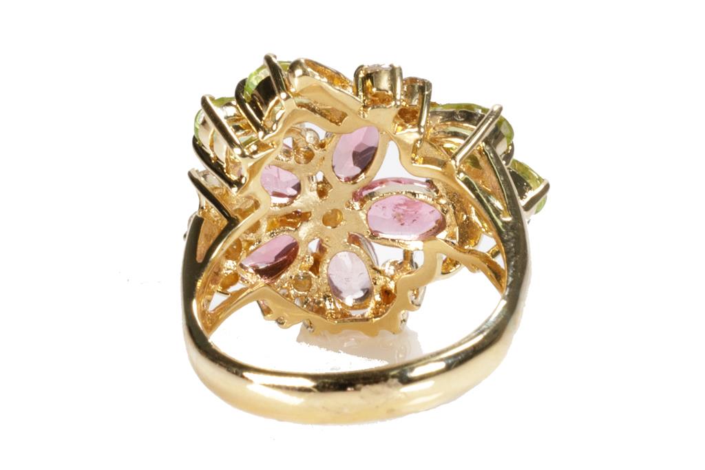 Tourmaline, Peridot and Diamond Ring