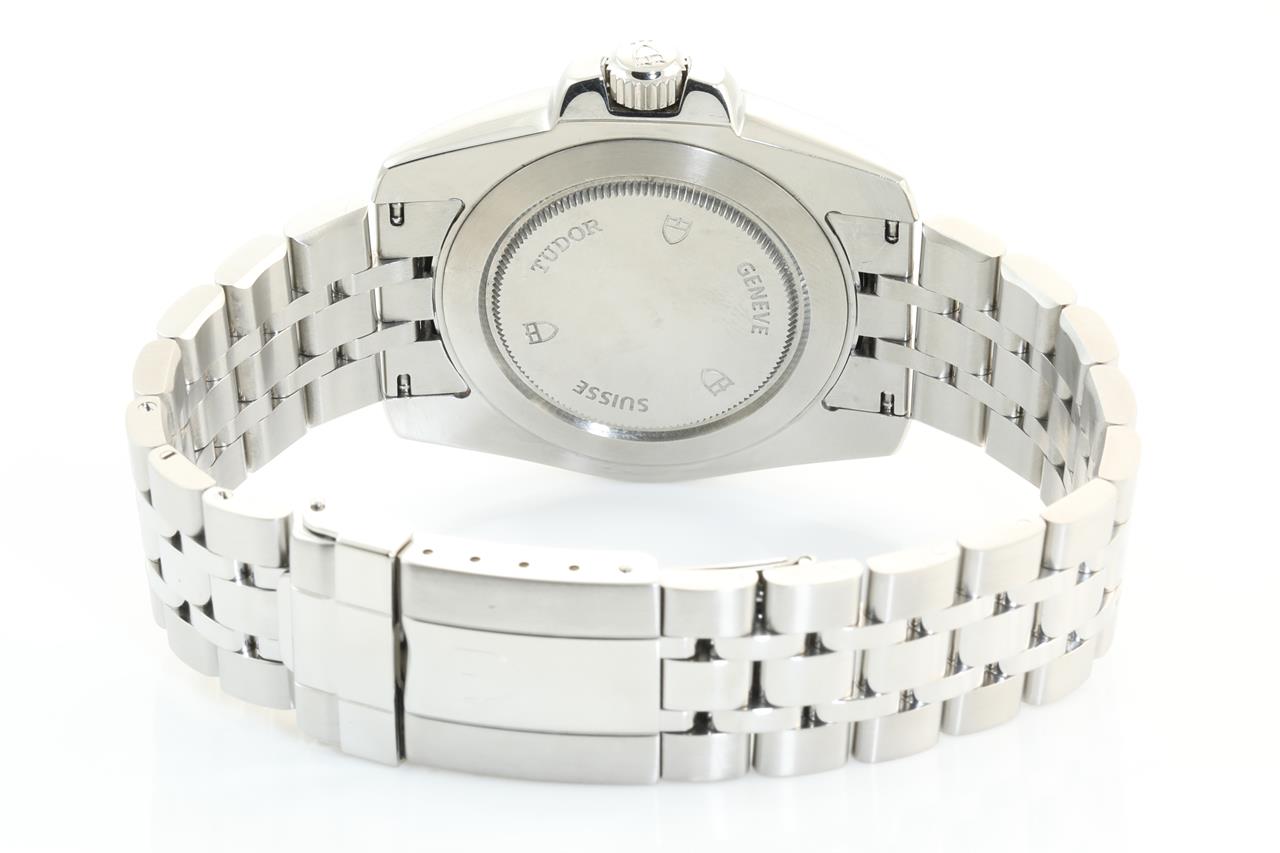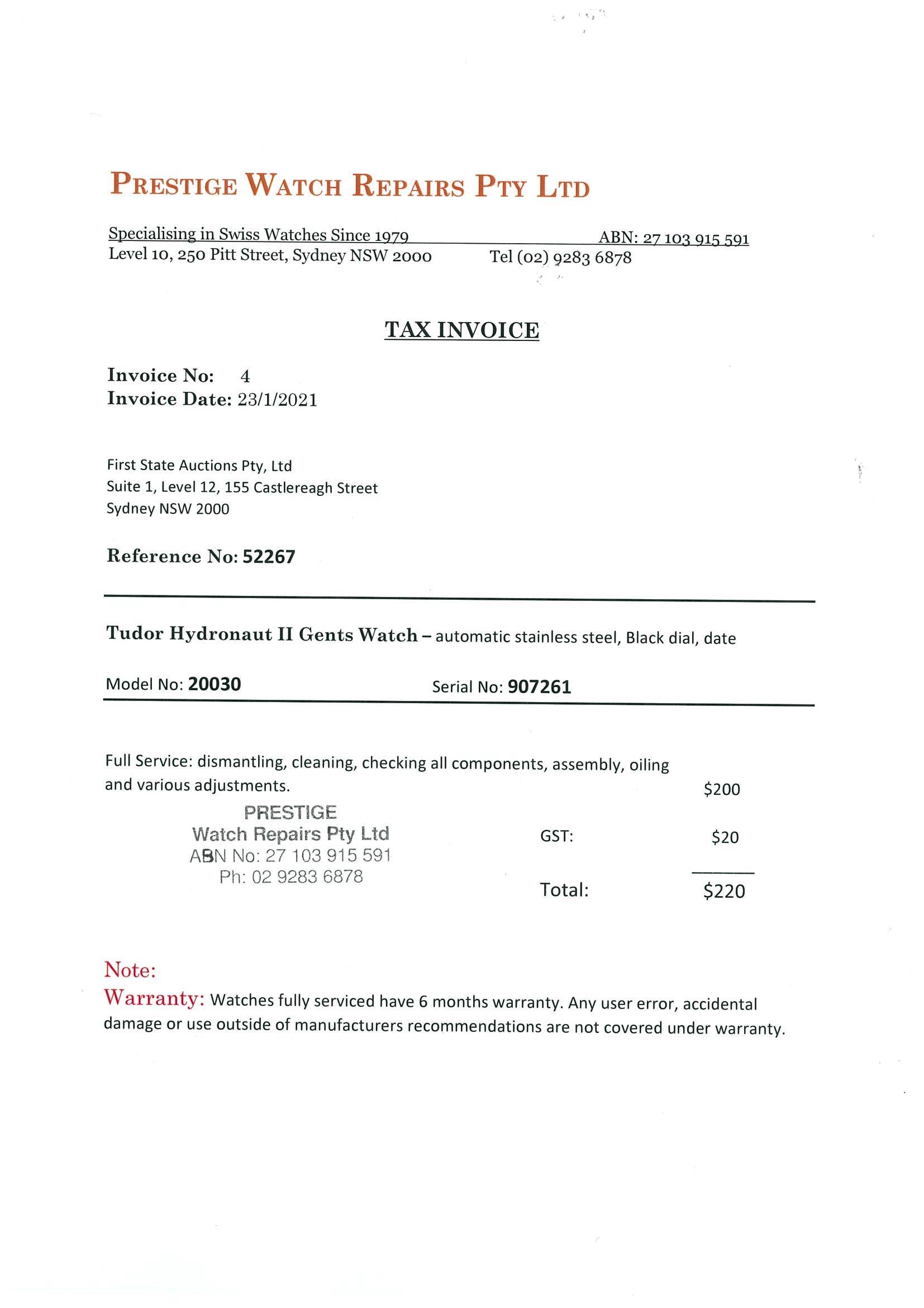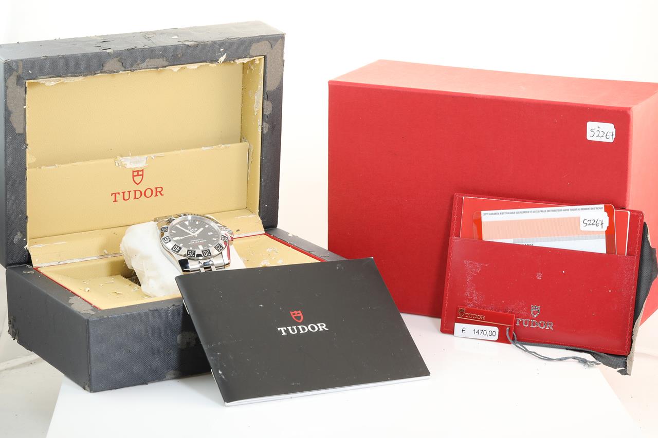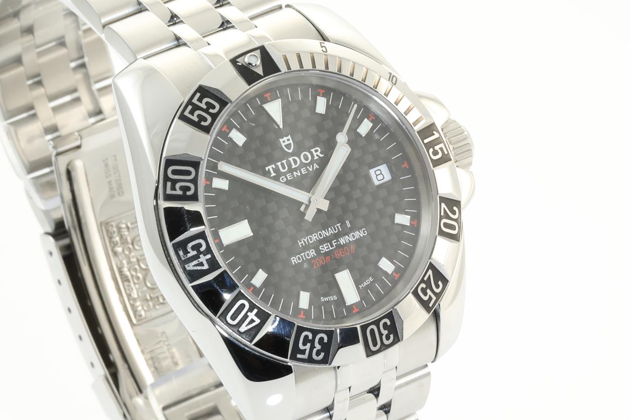 Tudor Hydronaut II stainless steel automatic mens watch. Black dial, date, case diameter 40mm, wrist size 20cm, Swiss made. Ref #20030. With Tudor stainless steel bracelet and clasp. With Certificate of Authenticity. Tudor guarantee card dated 14/07/2010 inside worn box. With 6 month Prestige watchmaker warranty from the date of full service. (Pre-owned)
