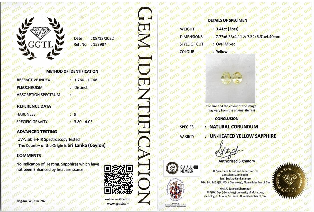 Two Loose unheated ceylon Sapphires totalling approximately 3.41cts. With gem report. (As New)