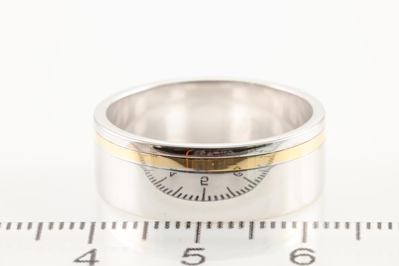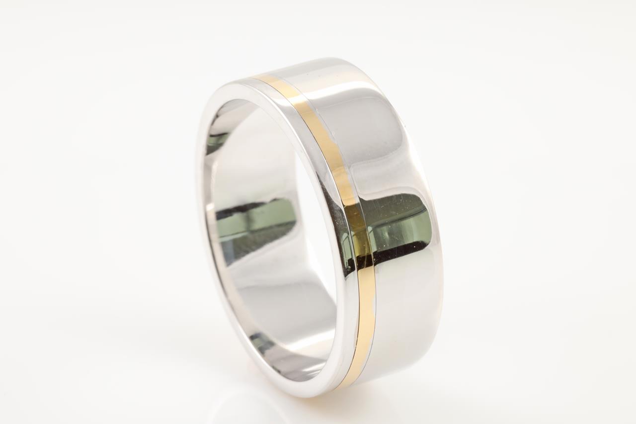 18ct yellow and white gold men's band. With copy of valuation dated 14/08/2008. Ring size U1/2. Weight: 12.2g. (Pre-owned)