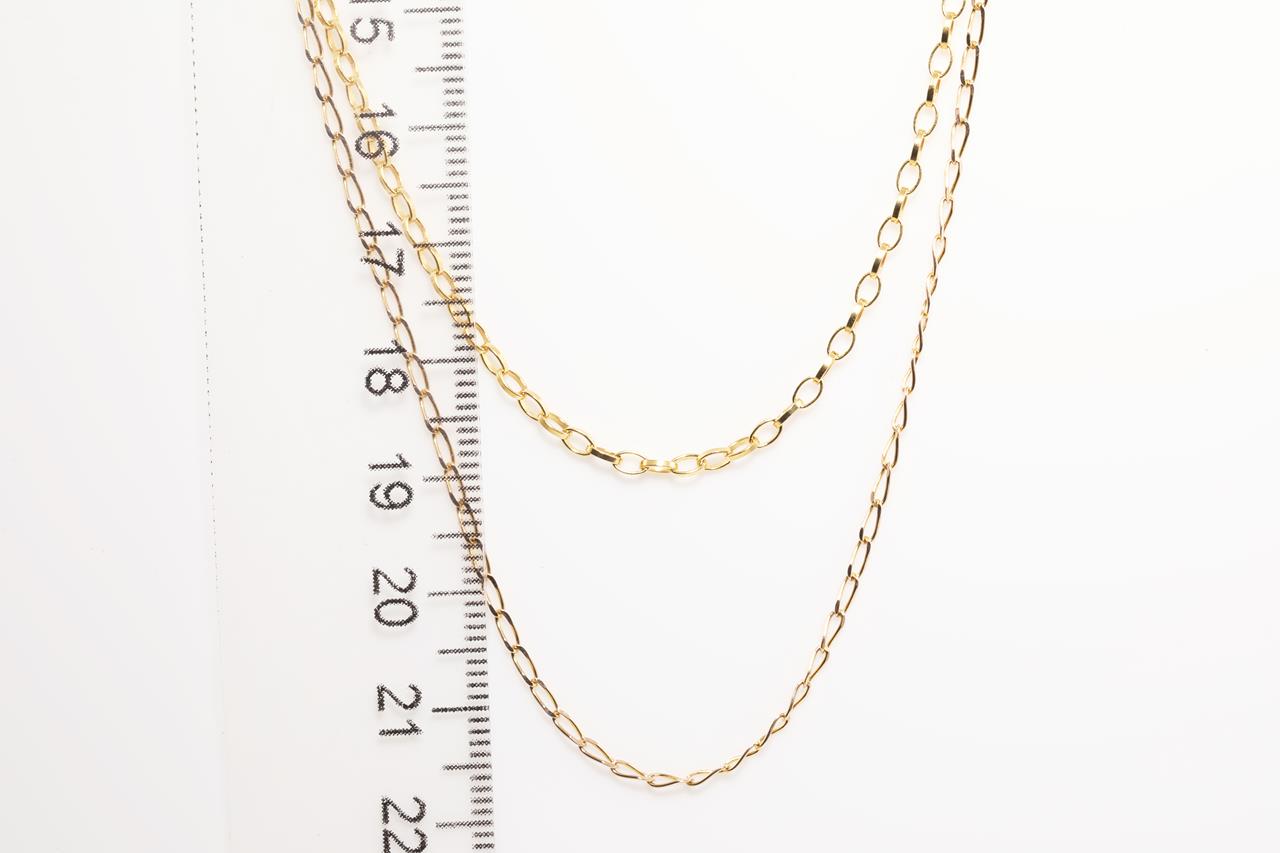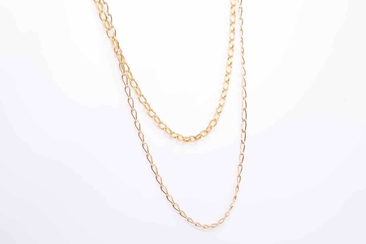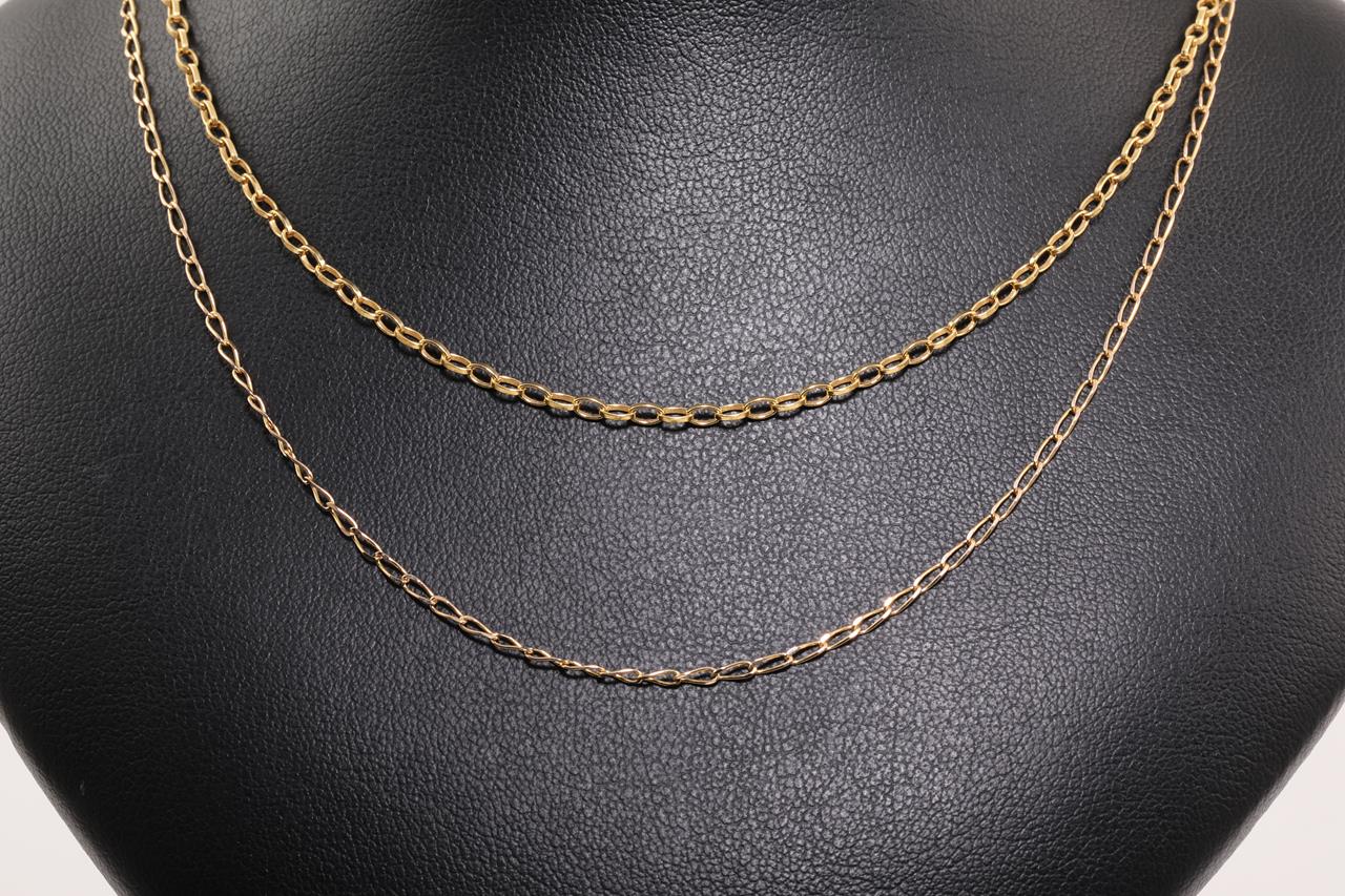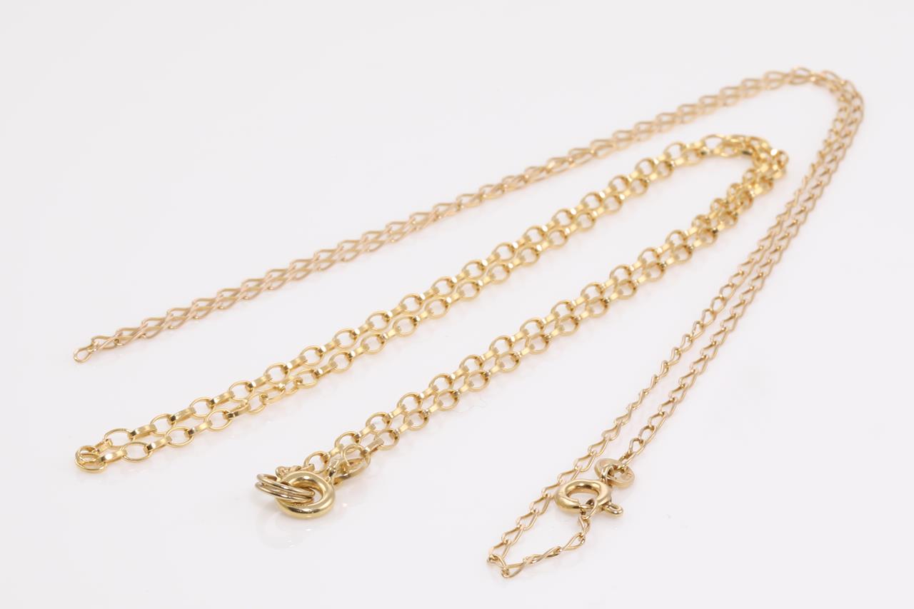 Two yellow gold chains totalling 4.7g. 9ct & 10ct gold. Length: 44cm & 41cm respectively (1.7g and 3g respectively). (As new)