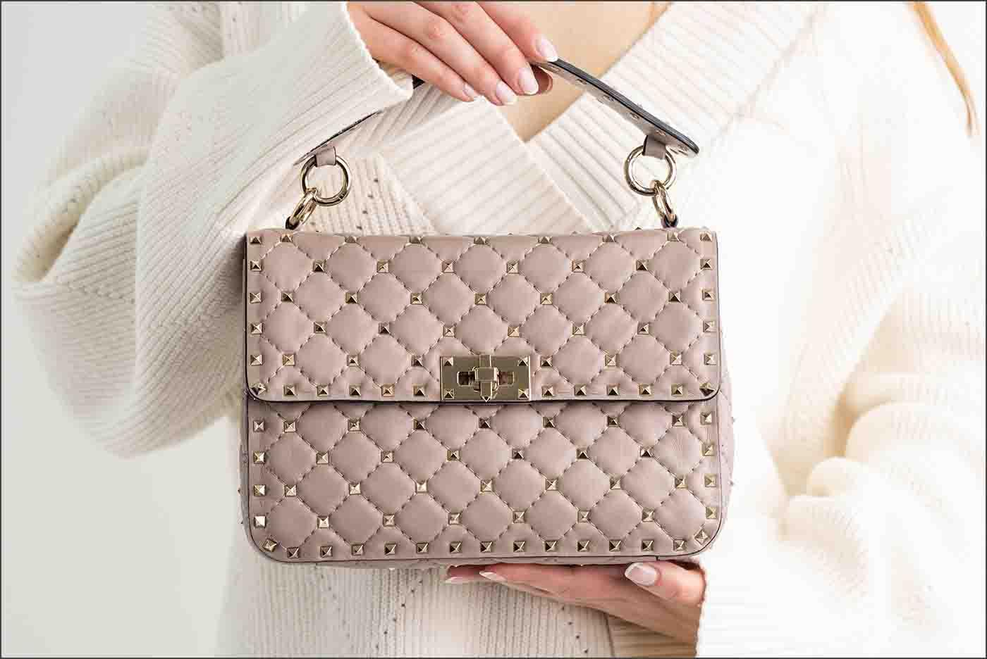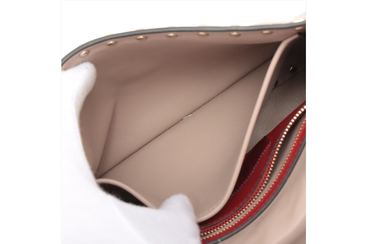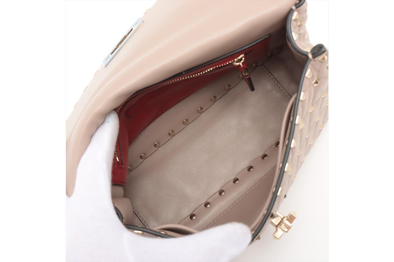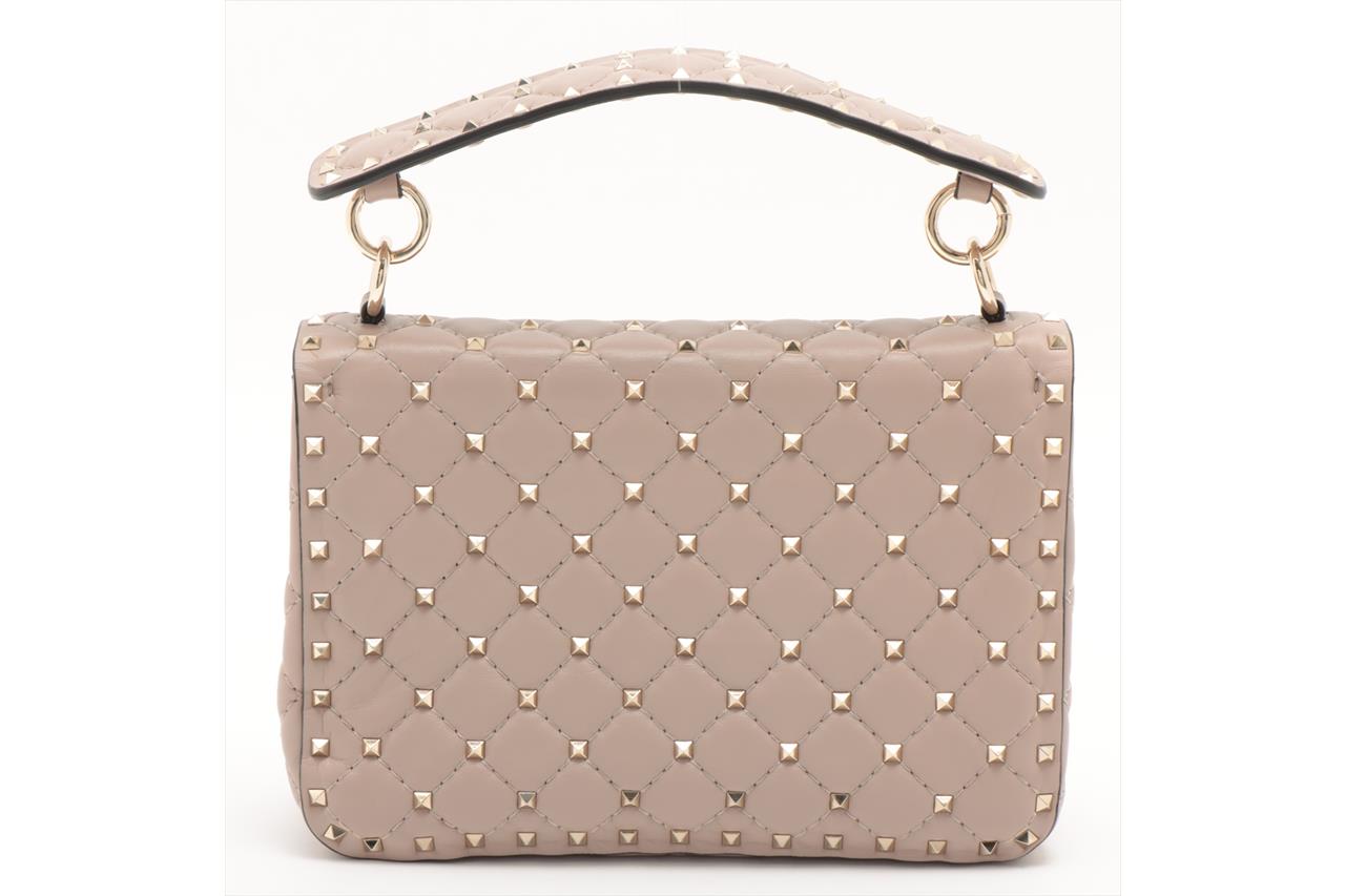 Valentino Garavani medium Rockstud Spike bag in poudre colour quilted nappa lambskin leather. Featuring small studs embellished, a detachable handle, gold-toned hardware, frontal flap with twist-lock closure. The flap opens to a nappa leather lined interior with a red leather zip pocket. Approximate dimensions: 23cm(L) x 16cm(H) x 6.5cm(D), 67cm detachable chain drop height. Accompanied by spare studs and cards. With Entrupy Certificate of Authenticity. (Pre-owned)