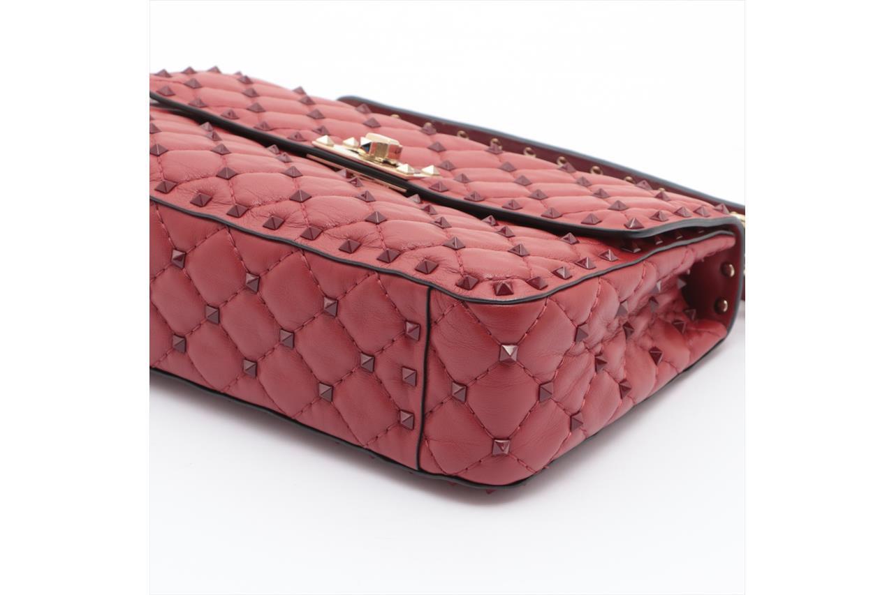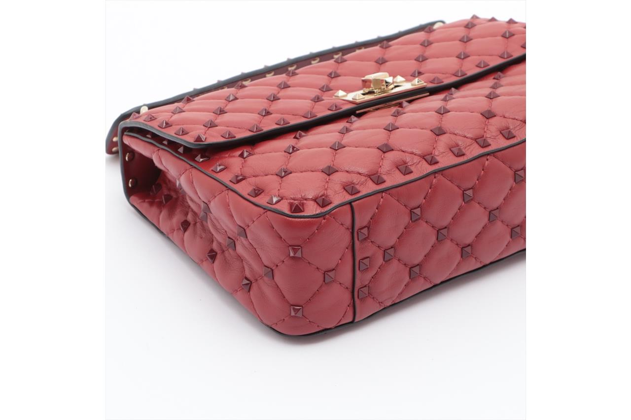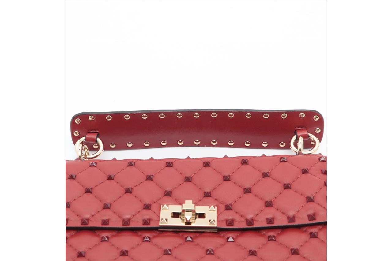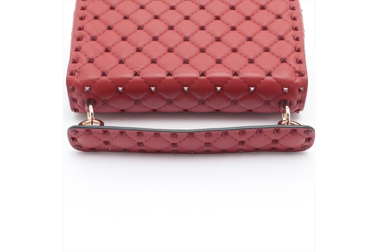 Valentino Garavani Rockstud Spike Bag in Red Nappa Leather. Approximate dimensions: 23cm (L) x 15.5cm (H) 6.5cm (D), 9.5cm handle height, and 55cm chain drop. With Entrupy Certificate of Authenticity. Accompanied by Valentino papers, detachable chain and dust bag. (Pre-owned)