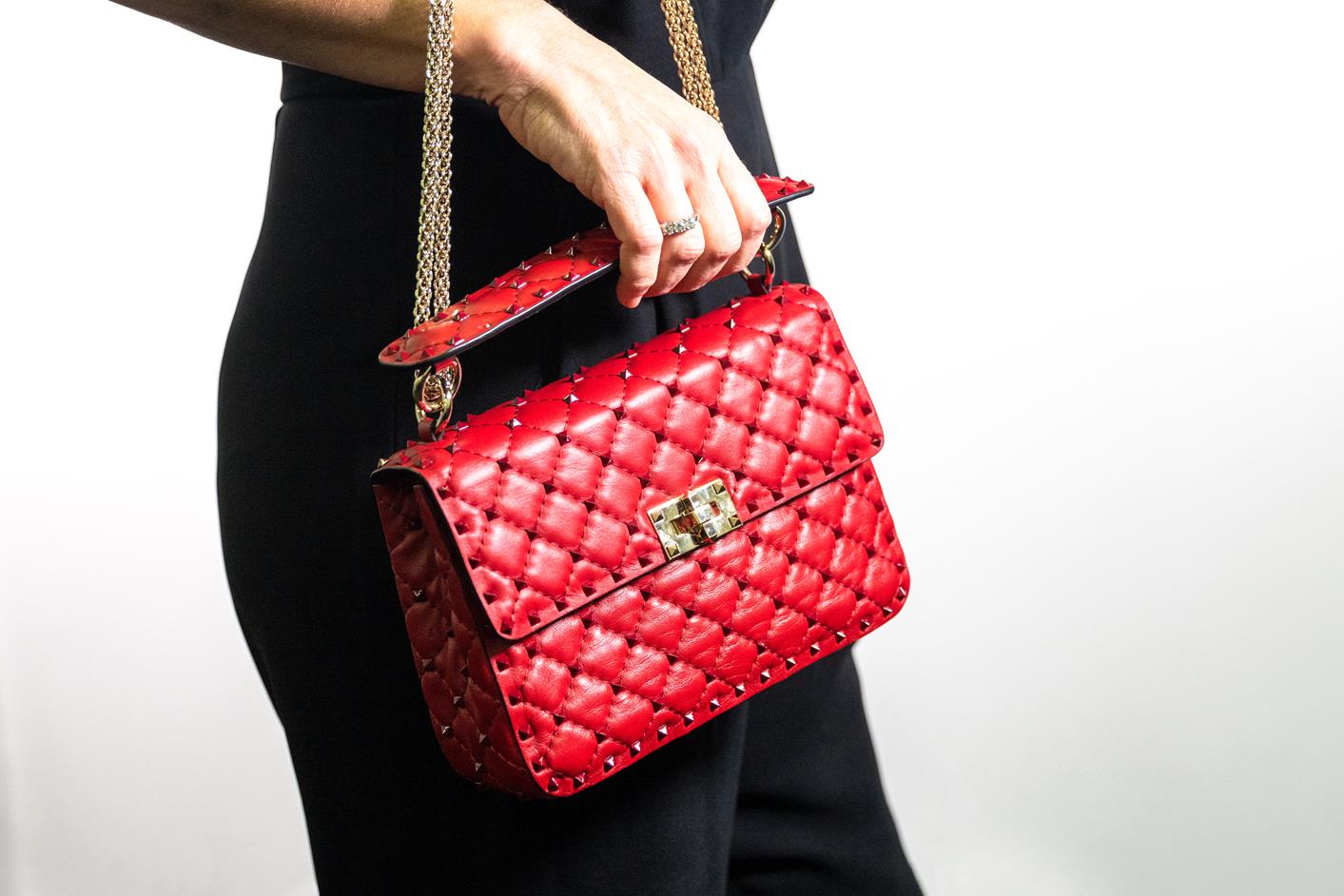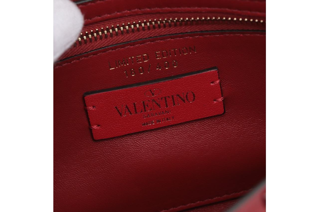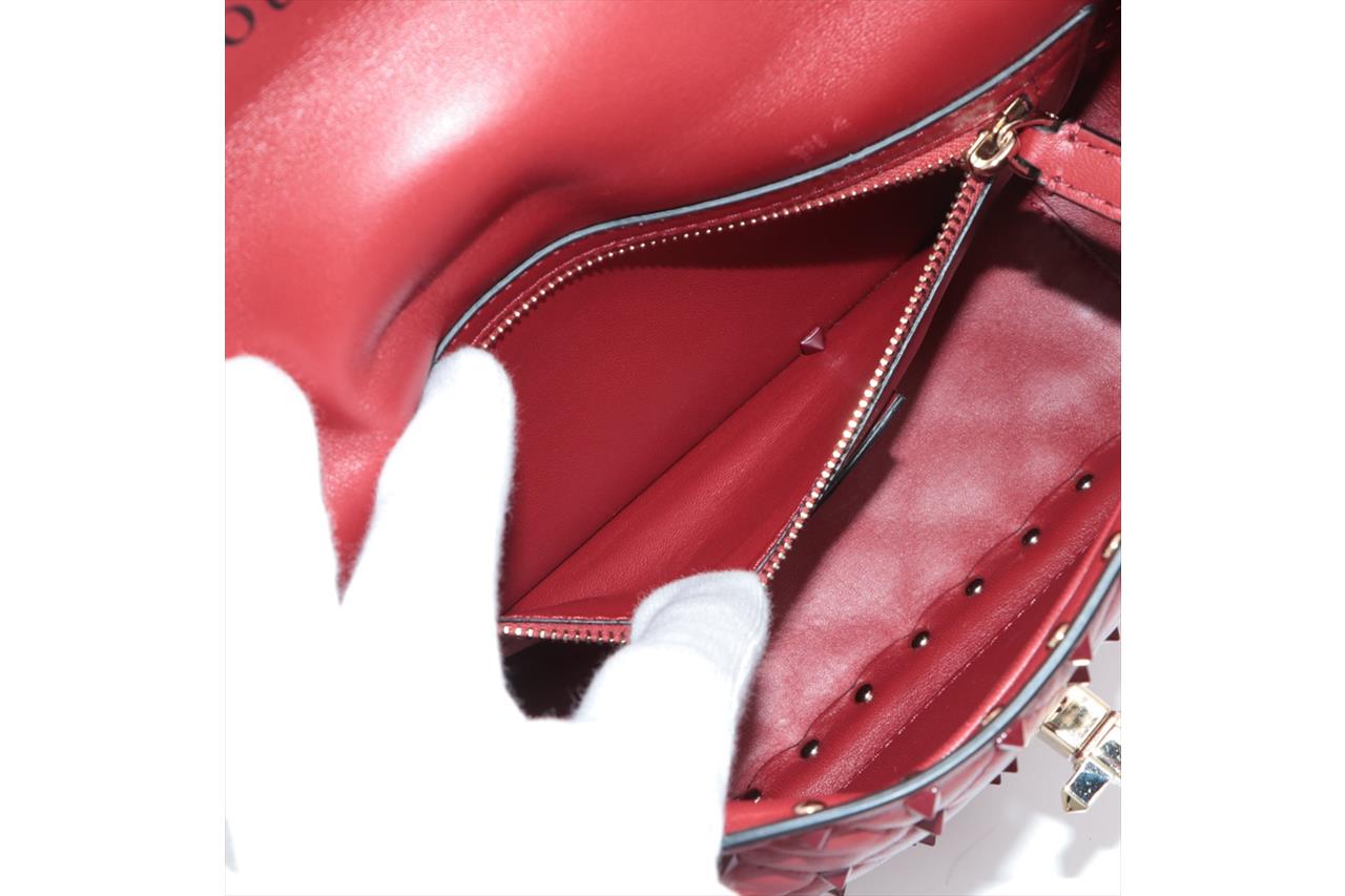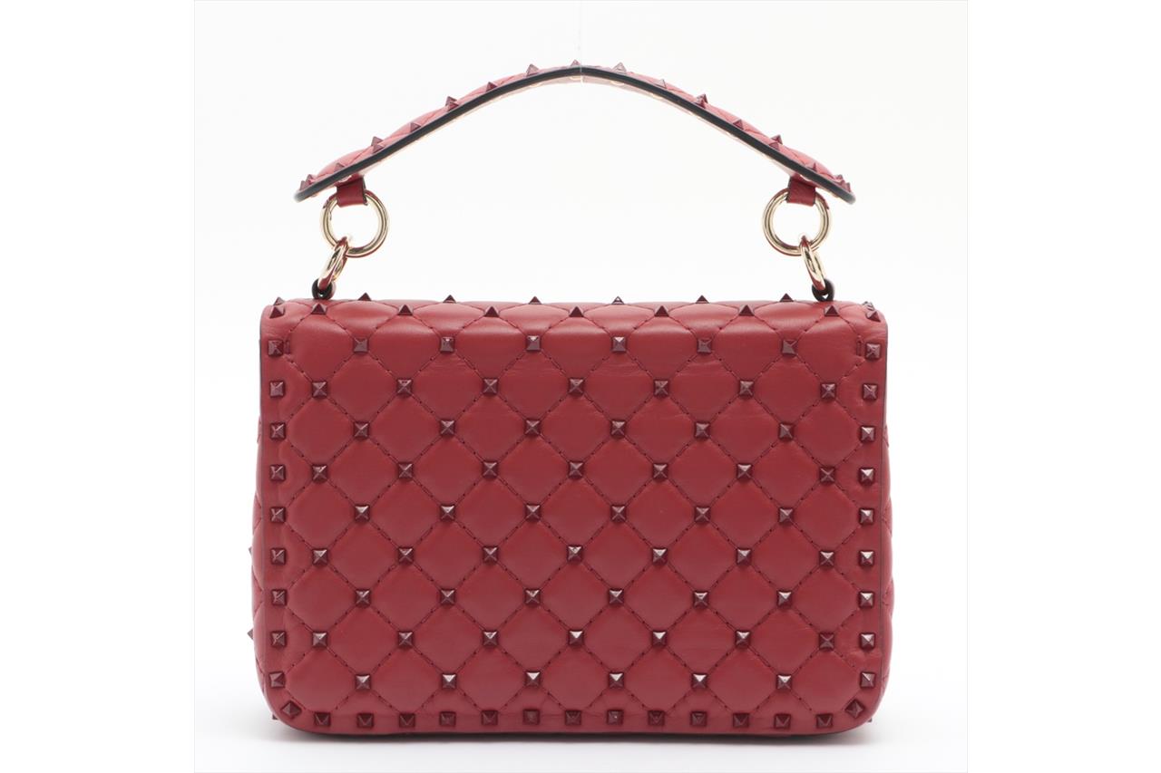 Valentino Garavani Rockstud Spike Bag in Red Nappa Leather. Approximate dimensions: 23cm (L) x 15.5cm (H) 6.5cm (D), 9.5cm handle height, and 55cm chain drop. With Entrupy Certificate of Authenticity. Accompanied by Valentino papers, detachable chain and dust bag. (Pre-owned)