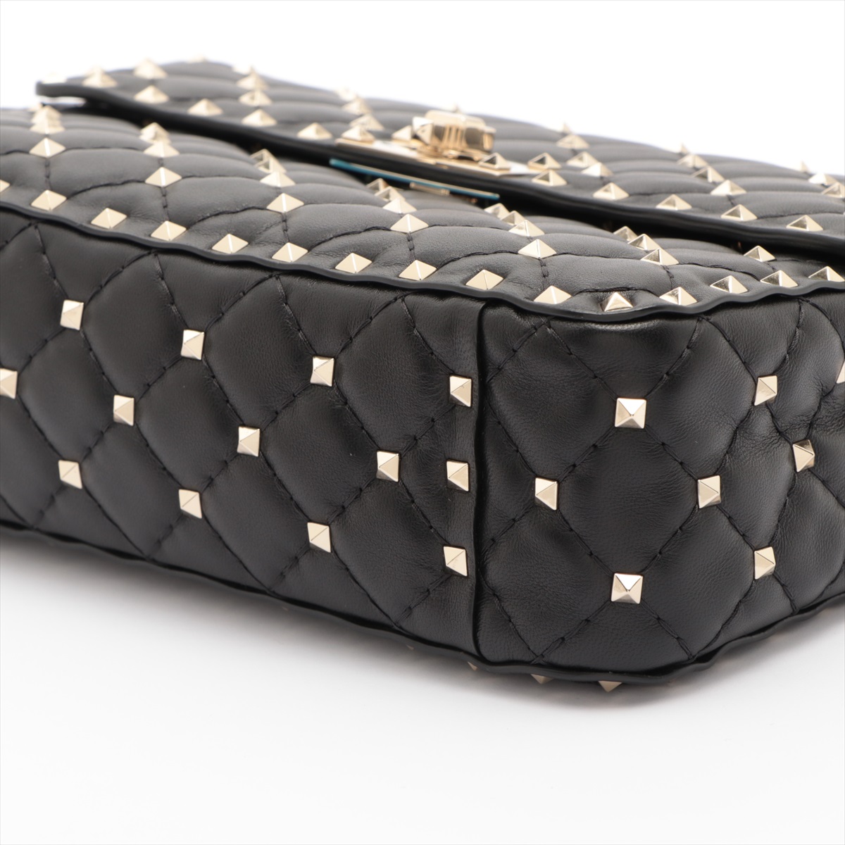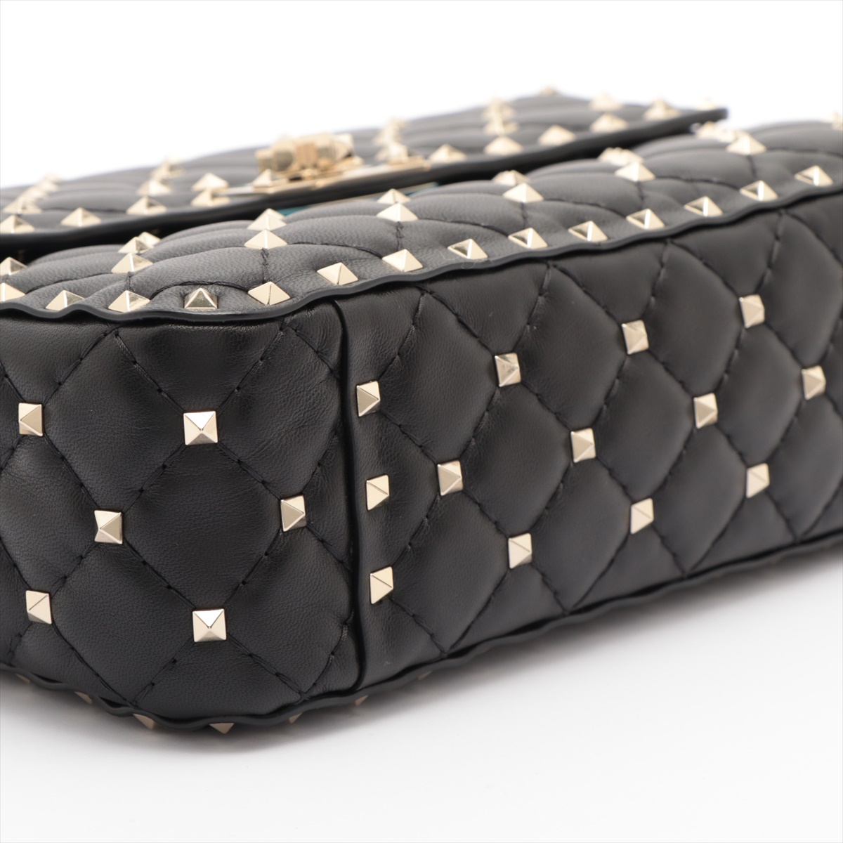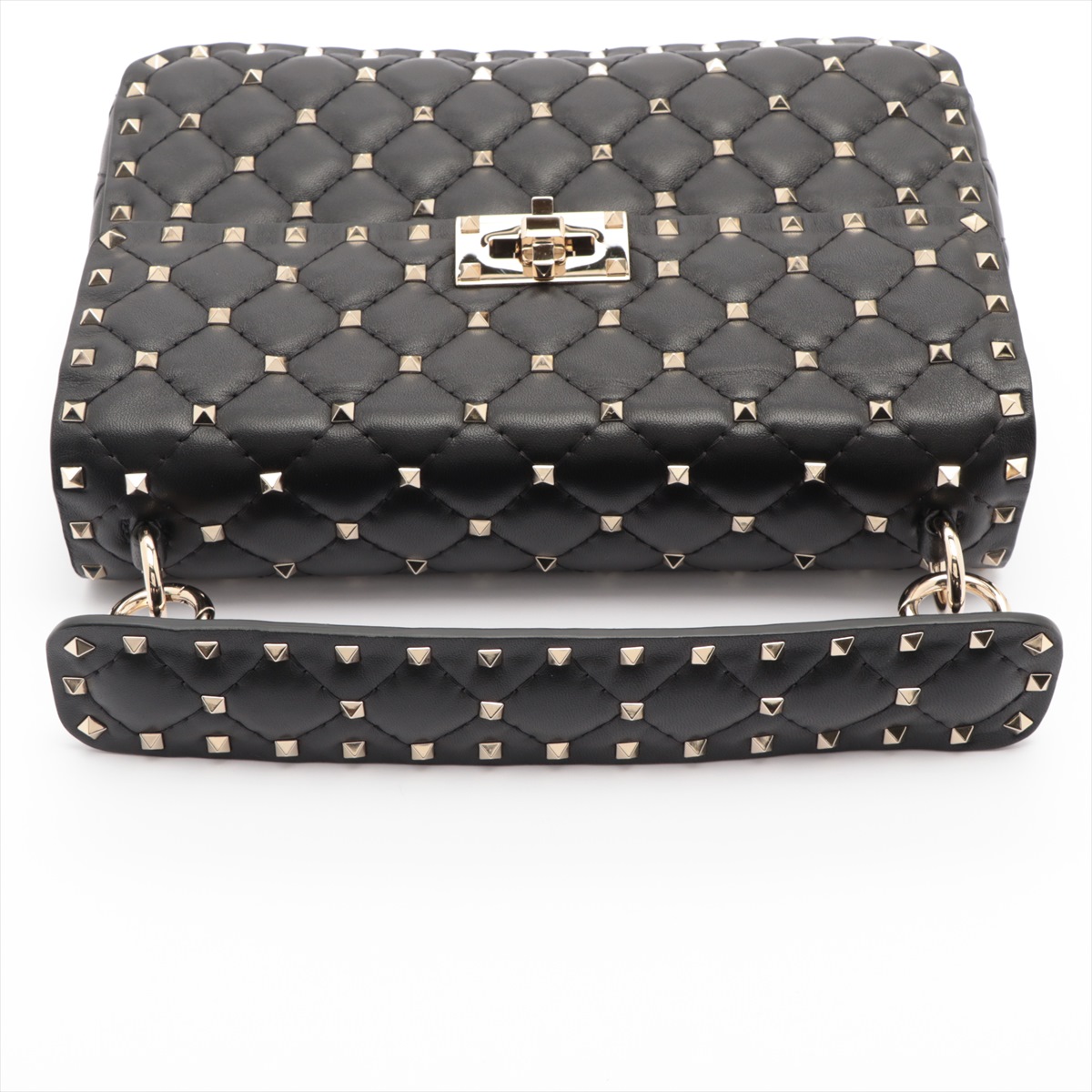 Valentino Garavani Rockstud Spike Medium Shoulder Bag. Black lambskin leather. Gold-tone Rockstud detailing and hardware. Flip-lock fastening. Approximate dimensions: 23.5cm (L) x 16cm (H) x 7cm (D). With Valentino dust bag, product tag, leather care pamphlet, spare studs and detachable chain. (Pre-owned)