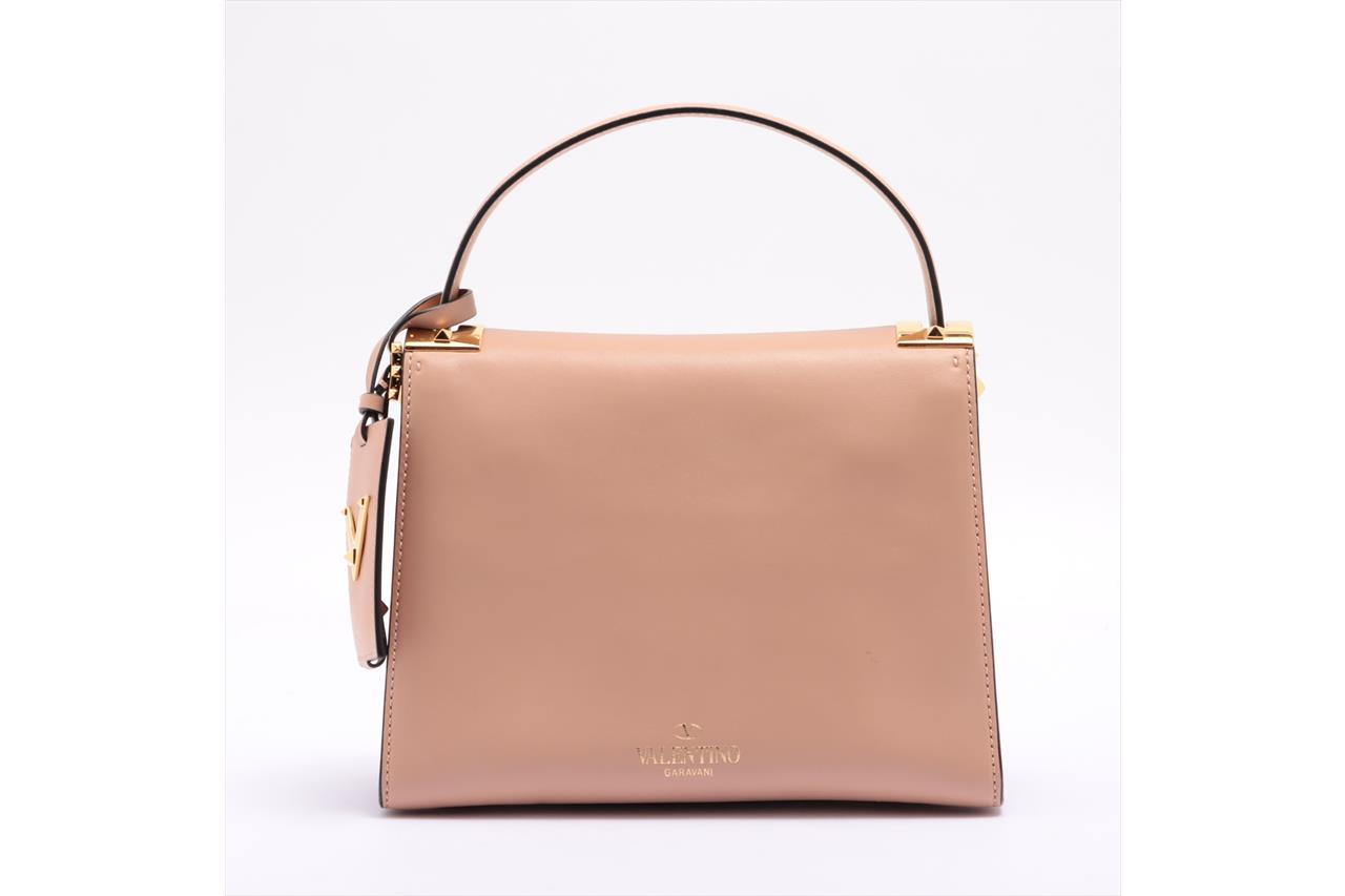 Valentino My Rockstud Top Handle Bag in Beige Leather. Gold-tone hardware. Suede interior. Approximate dimensions: 26cm (L) x 20cm (H) x 11cm (D) and 12cm handle height. Accompanied by Valentino dust bag, shoulder strap, luggage tag and papers. With Entrupy Certificate of Authenticity. (Pre-owned)