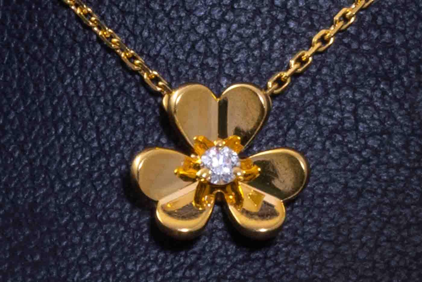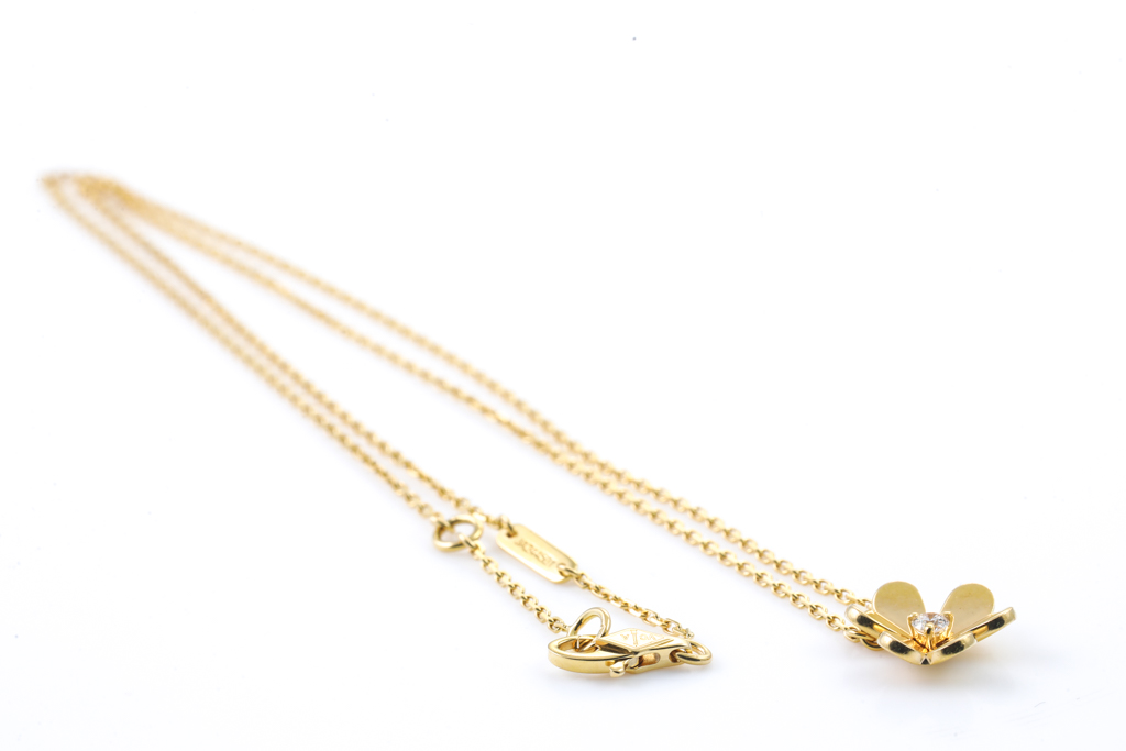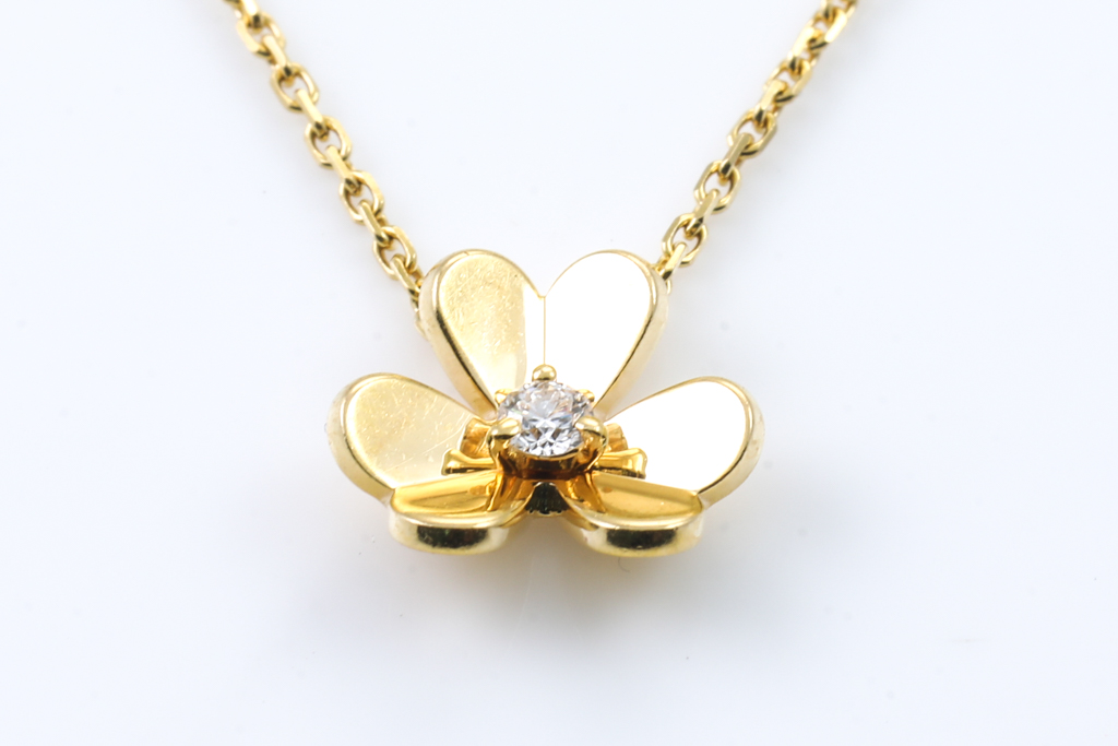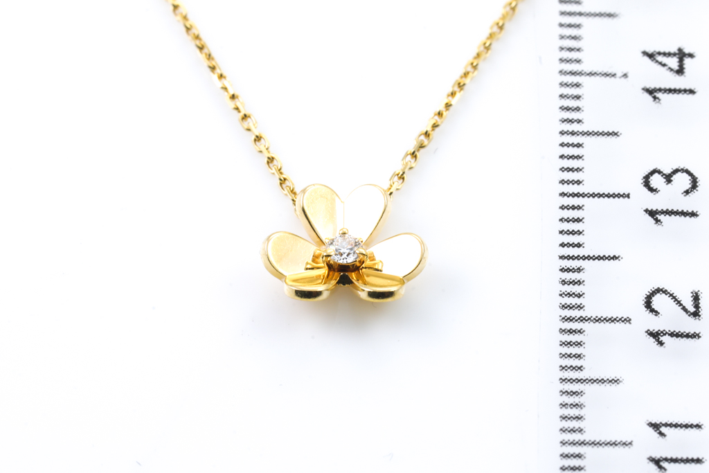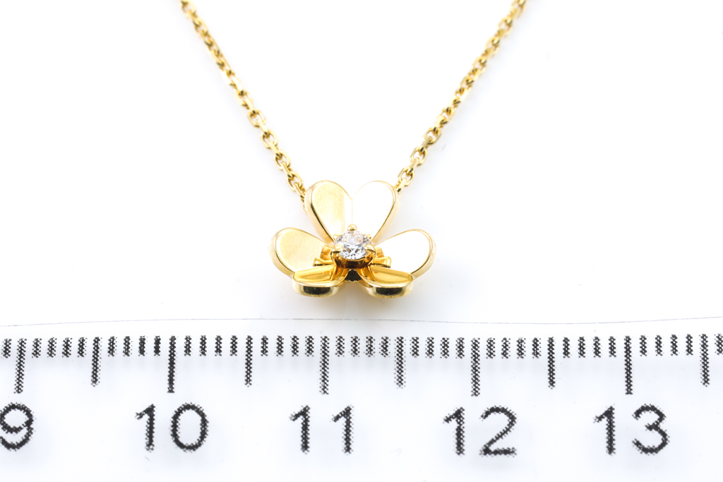 Van Cleef & Arpels Frivole Diamond mini pendant with round Diamond of 0.05ct. 18ct yellow gold with adjustable maximum length of 40cm chain. Weight: 3.2g. (Pre-owned)