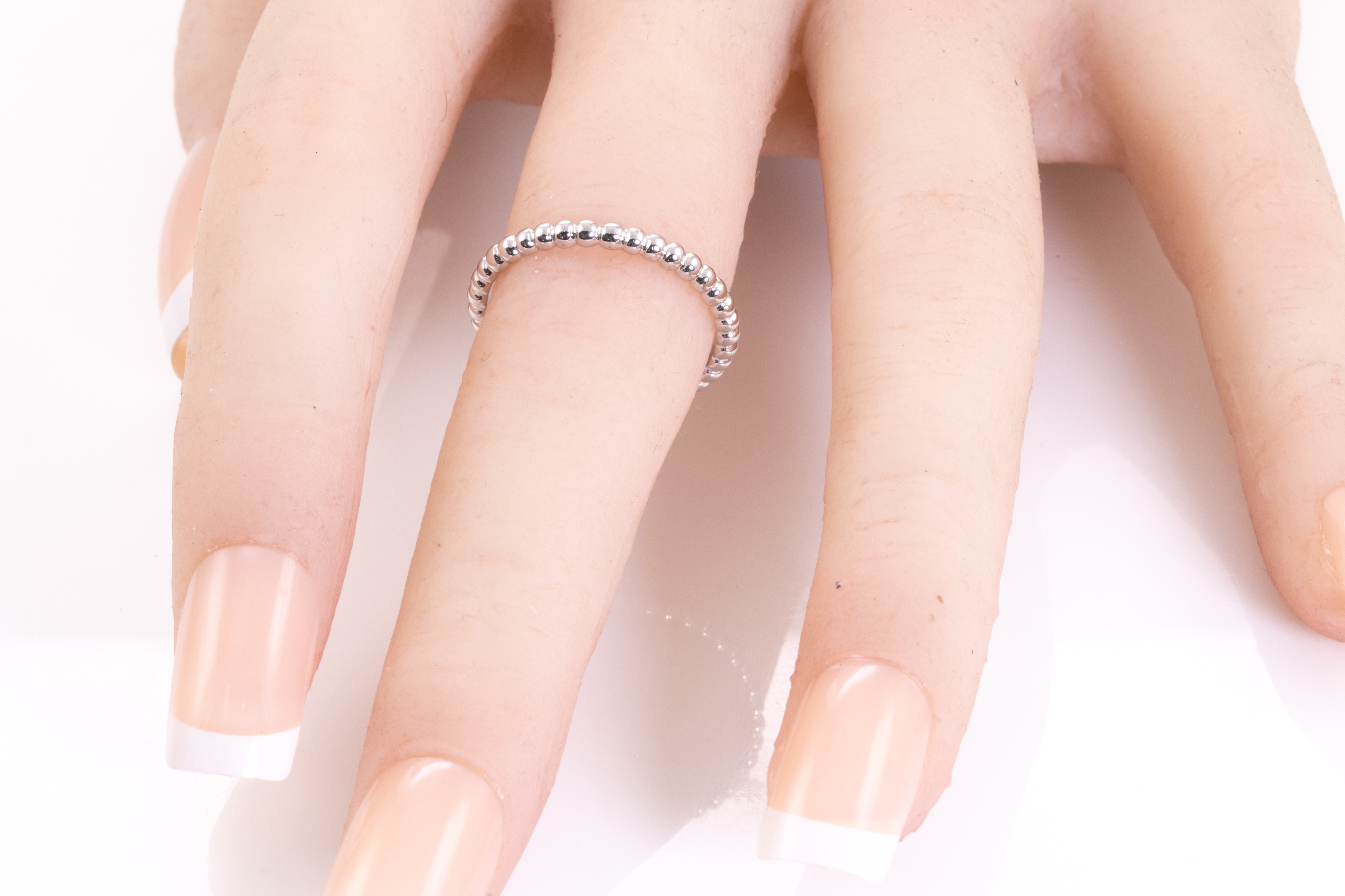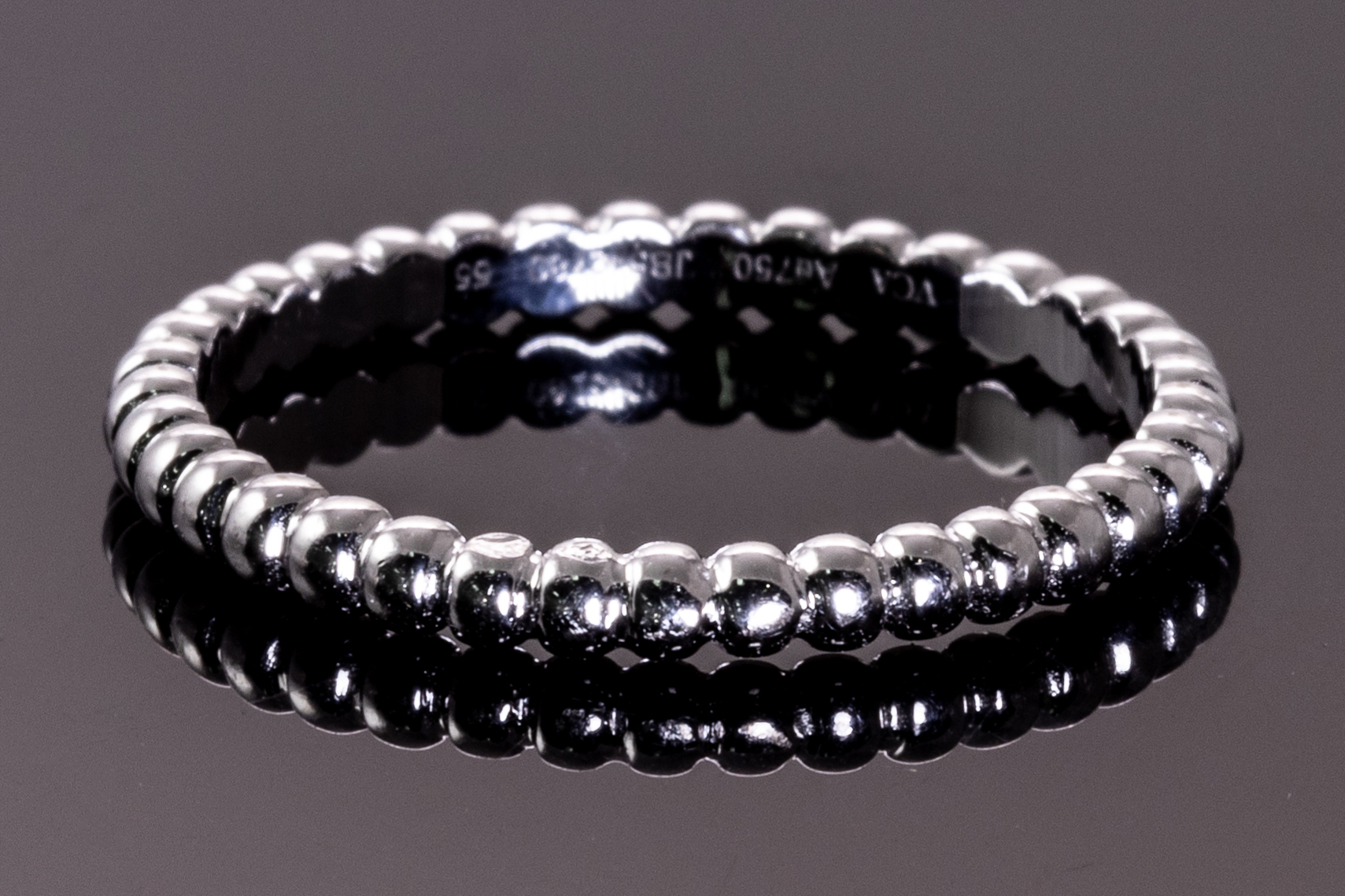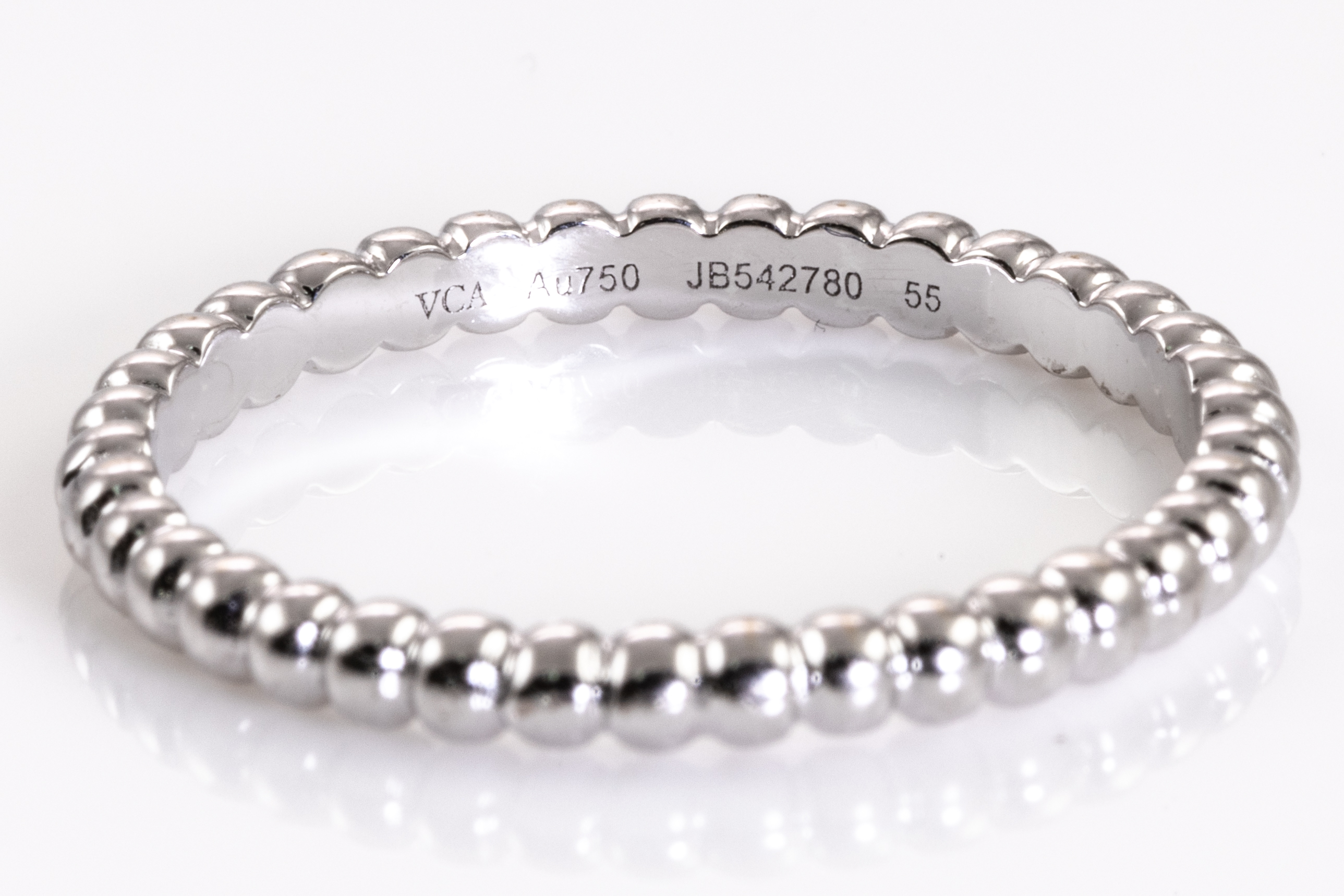 Van Cleef & Arpels Perlee Pearls ring. 18ct white gold. Van Cleef stamped size 55, actual ring size N1/2 - ring resizing is not recommended. Weight: 2.5g. With Van Cleef & Arpels box. (Pre-owned)