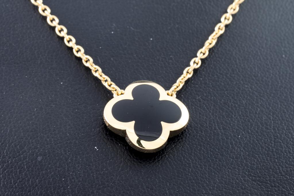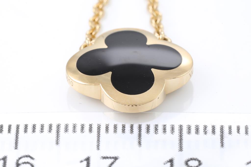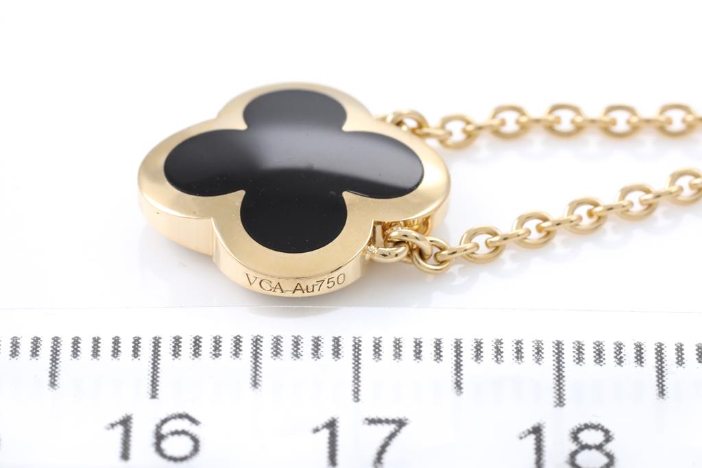 Van Cleef & Arpels Pure Alhambra Onyx pendant. 18ct yellow gold with 18ct yellow gold 42cm chain. Weight: 8.6g. With Van Cleef & Arpels box and Van Cleef & Arpels authenticity certificate dated 14/01/20. (Pre-owned)