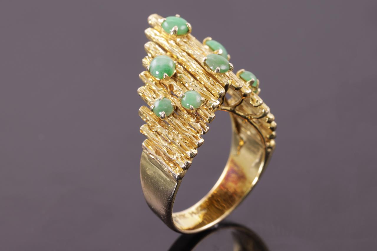 Vintage 14ct yellow gold Ring with eight round cabochon cut Amazonite. Ring size N. Weight 9.1g. (Pre-owned)