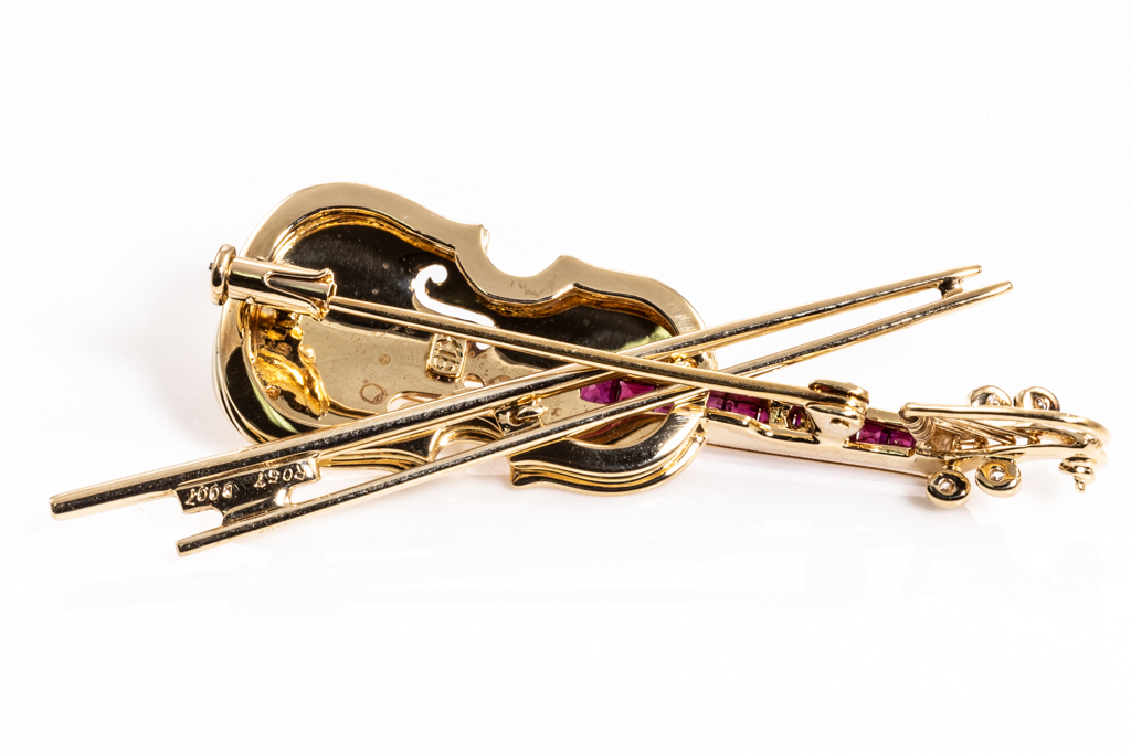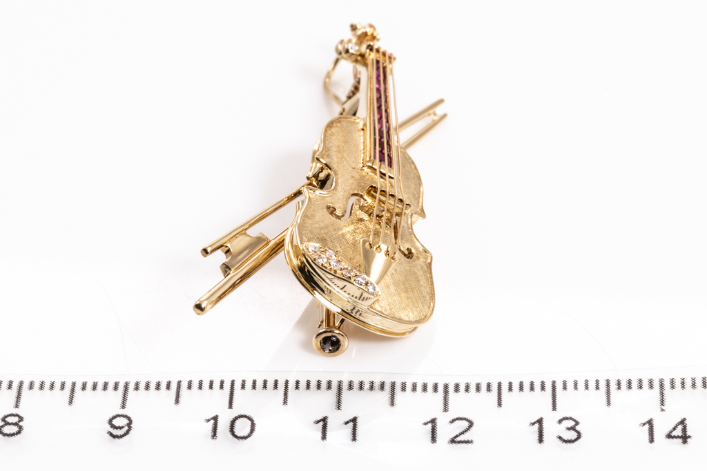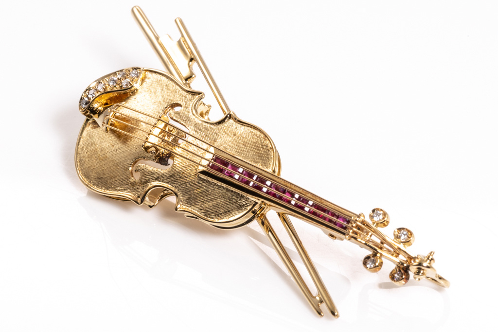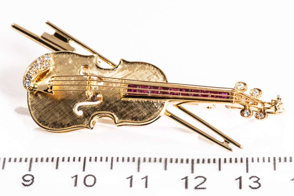 Violin Design Ruby and Diamond Brooch