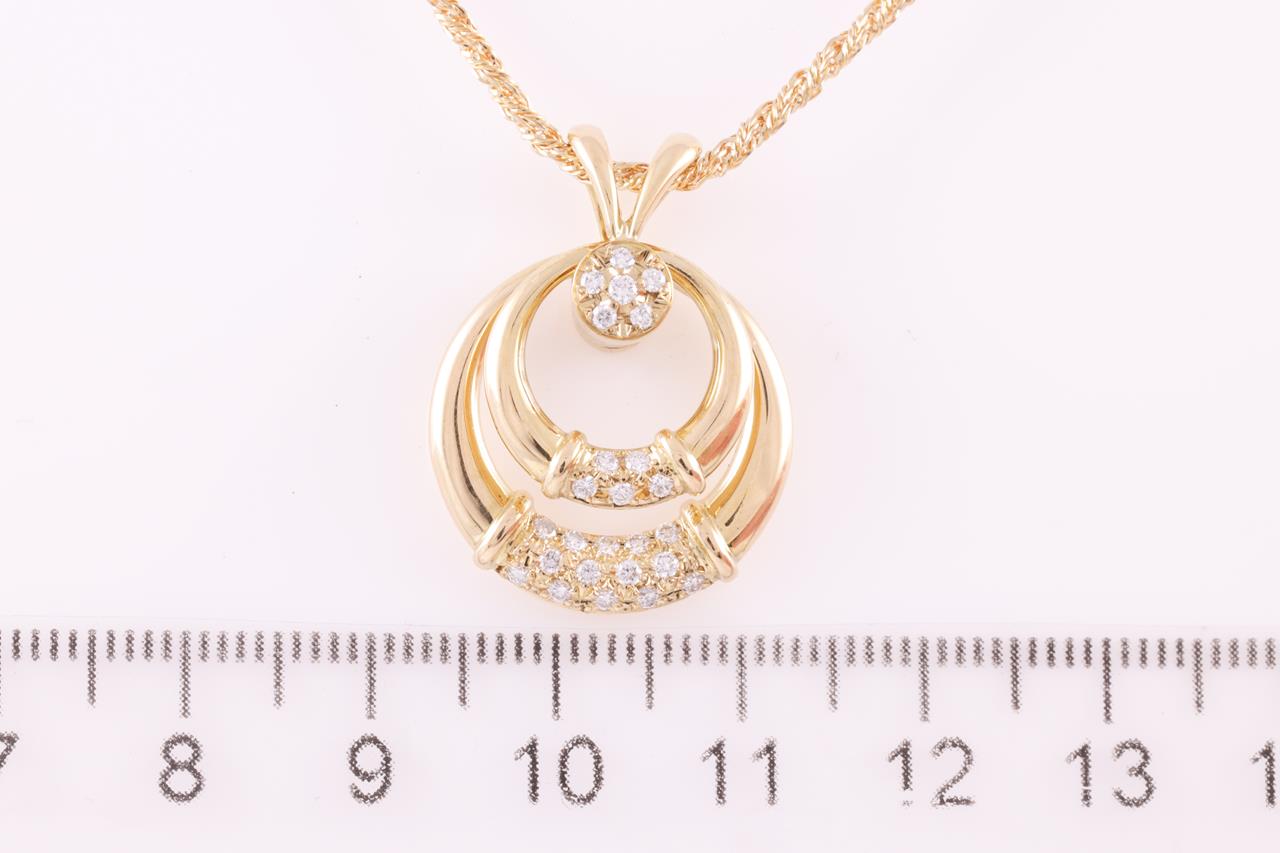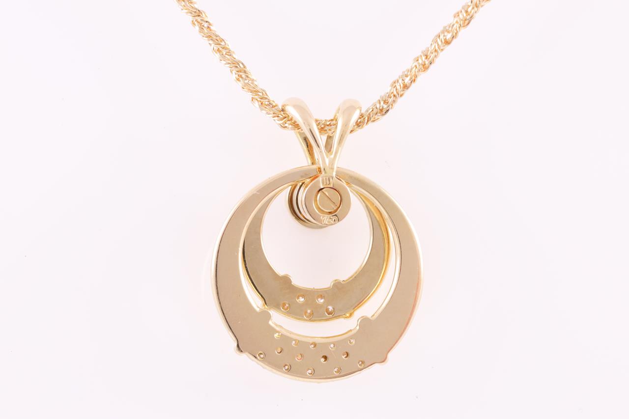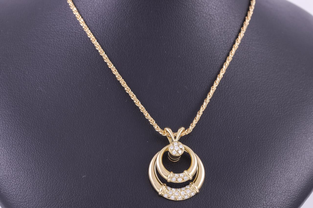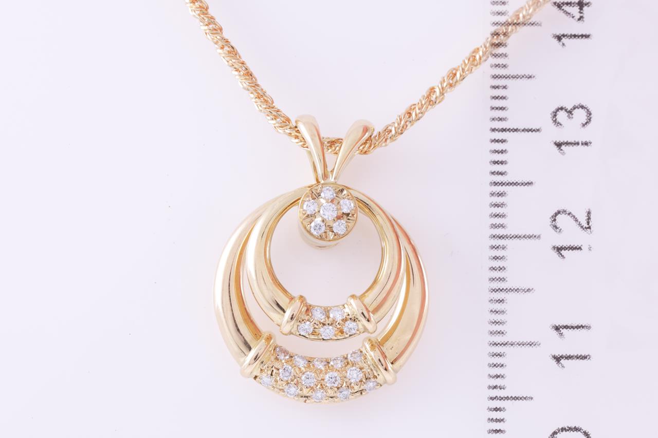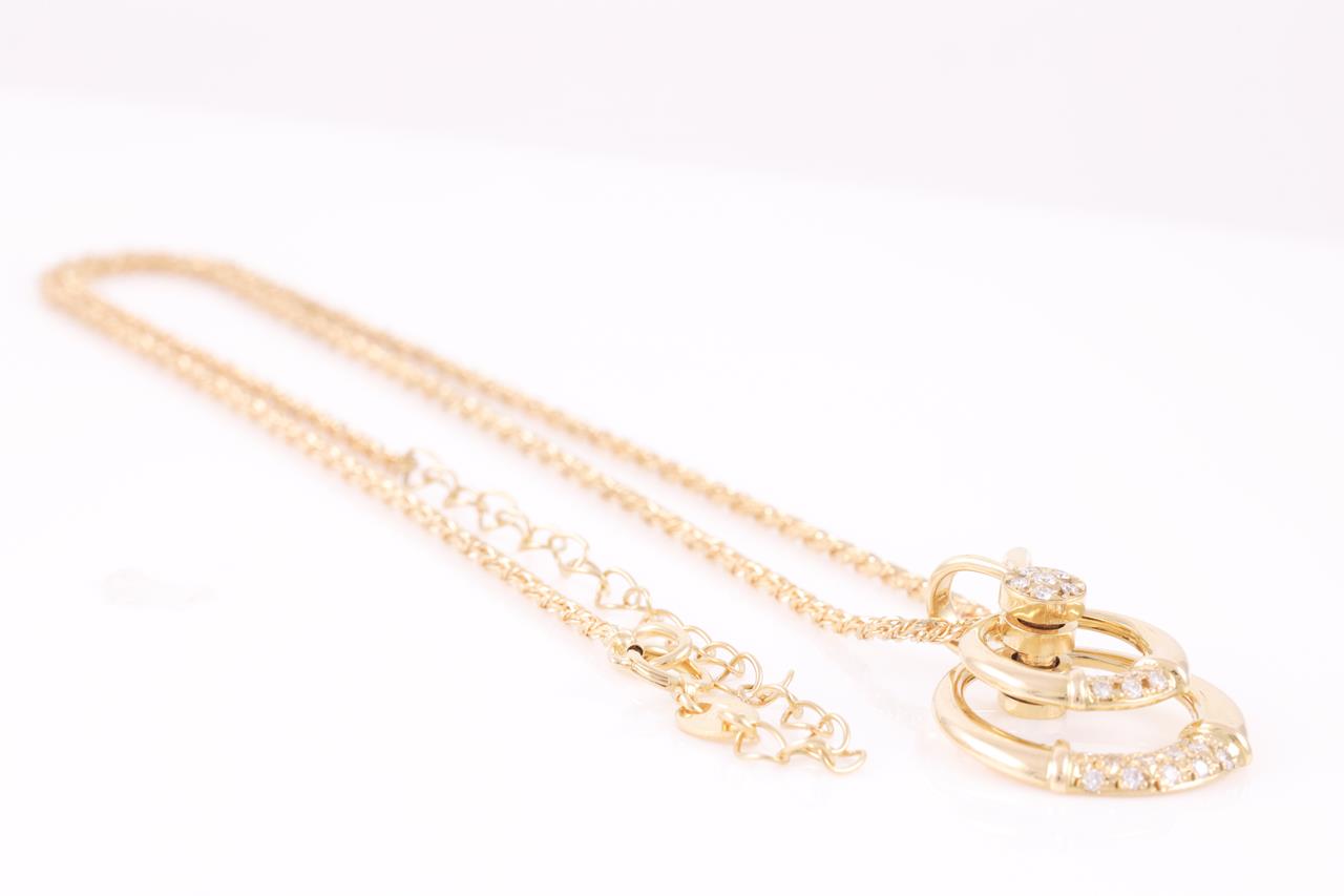 Waltham spinning pendant with round Diamonds totalling approximately 0.37cts (Estimated grading: F VS). 18ct yellow gold with 47cm adjustable chain. Weight: 12g. (Pre-owned)